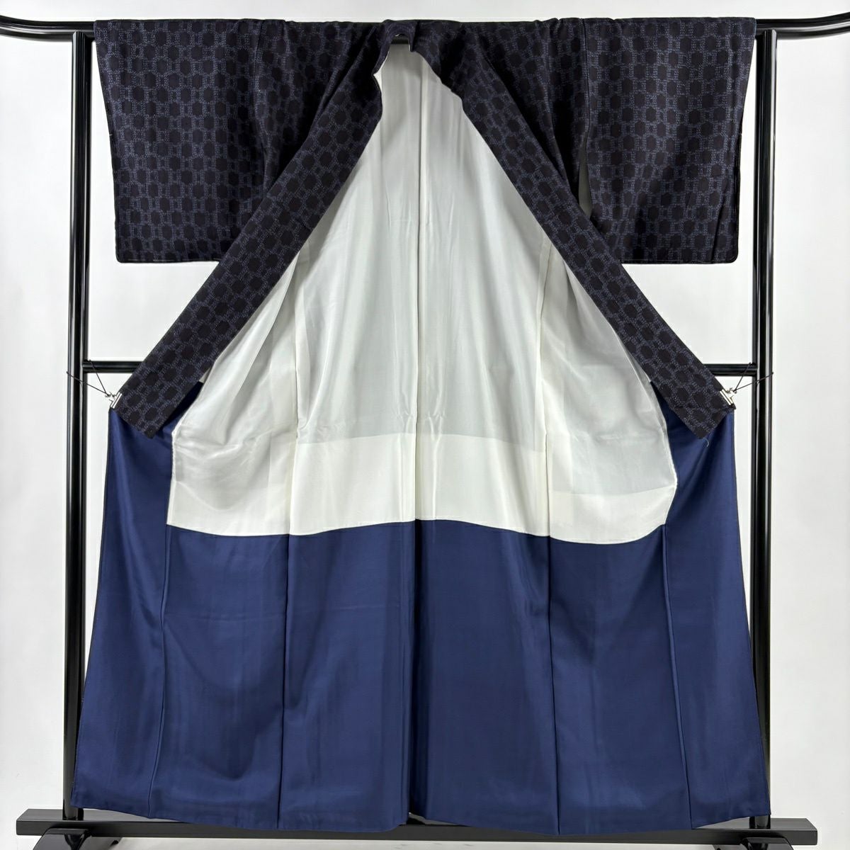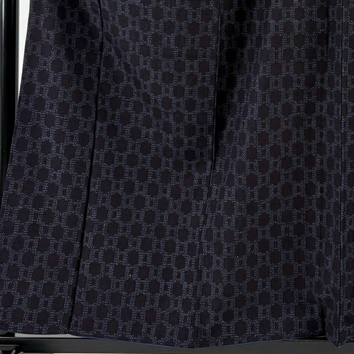 【美品】 紬 身丈159cm 裄丈62cm S 袷 亀甲絣 濃紺 正絹 秀品