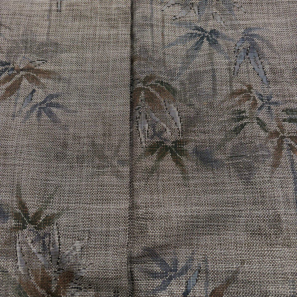 【美品】 紬 身丈159cm 裄丈62cm S 袷 草花 焦茶色 正絹 秀品