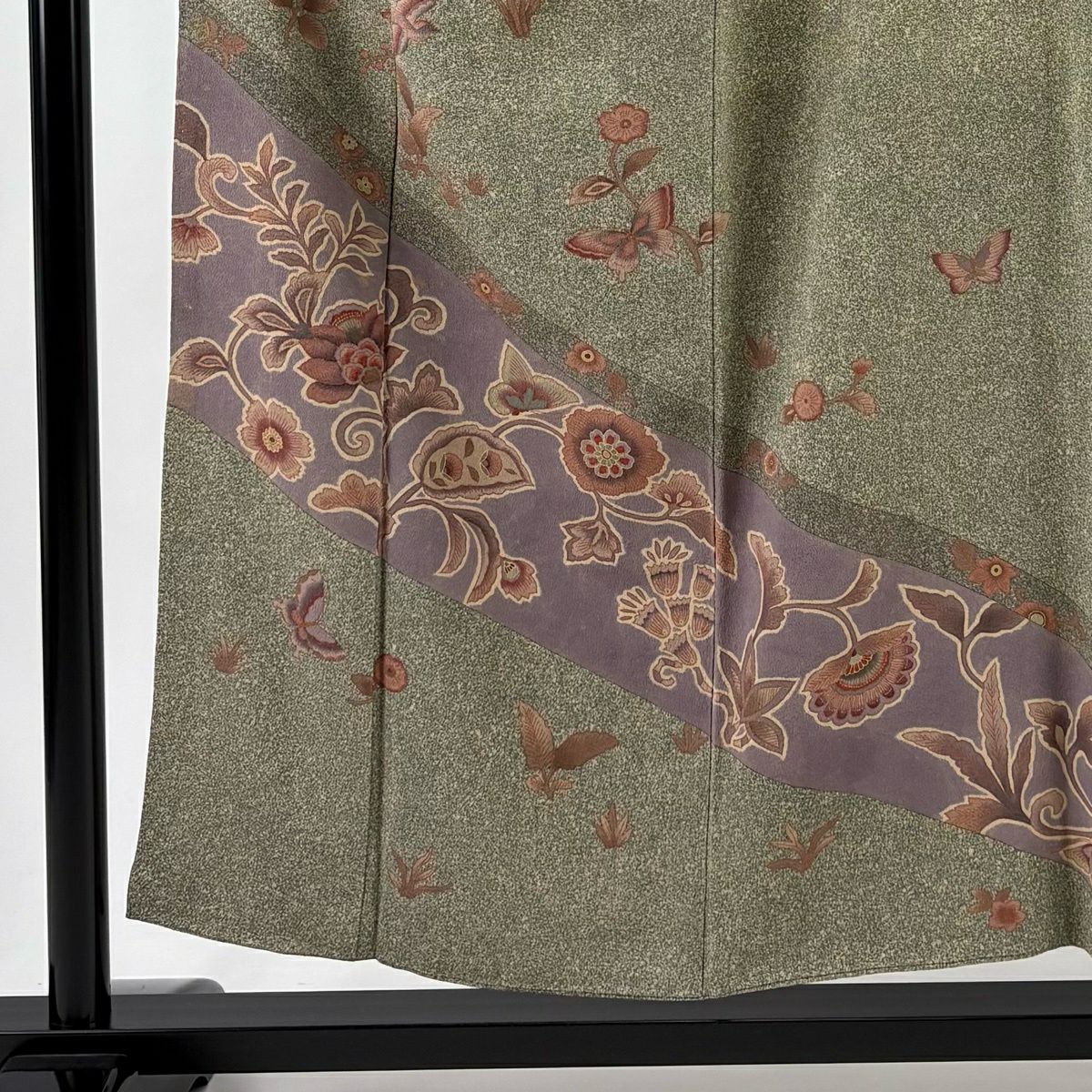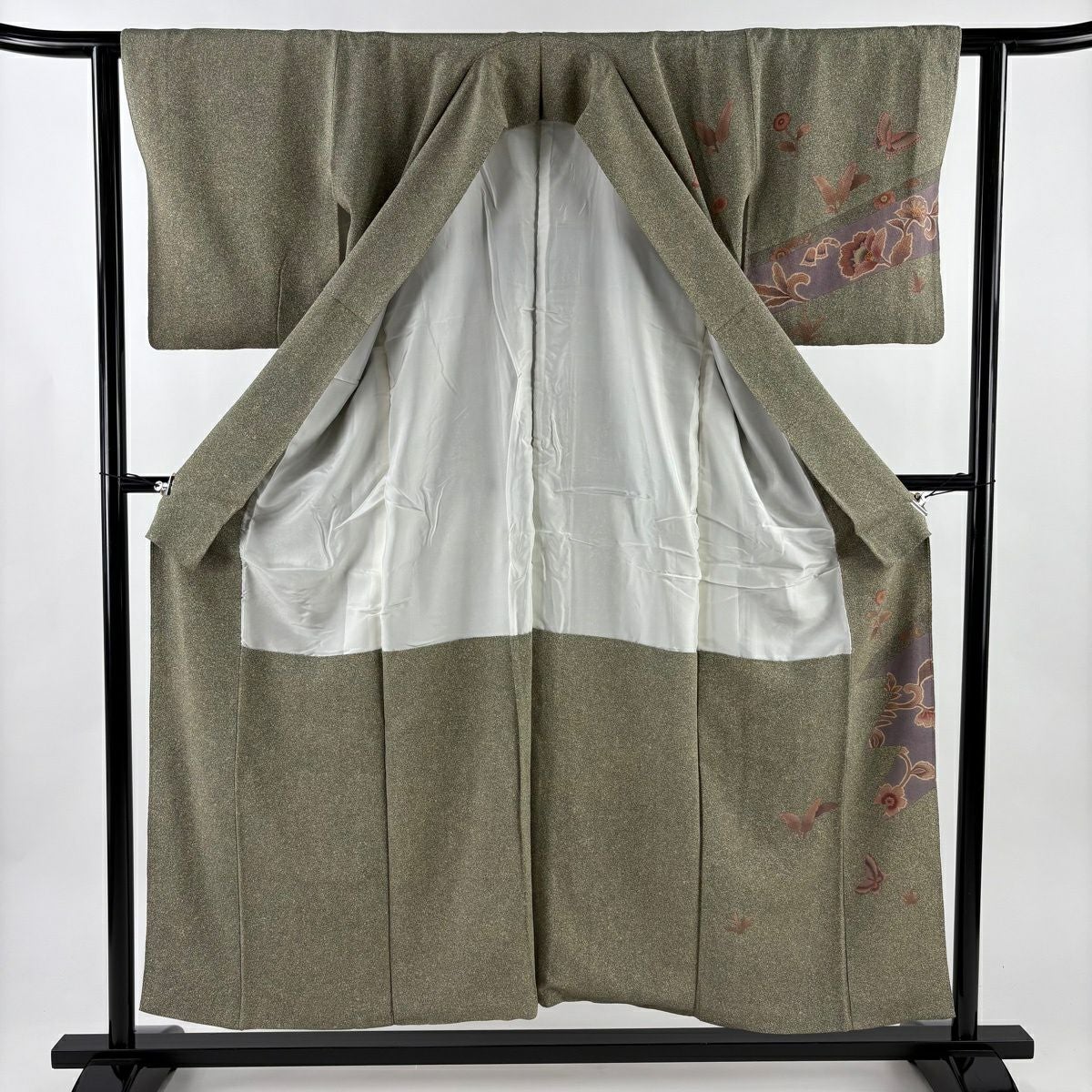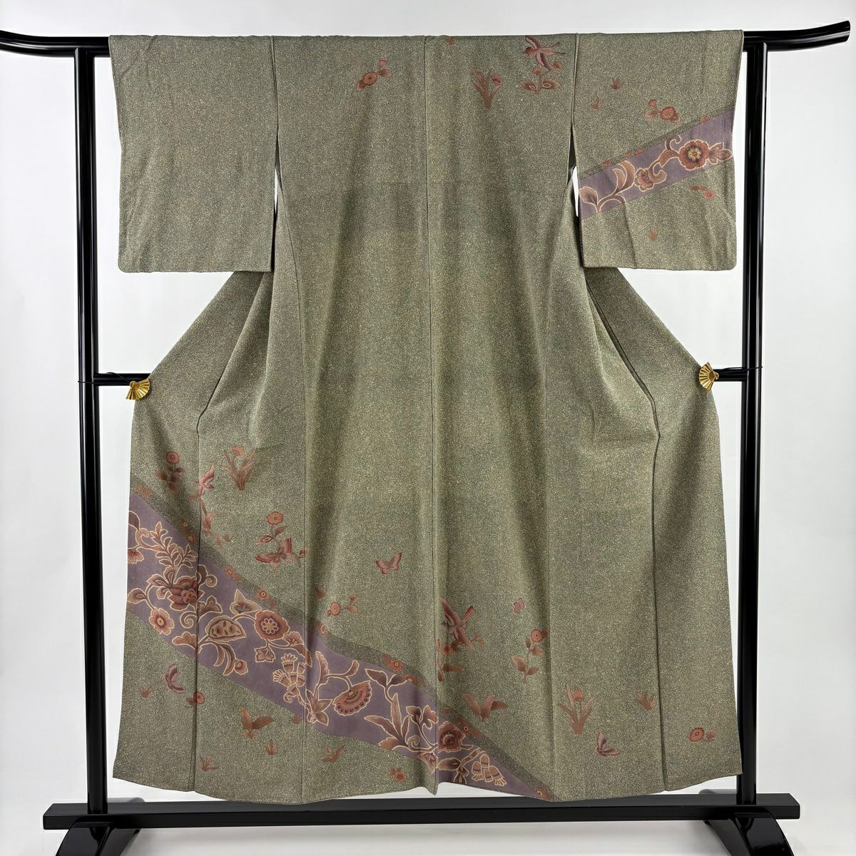 訪問着 身丈156cm 裄丈65cm M 袷 枝花 金彩 茶緑色 正絹 秀品
