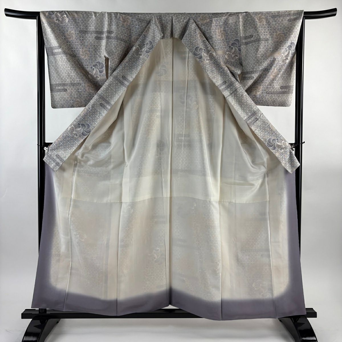 小紋 身丈155cm 裄丈66.5cm M 袷 紬地 幾何学 灰紫 正絹 秀品