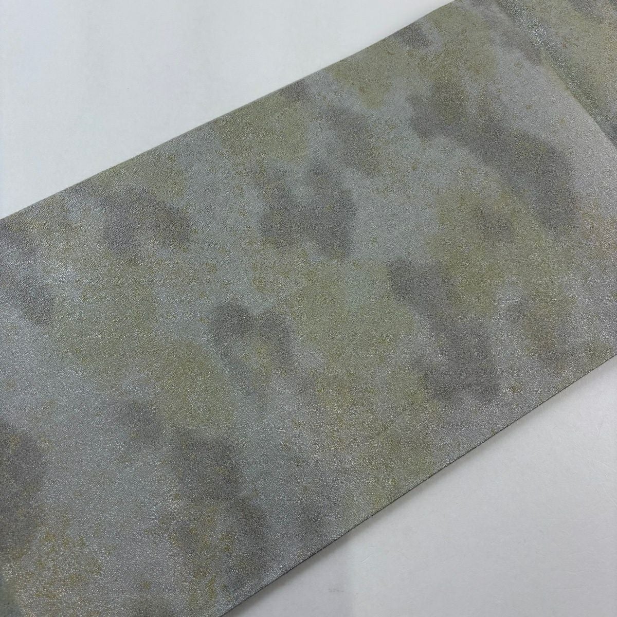 【美品】 袋帯 秀品 関西仕立て 松 霞 螺鈿箔 箔 灰緑 お太鼓柄 正絹