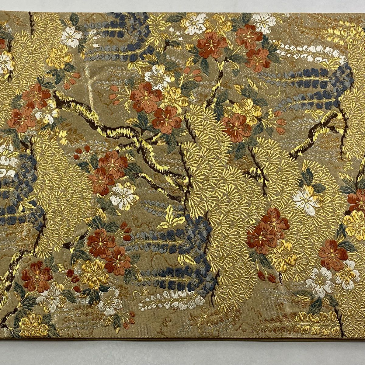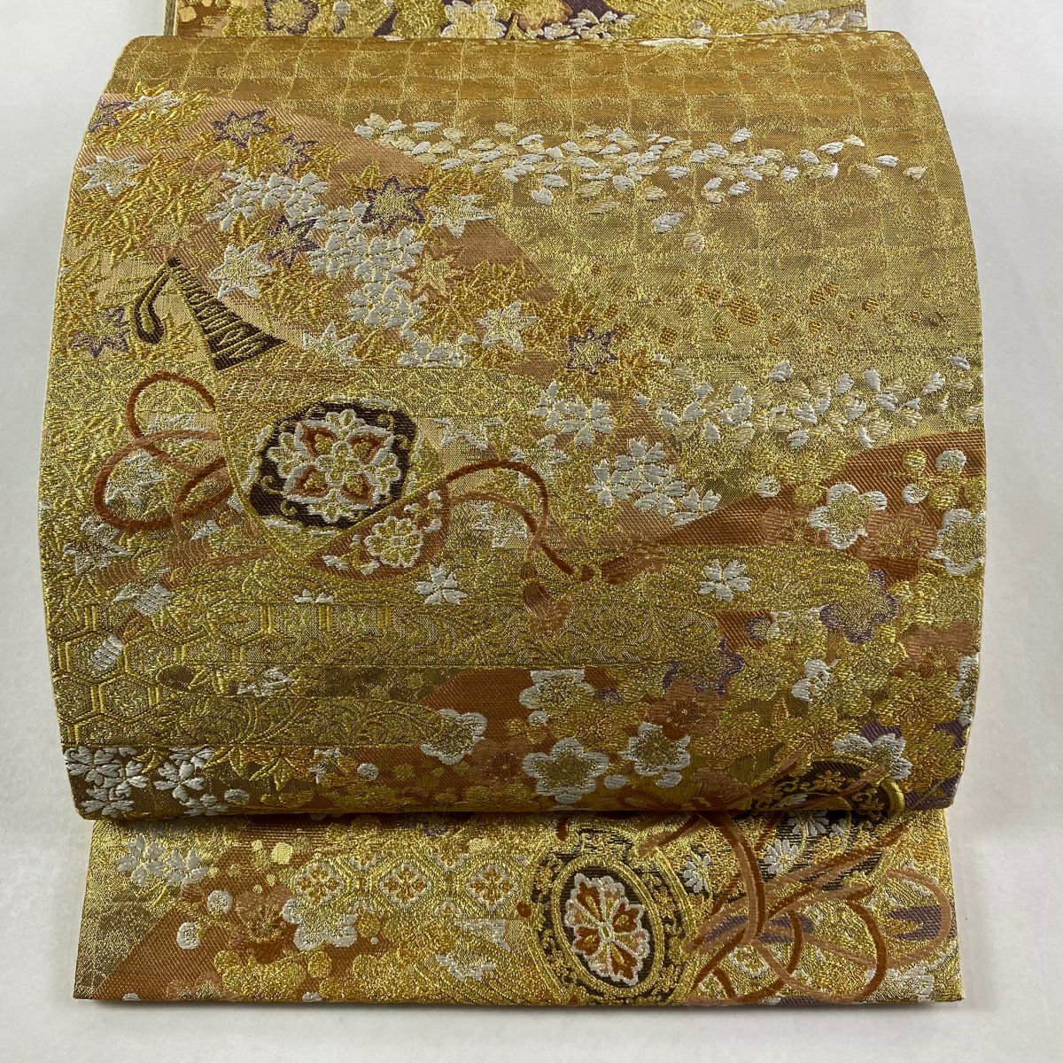 【在庫一掃】 袋帯 秀品 落款あり 松藤彩苑 桜 金糸 箔 金色 六通 正絹