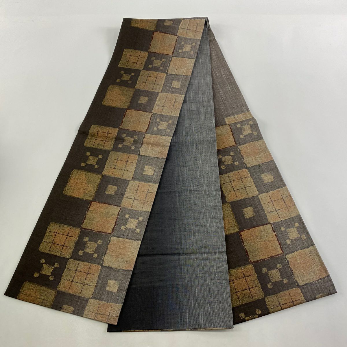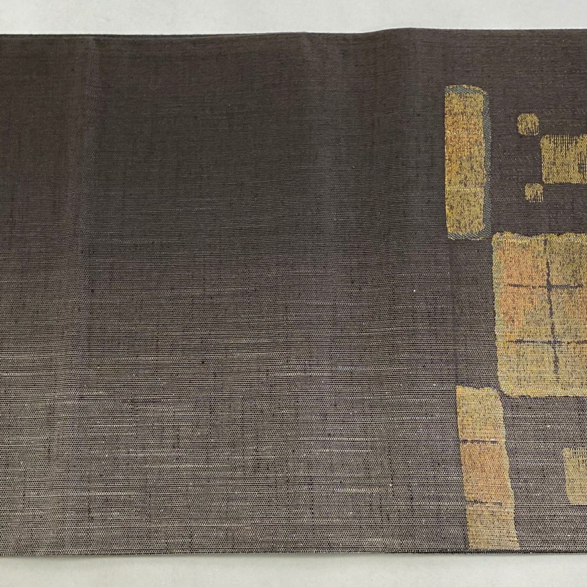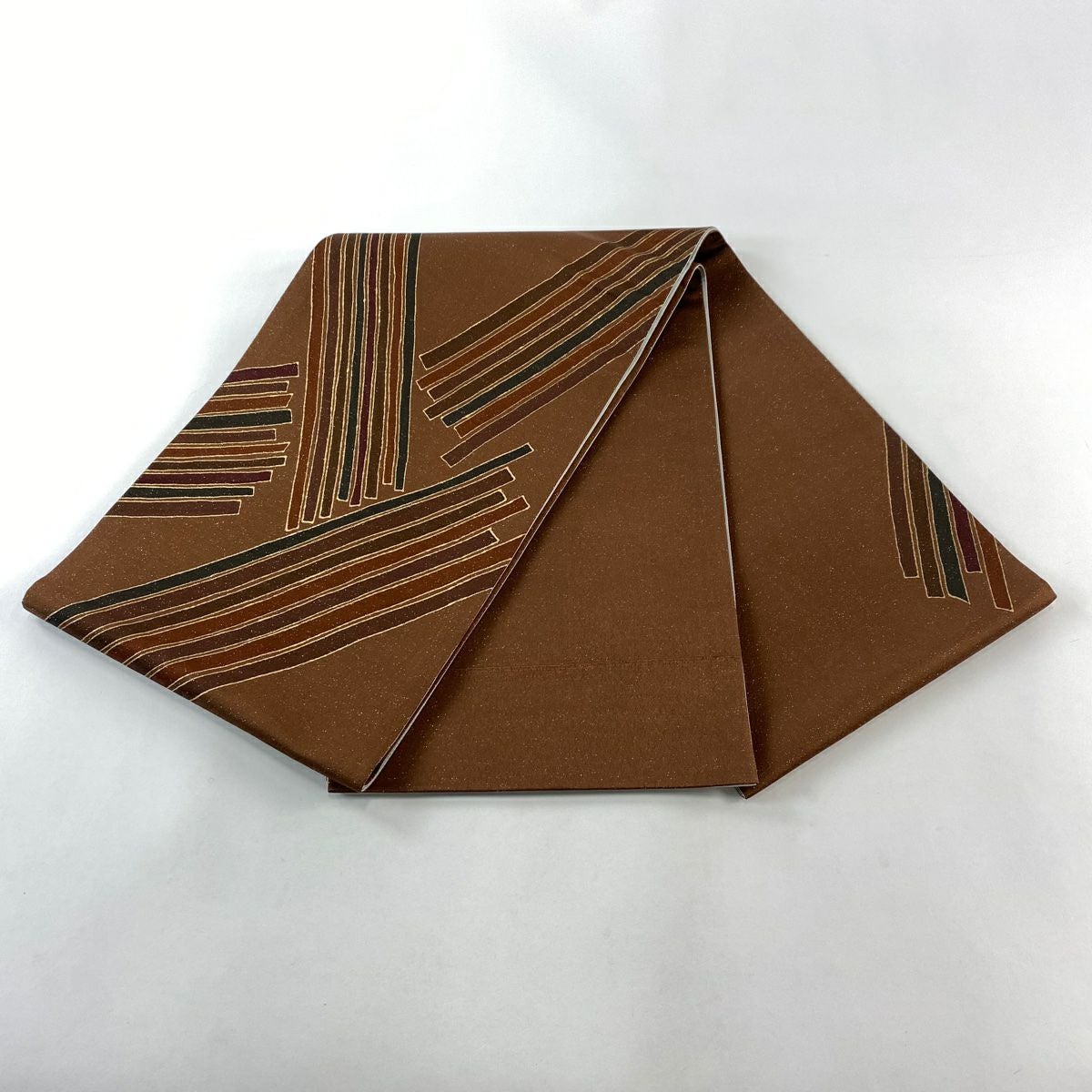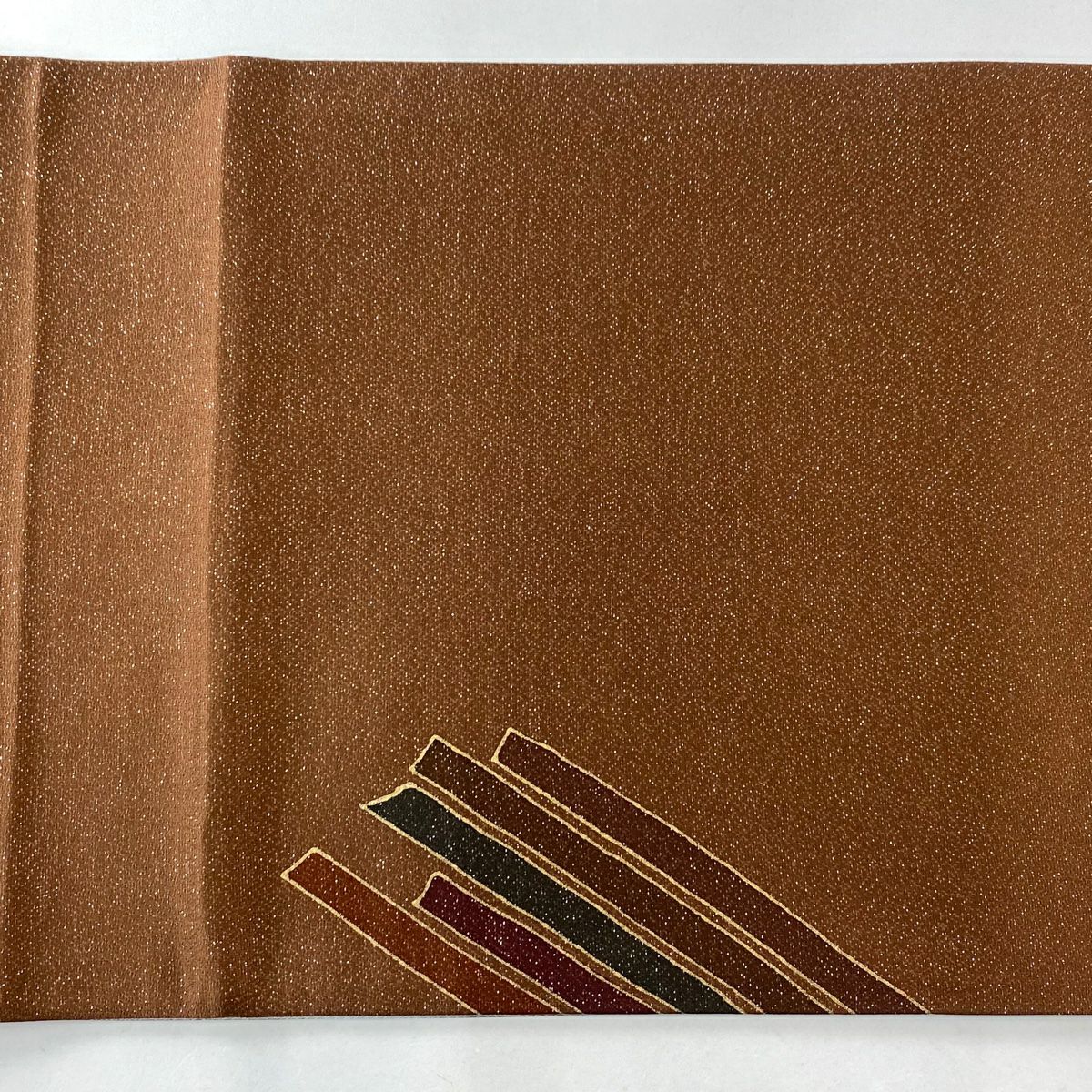 【在庫一掃】 袋帯 秀品 落款あり 幾何学 金彩 箔 茶色 お太鼓柄 正絹