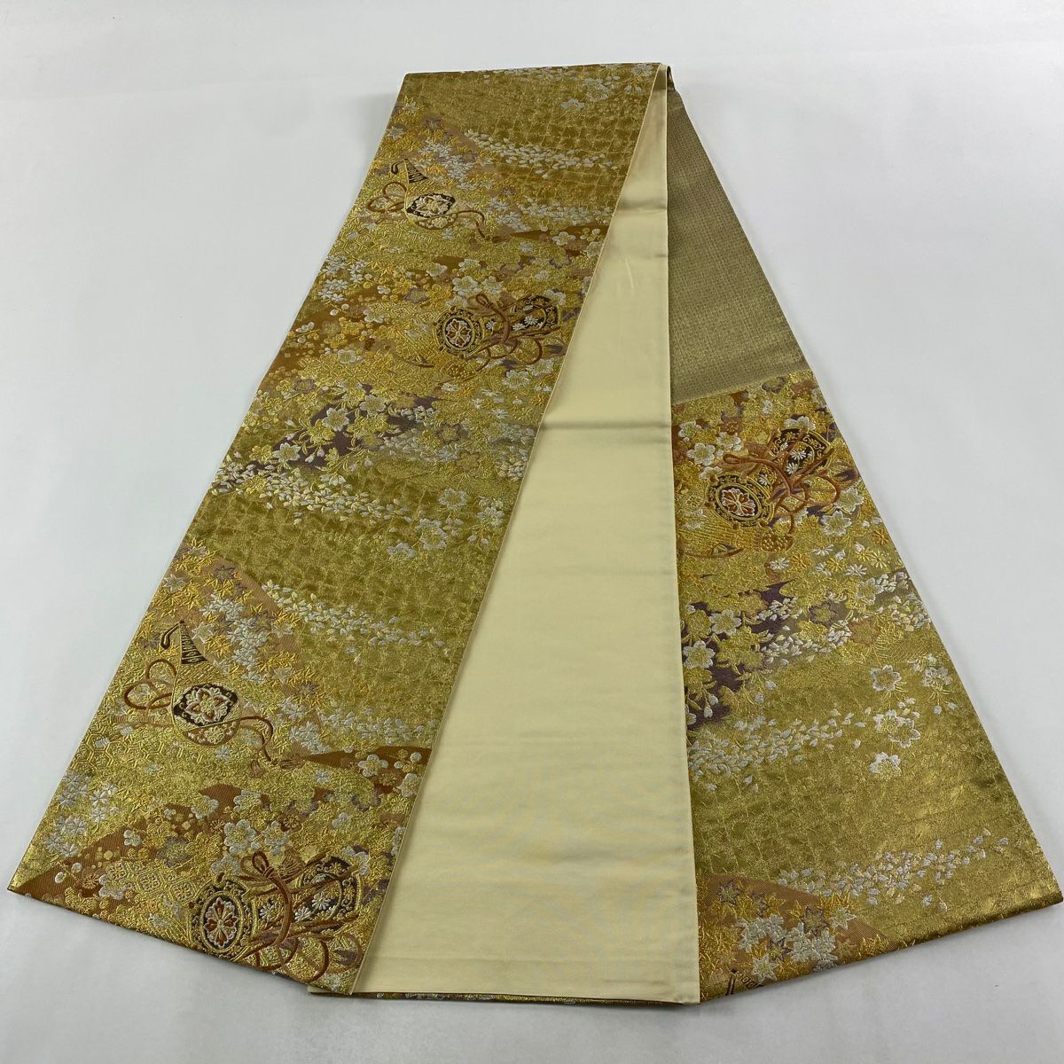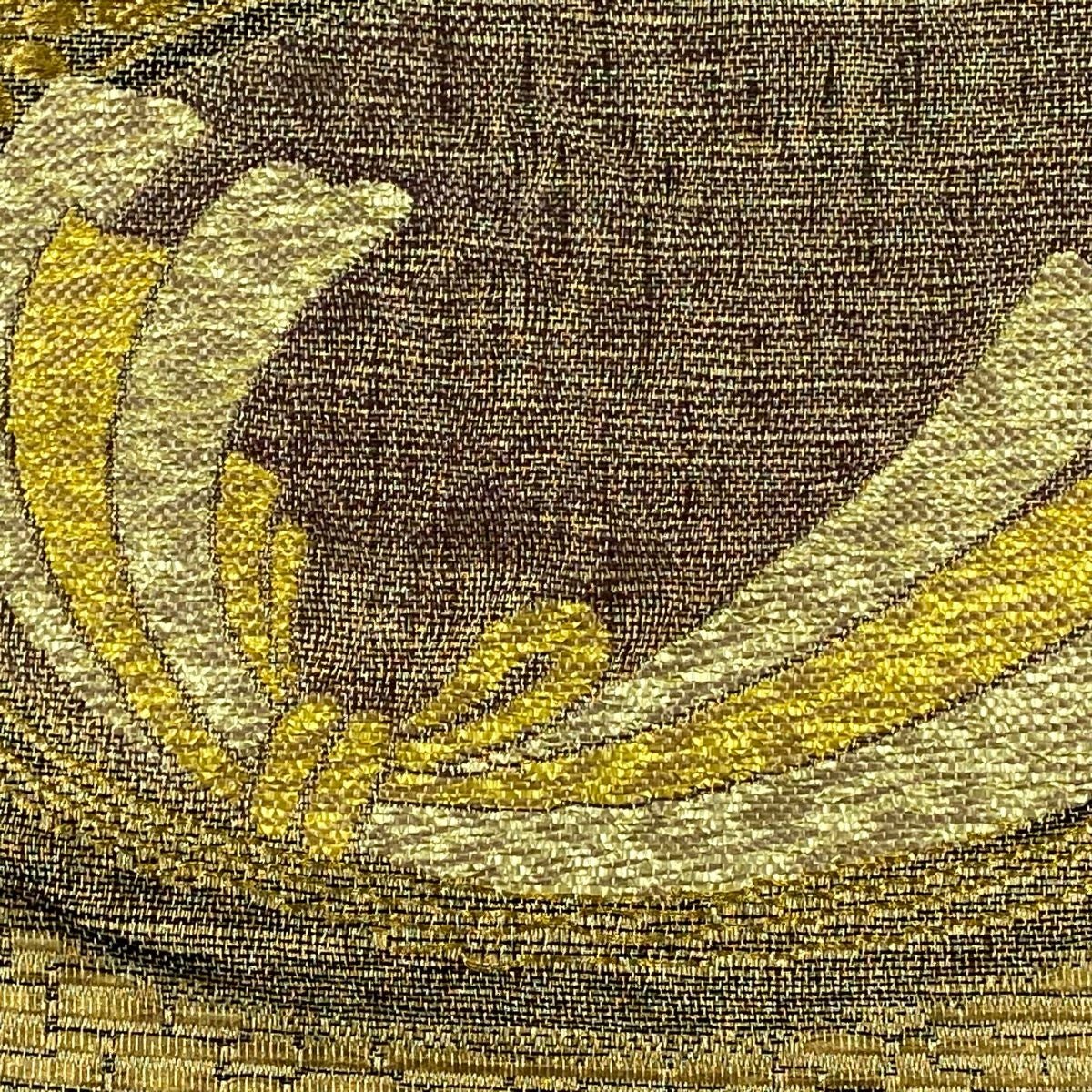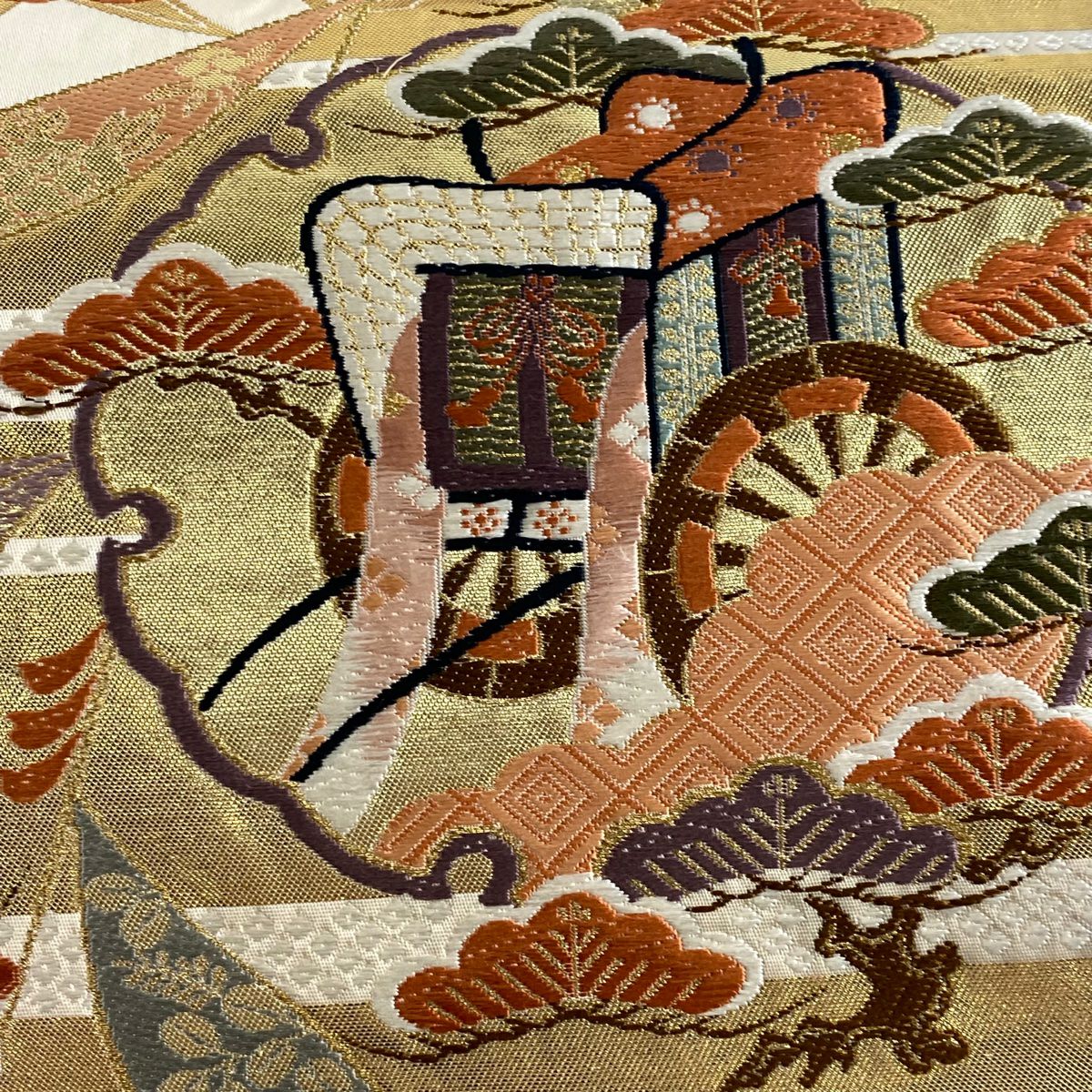 【在庫一掃】 袋帯 秀品 やまと 鎌倉文 糸巻き 金糸 箔 金色 六通 正絹
