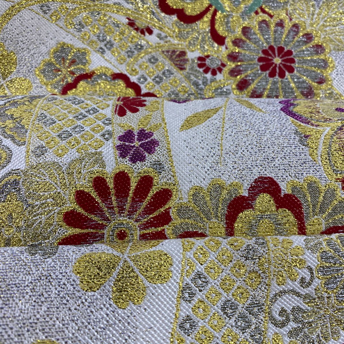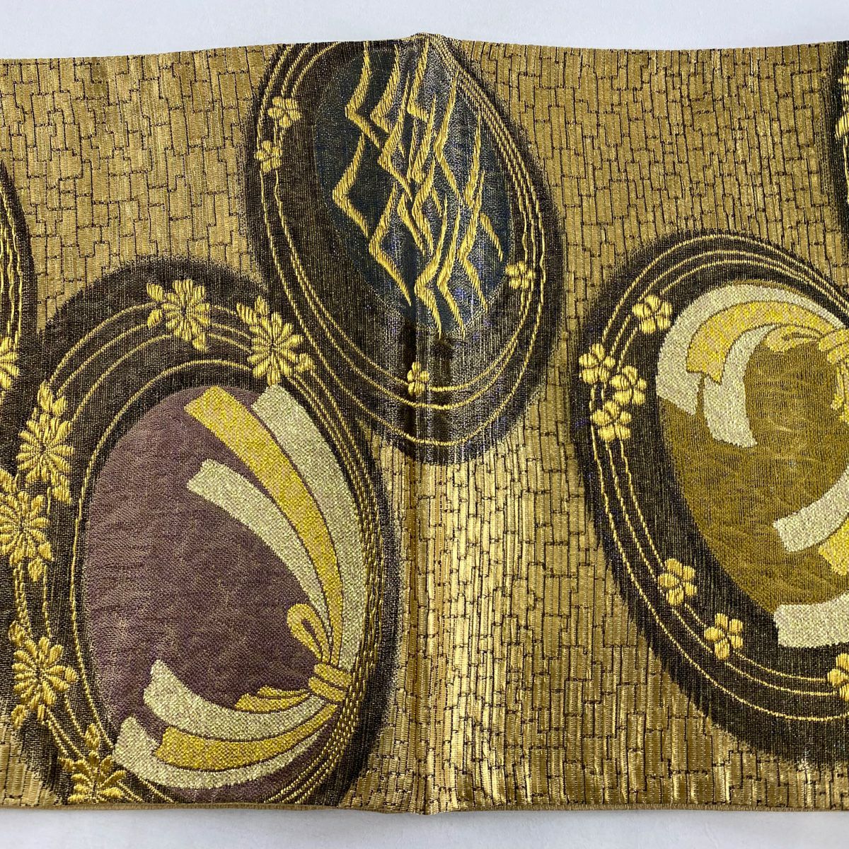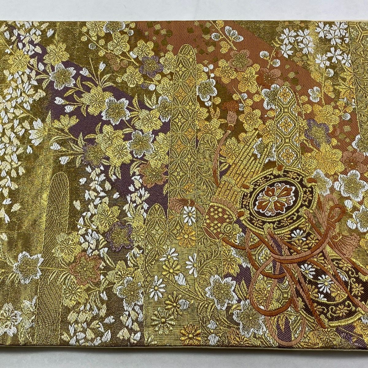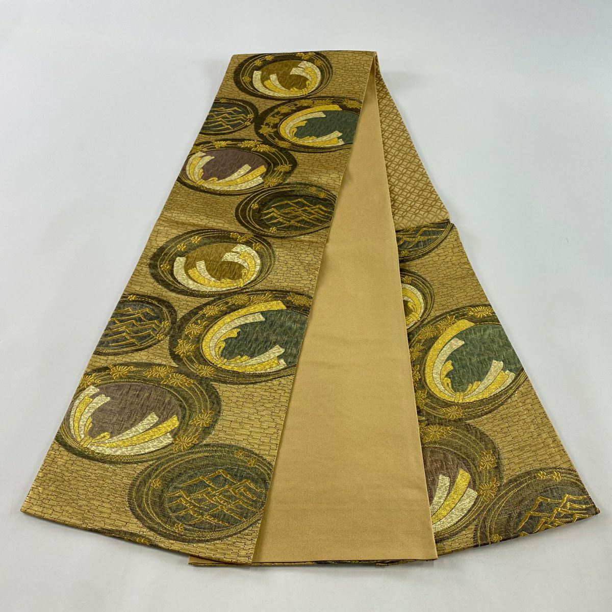 【在庫一掃】 袋帯 秀品 やまと 鎌倉文 糸巻き 金糸 箔 金色 六通 正絹