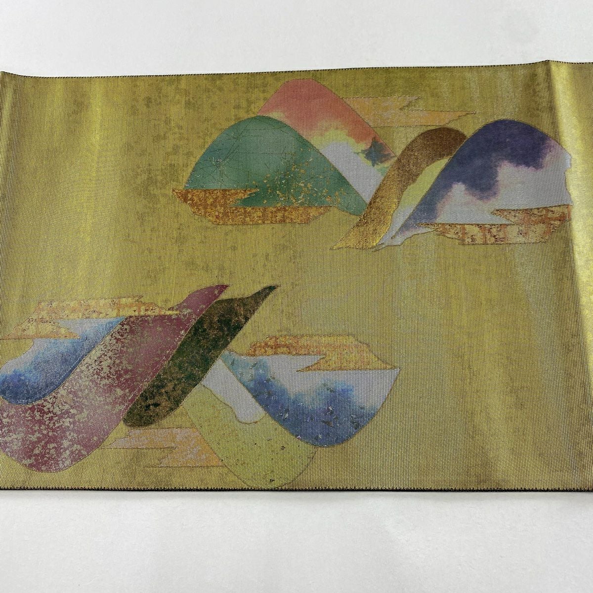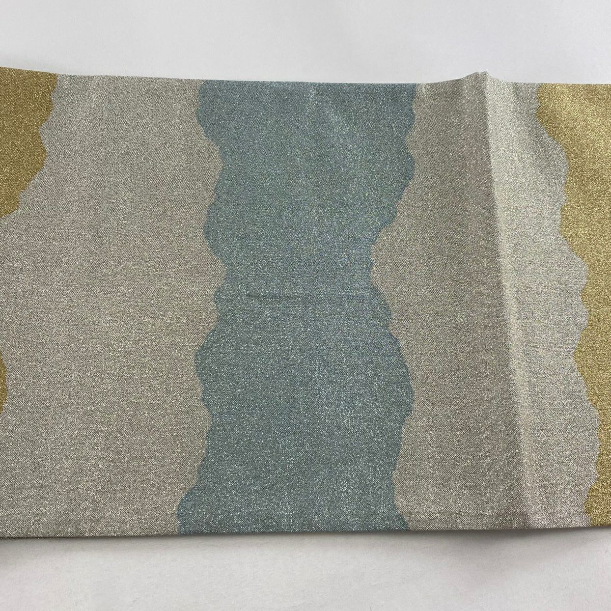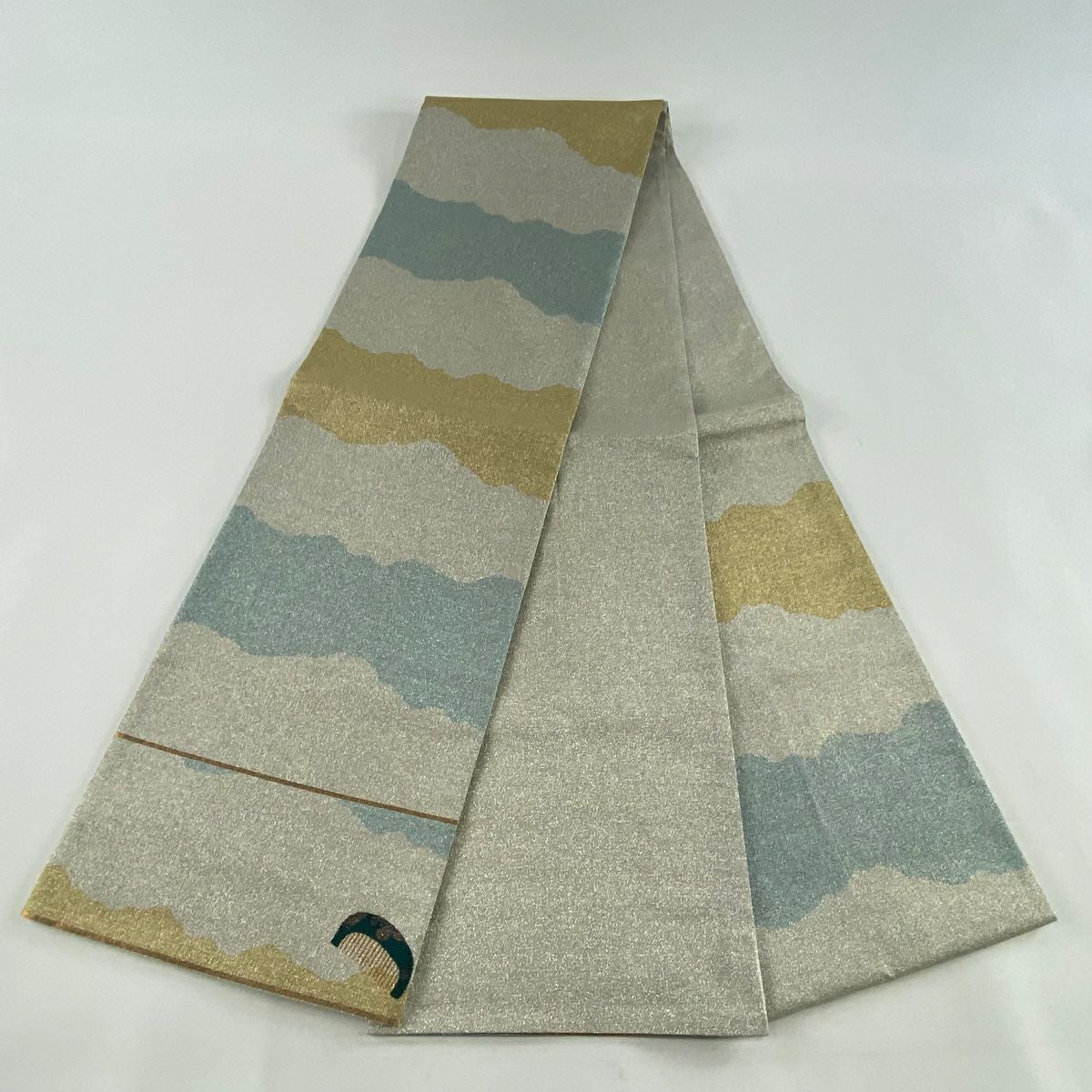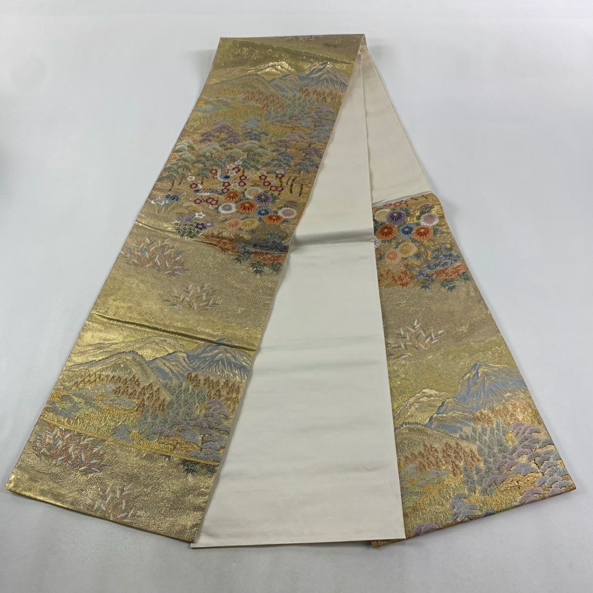 【在庫一掃】 【美品】 袋帯 秀品 山並み 霞 箔 金彩 金色 お太鼓柄 正絹