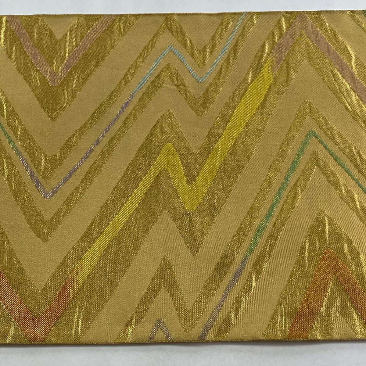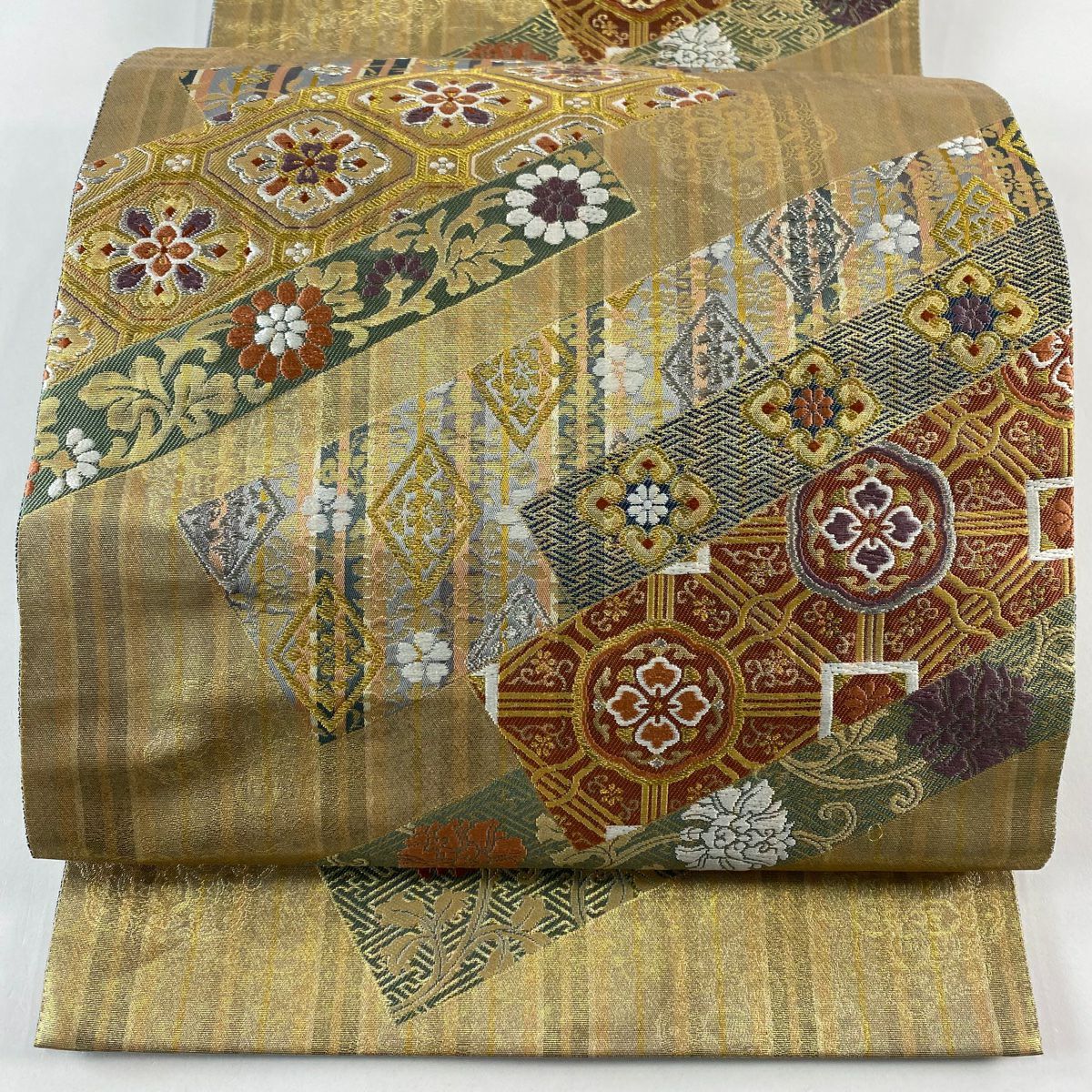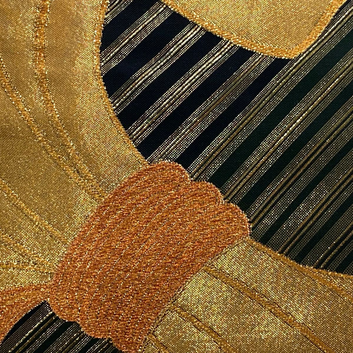 【在庫一掃】 【美品】 袋帯 秀品 蜀江華文 縞 金銀糸 箔 金色 六通 正絹