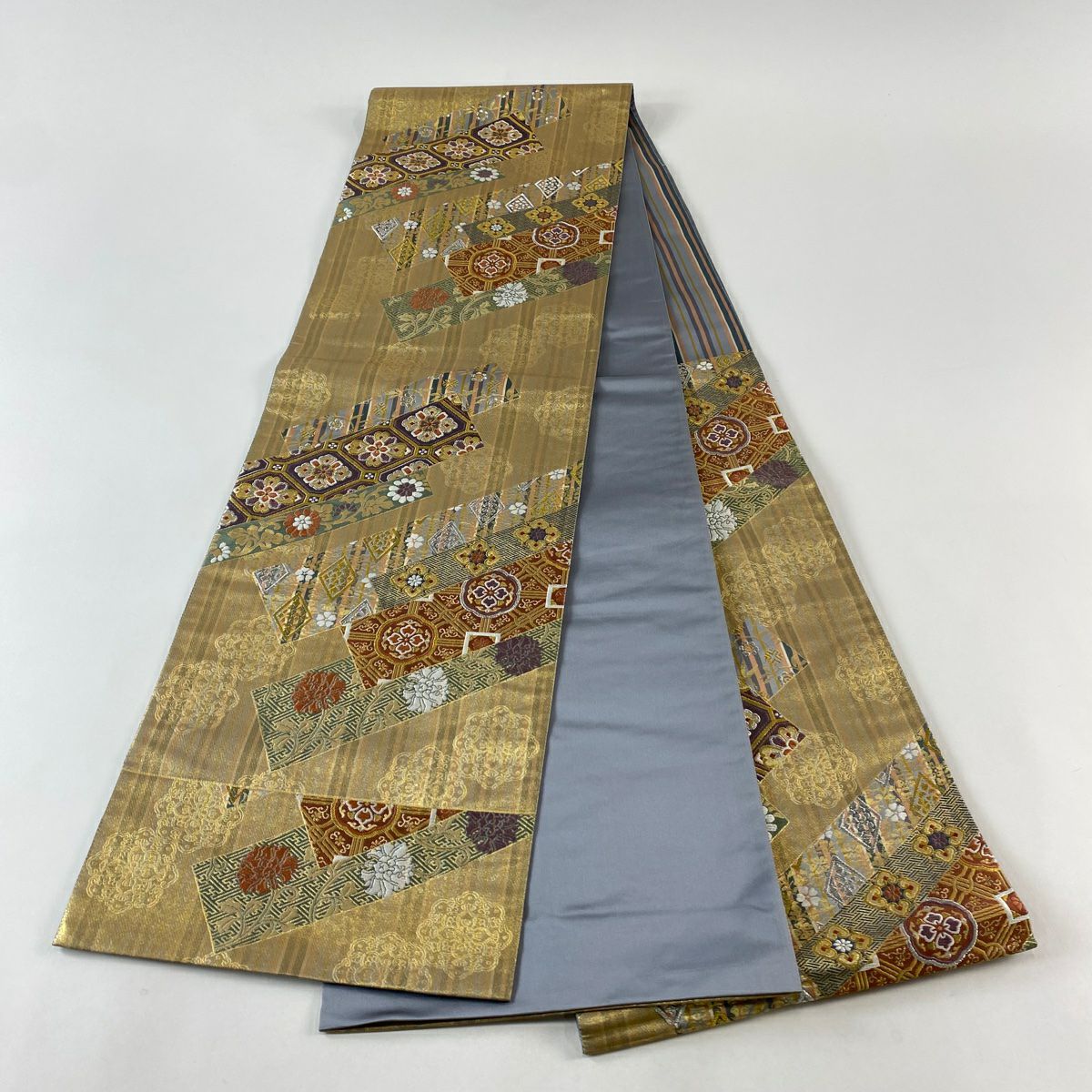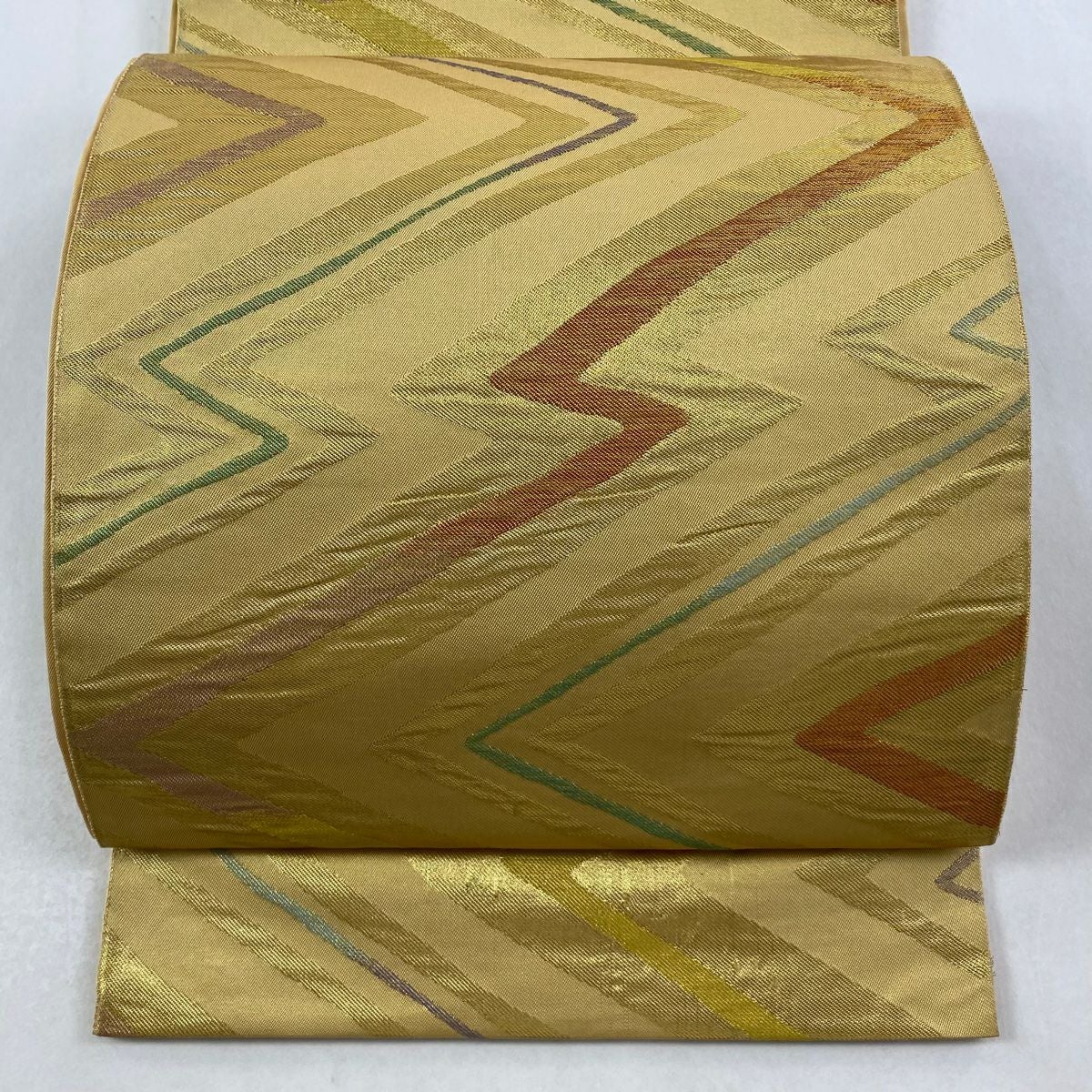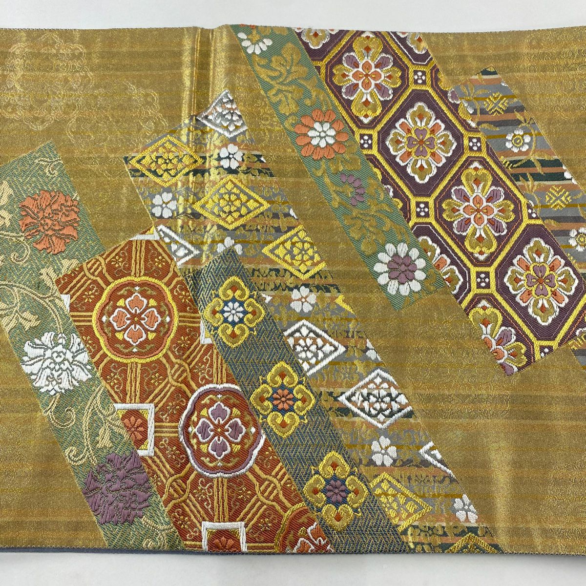 【在庫一掃】 【美品】 袋帯 秀品 蜀江華文 縞 金銀糸 箔 金色 六通 正絹