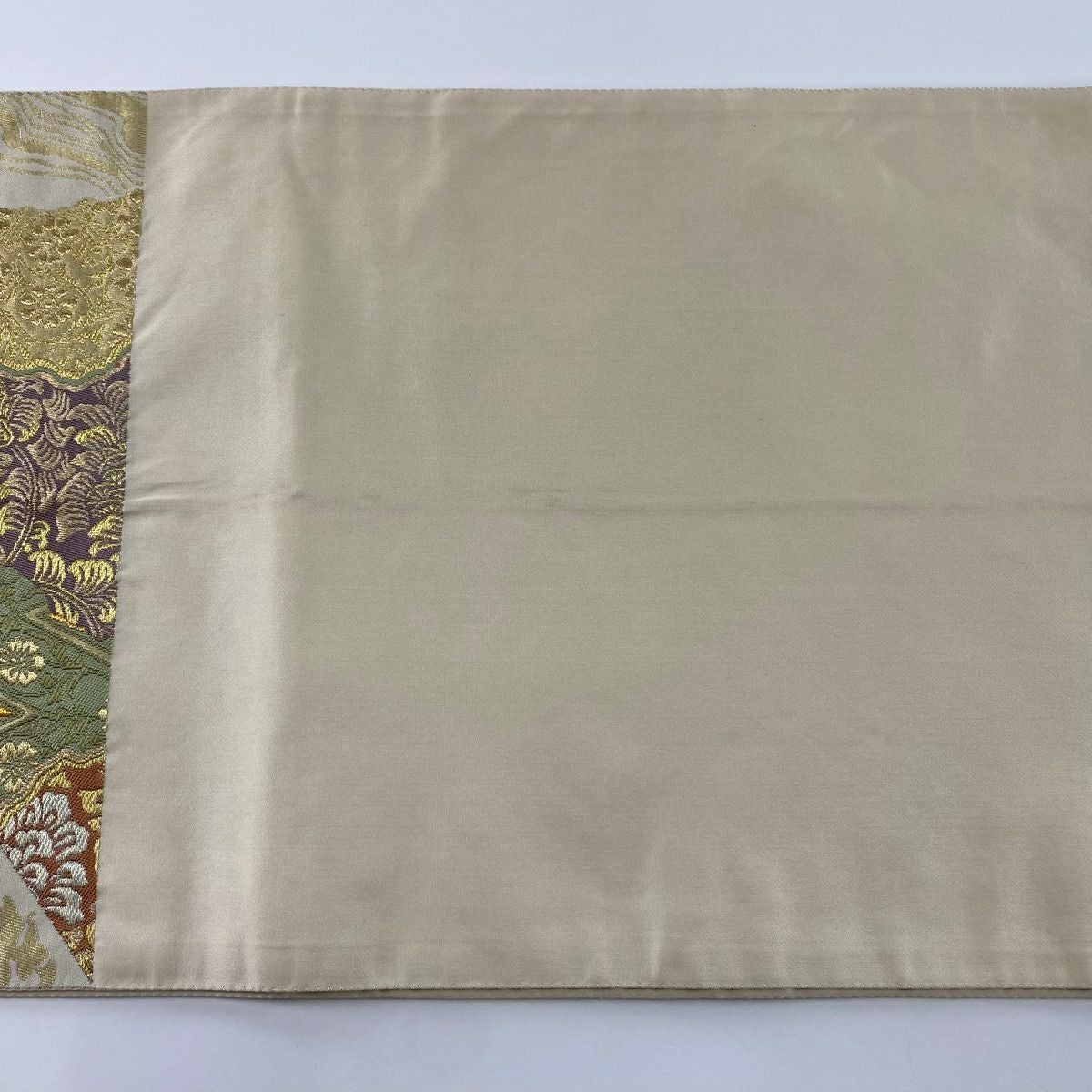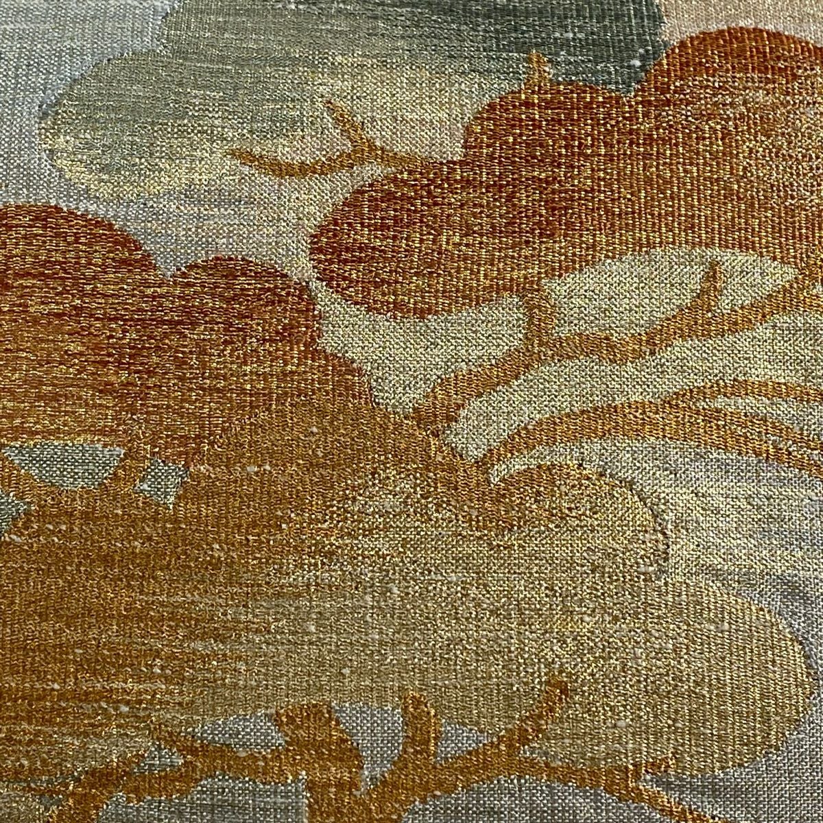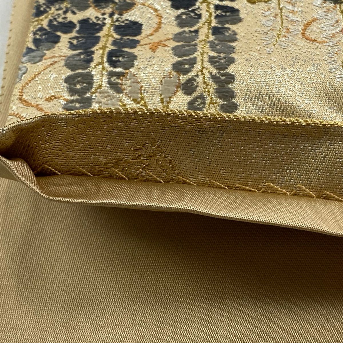 【在庫一掃】 袋帯 秀品 道長取 草花 箔 金糸 ベージュ 六通 正絹