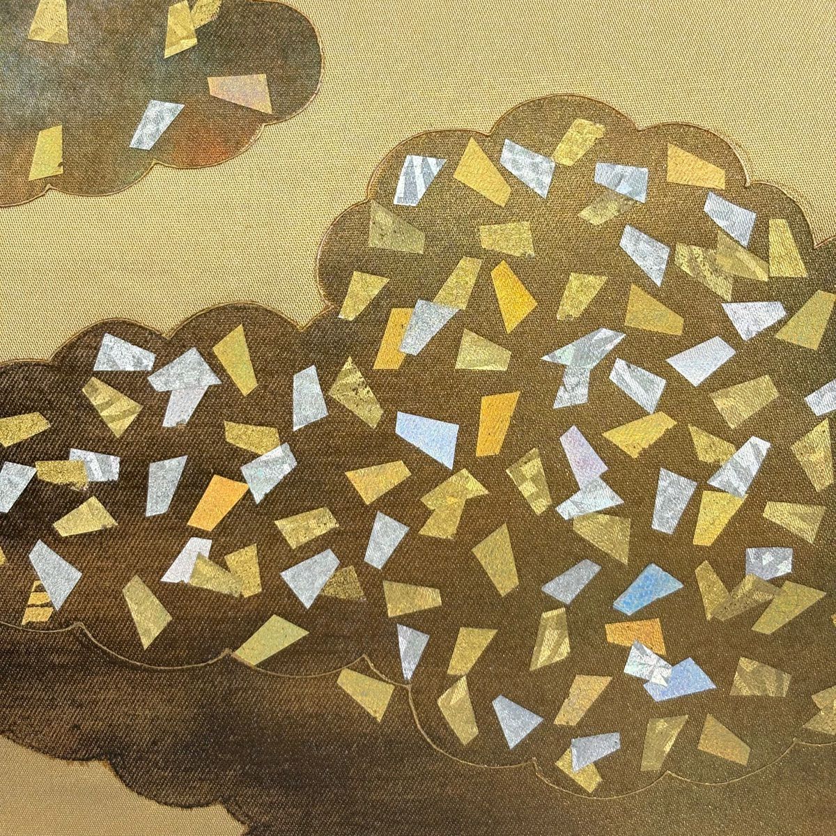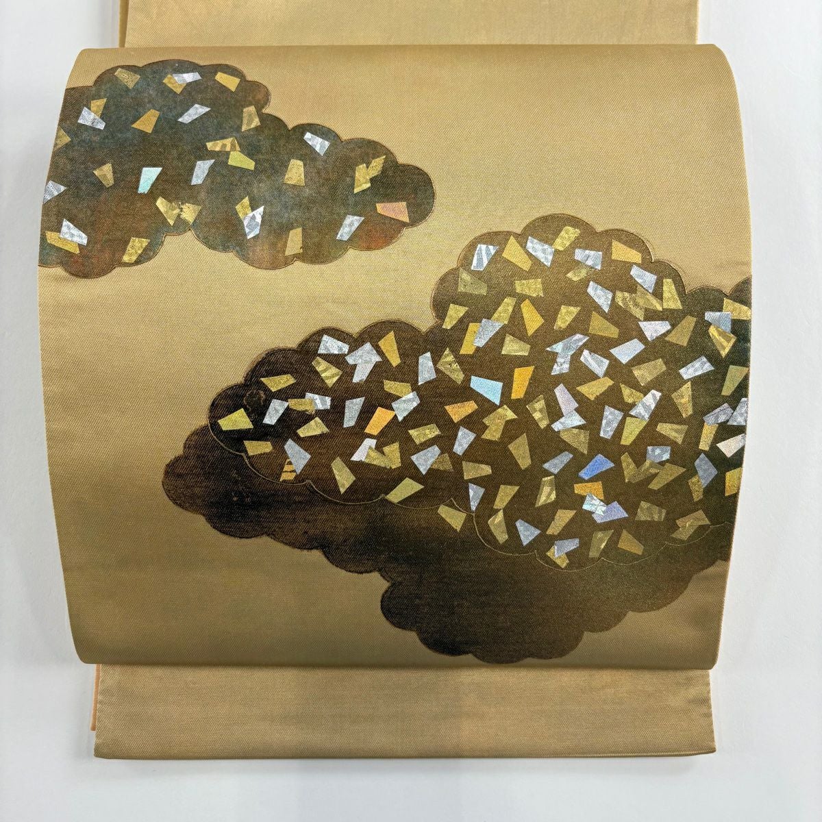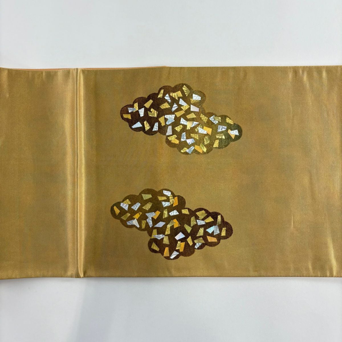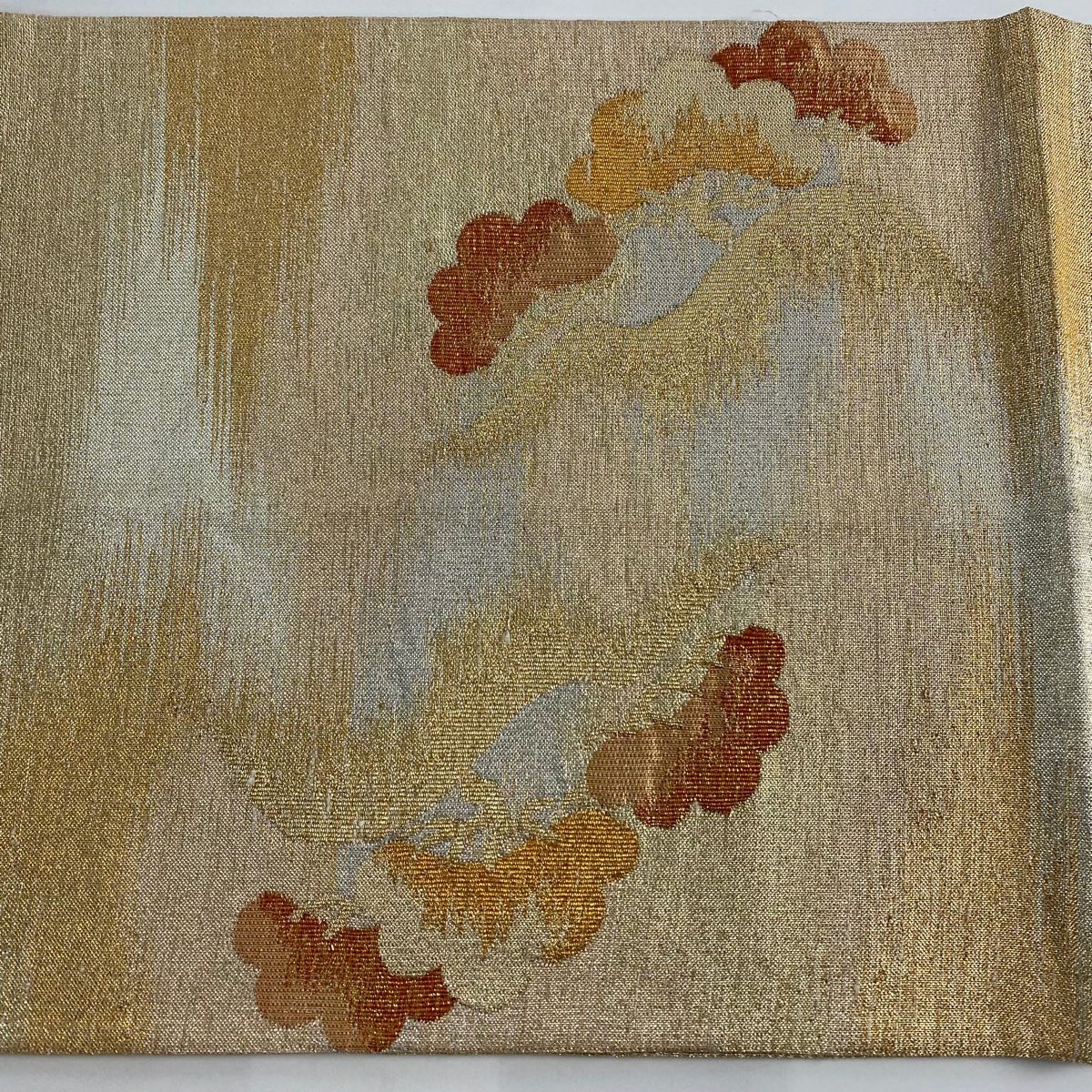 【在庫一掃】 袋帯 秀品 箔散らし 雲文 金銀彩 箔 山吹色 お太鼓柄 正絹