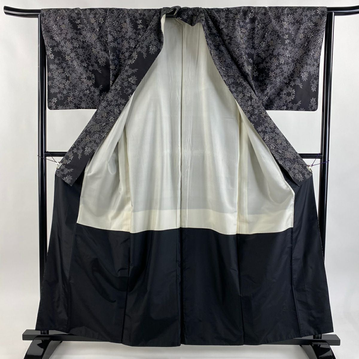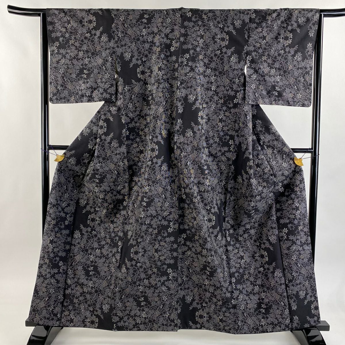 【在庫一掃】 紬 身丈161cm 裄丈63cm S 袷 楓 墨色 正絹 秀品