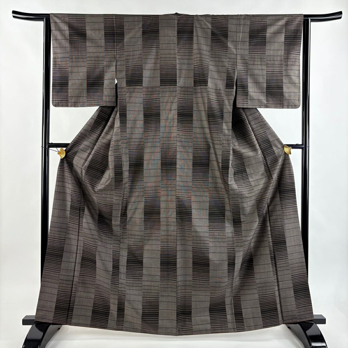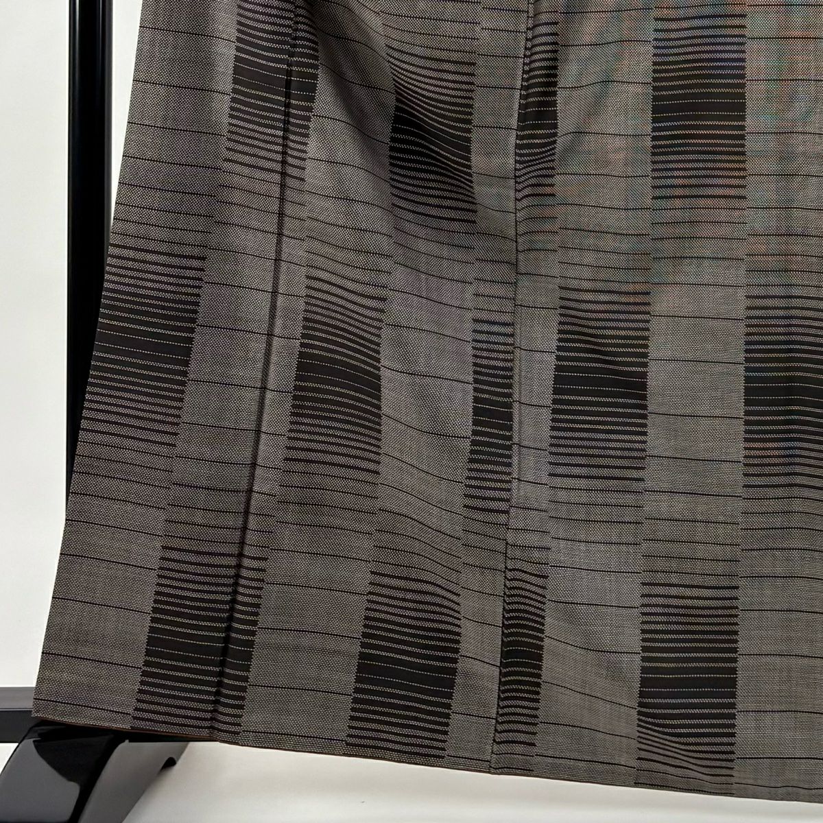 【在庫一掃】 紬 身丈165cm 裄丈63cm S 袷 縞 黒灰 正絹 秀品