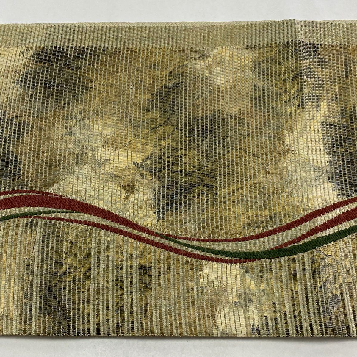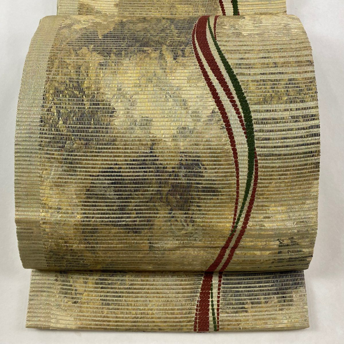 【在庫一掃】 【美品】 袋帯 秀品 露芝 縞 金銀糸 箔 金色 お太鼓柄 正絹