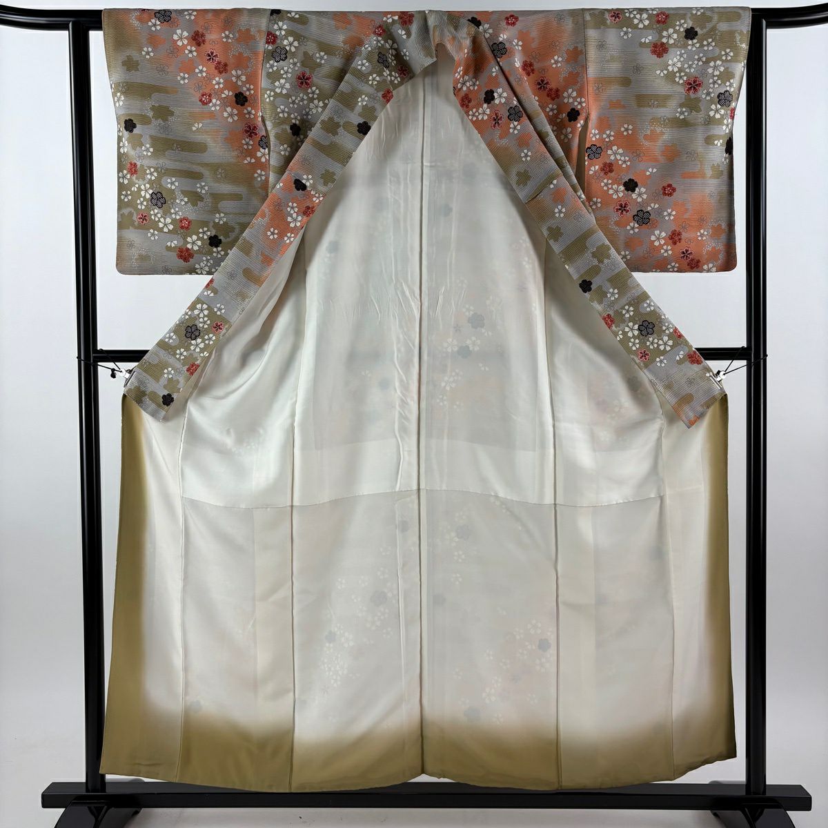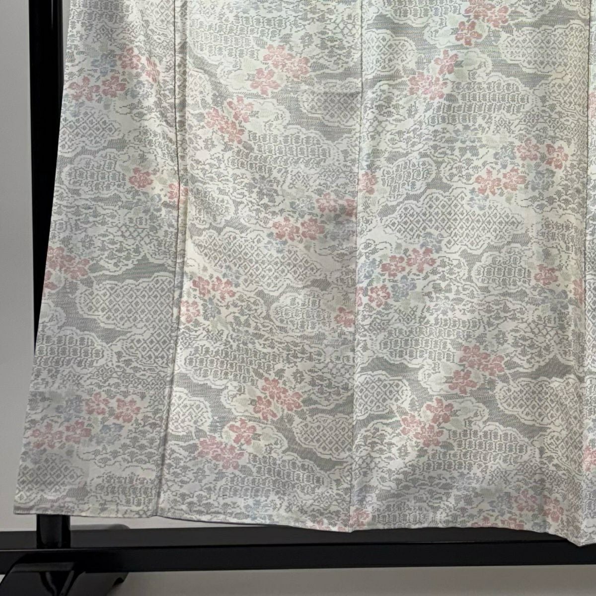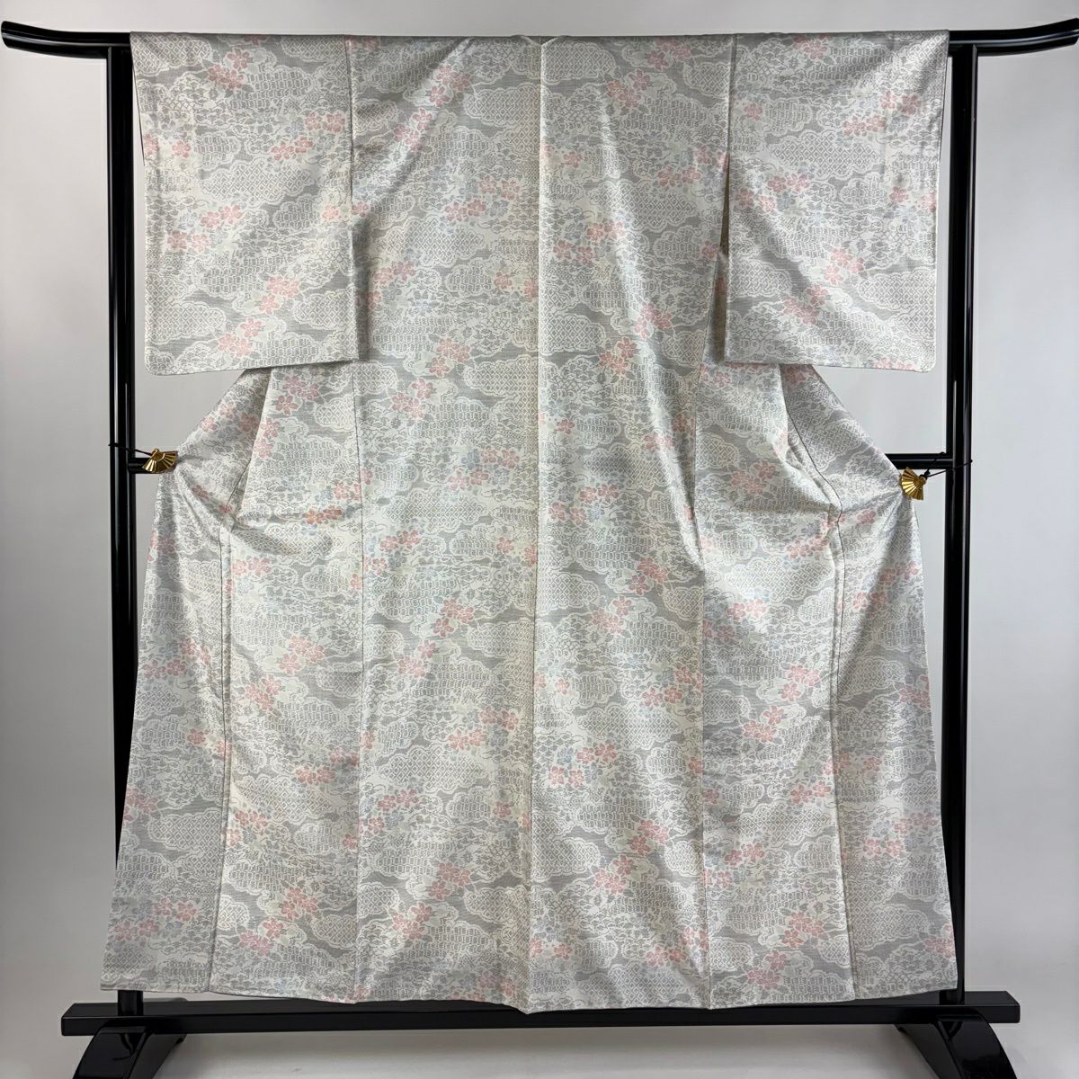 小紋 身丈156cm 裄丈61.5cm S 袷 桜 霞 金彩 灰茶 正絹 秀品