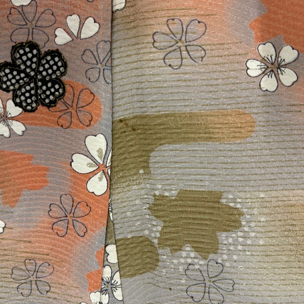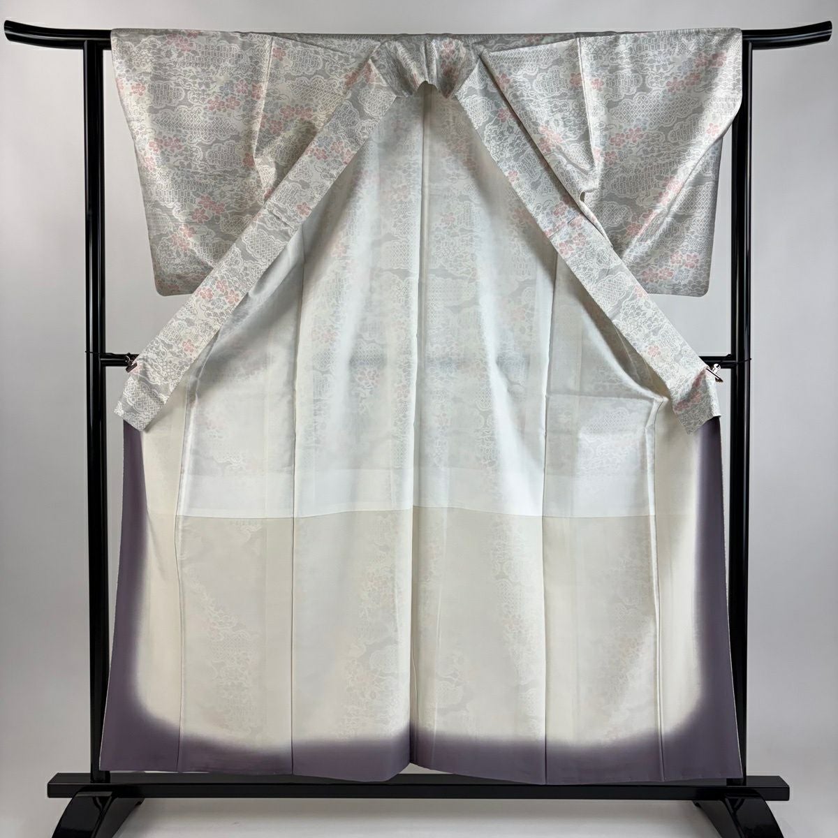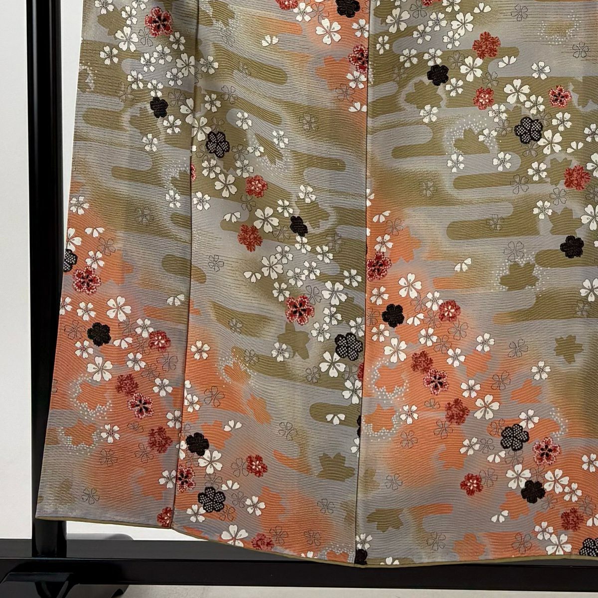 小紋 身丈156cm 裄丈61.5cm S 袷 桜 霞 金彩 灰茶 正絹 秀品