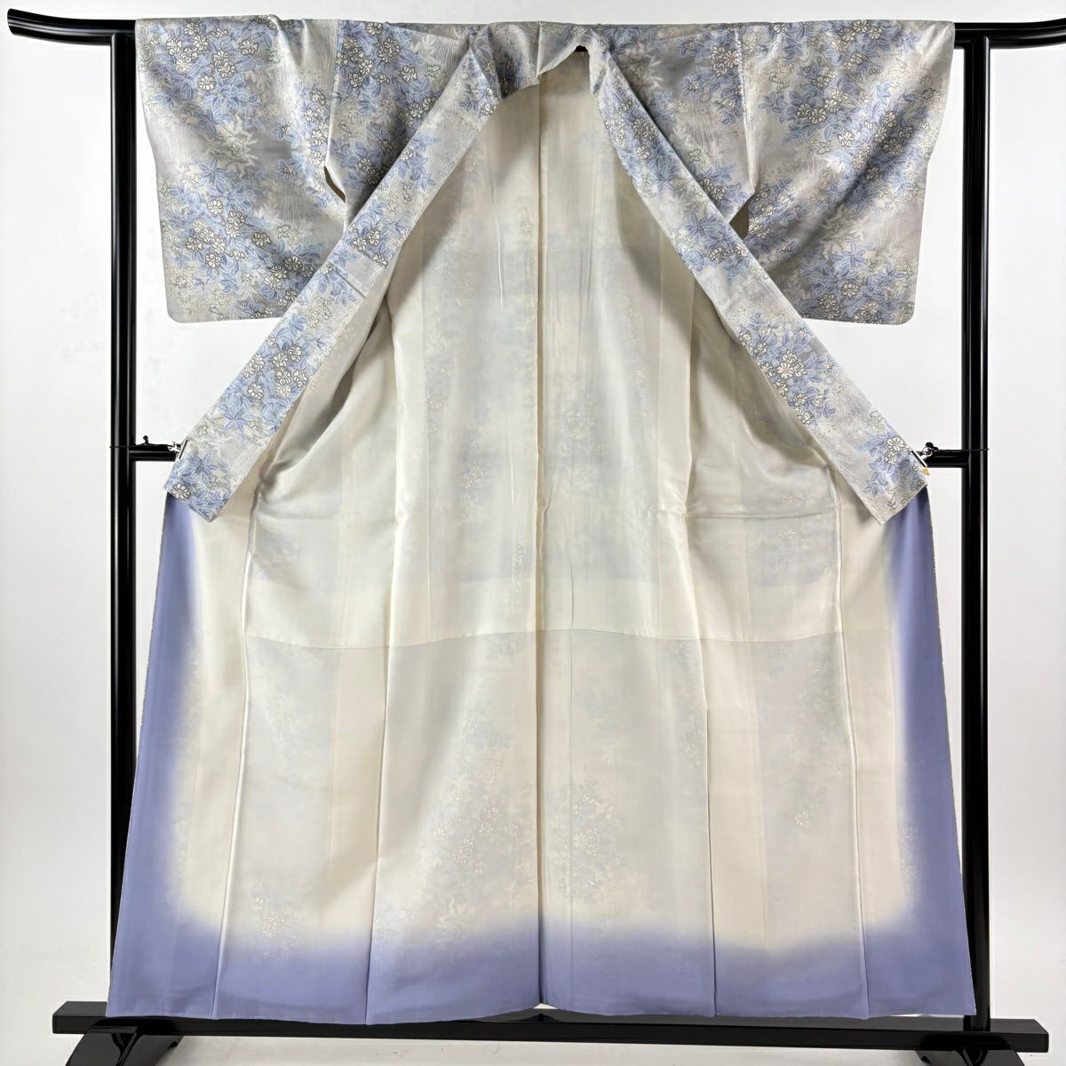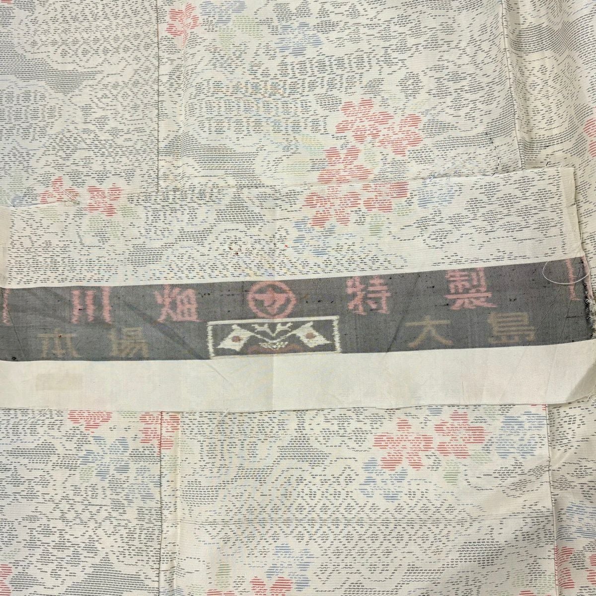 大島紬 身丈157.5cm 裄丈63cm S 袷 草花 雲文 灰白 正絹 秀品