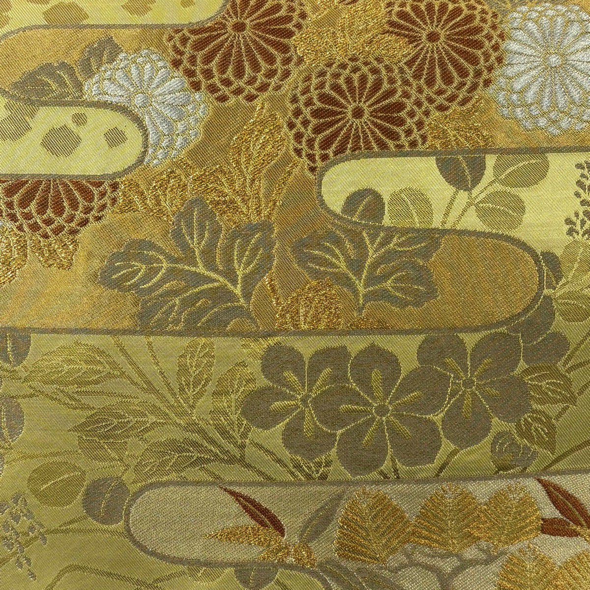 袋帯 秀品 川島織物 落款あり ヱ霞 松竹梅 金銀糸 箔 黄緑色 六通 正絹