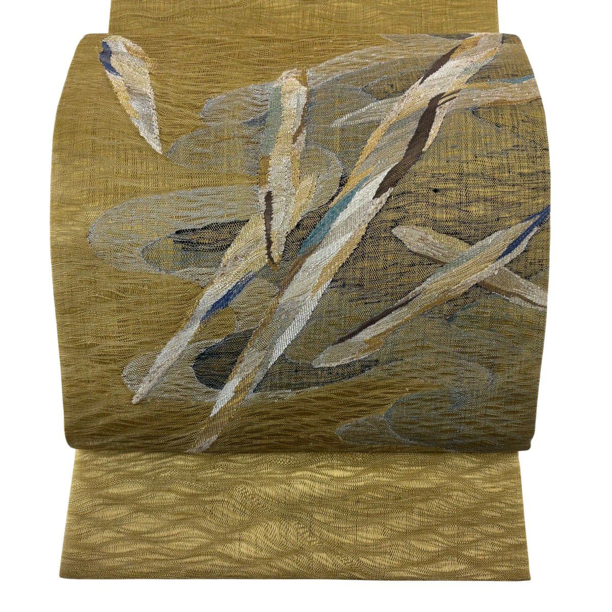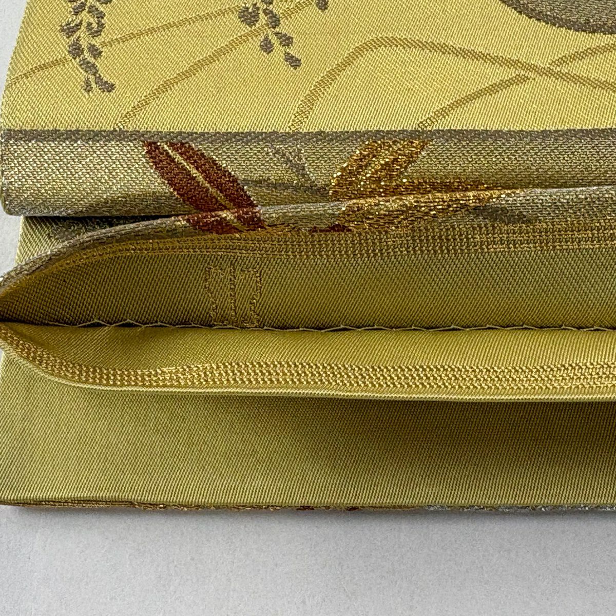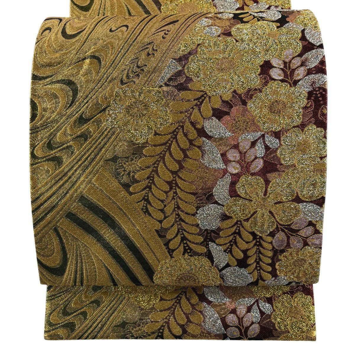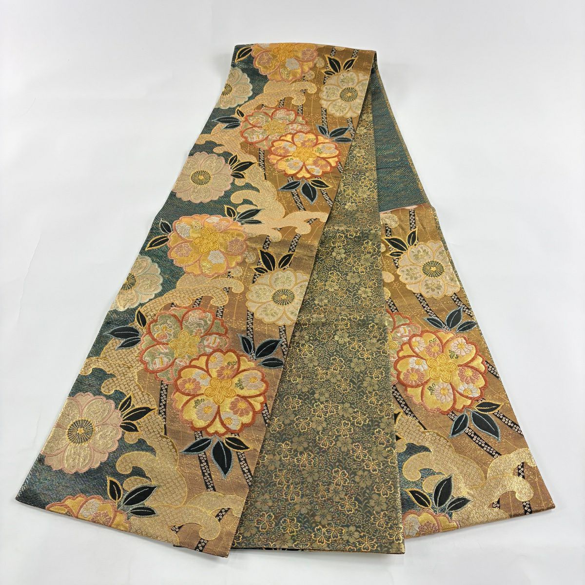 【美品】 袋帯 秀品 落款あり 振袖向き 桜 波頭 金糸 箔 金茶 六通 正絹
