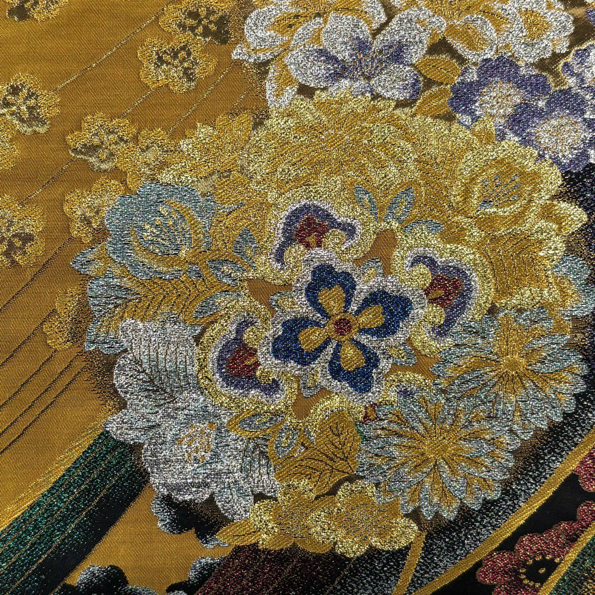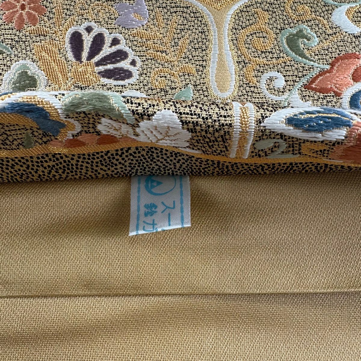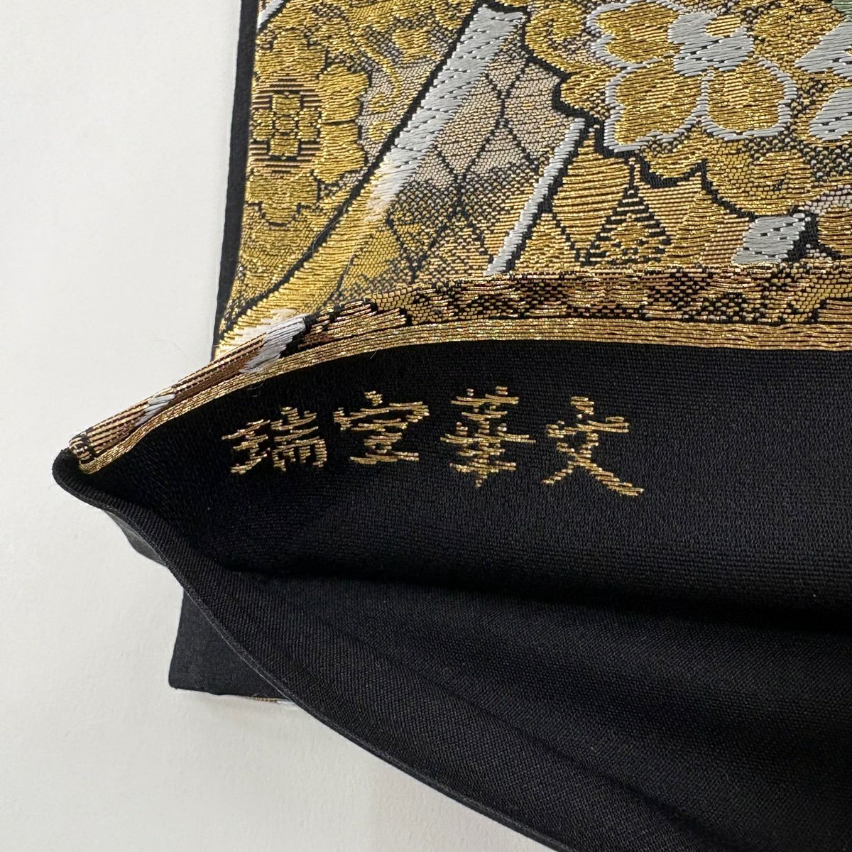【美品】 袋帯 秀品 落款あり 振袖向き 桜 波頭 金糸 箔 金茶 六通 正絹