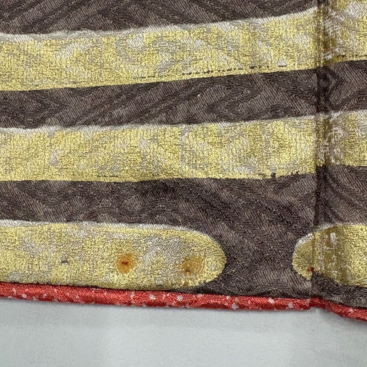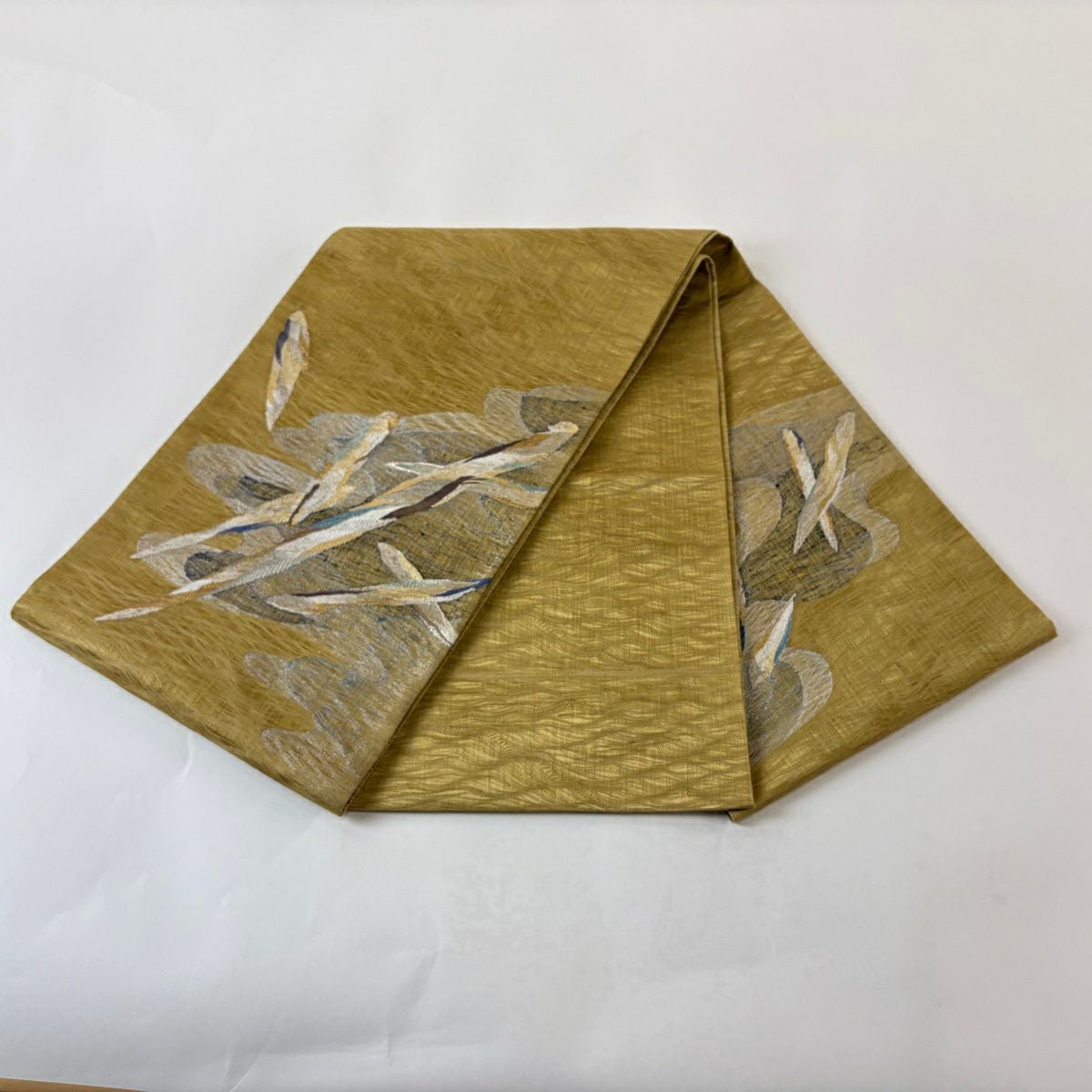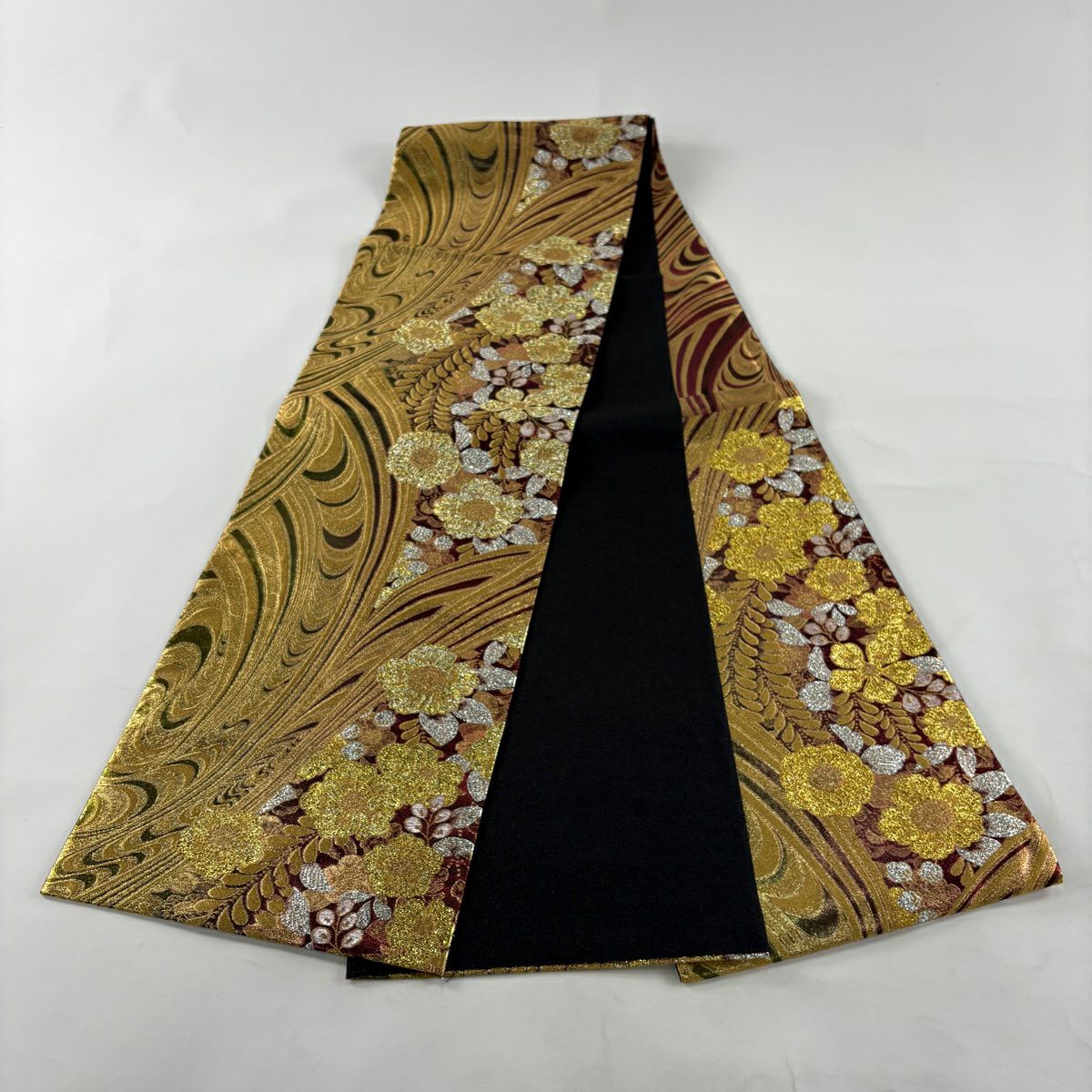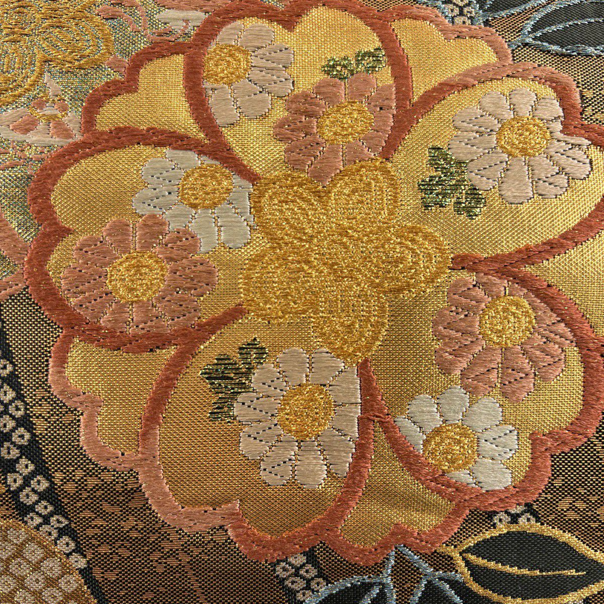 【美品】 袋帯 秀品 落款あり 振袖向き 桜 波頭 金糸 箔 金茶 六通 正絹