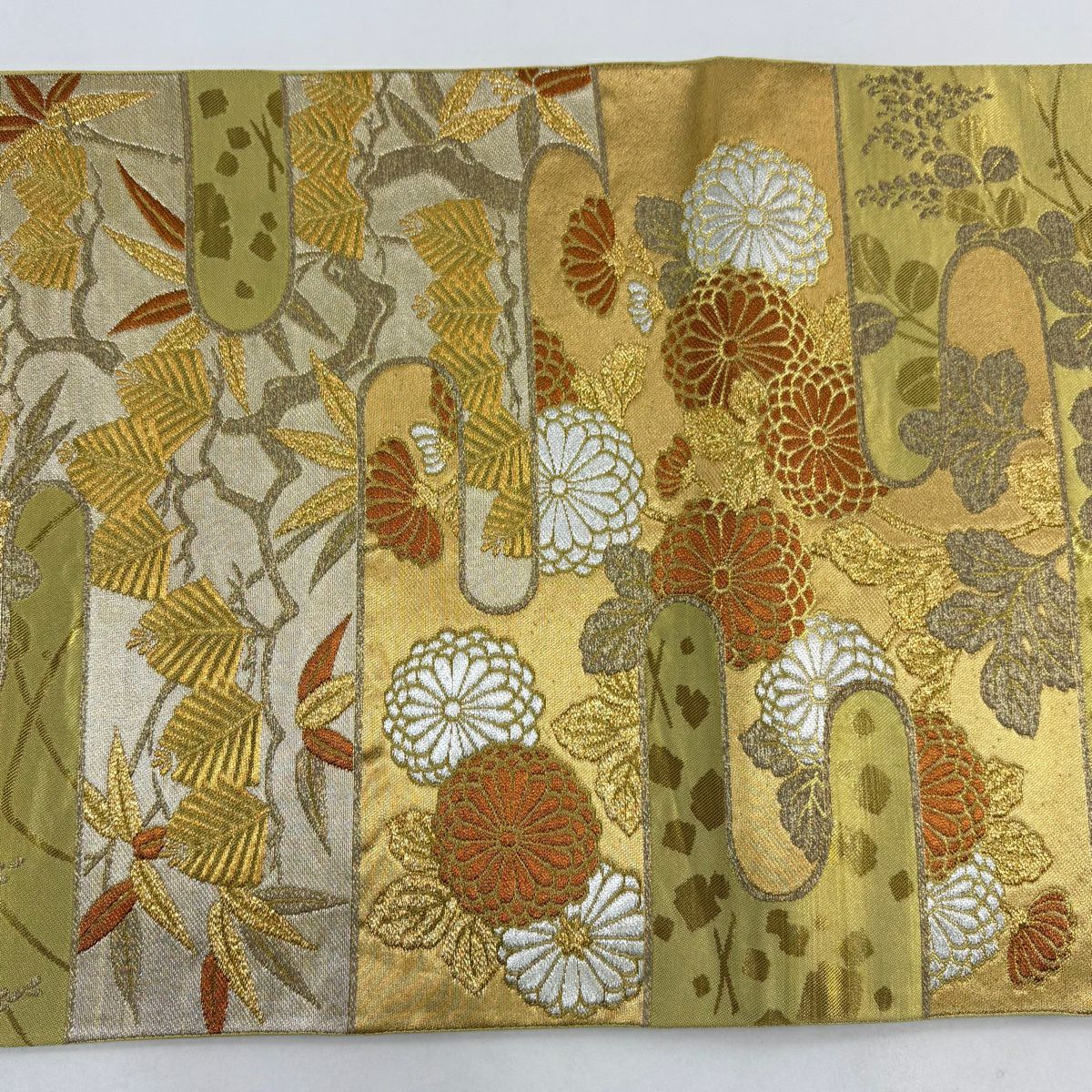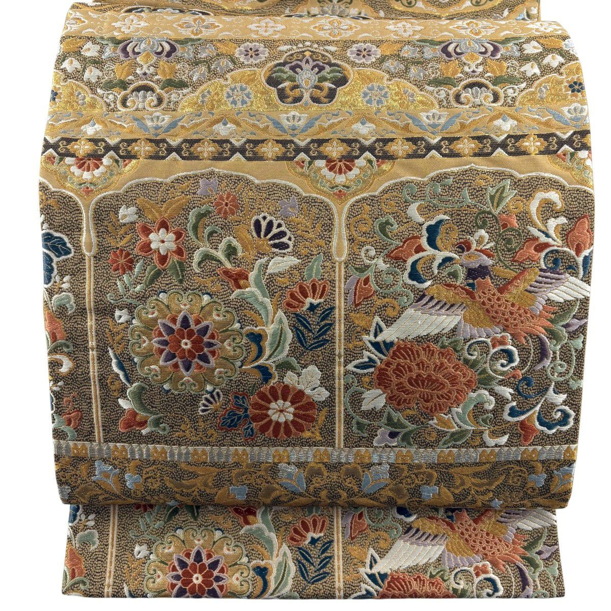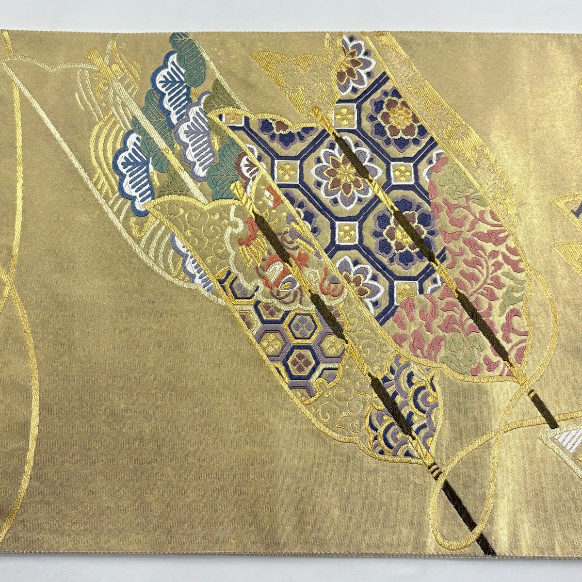 【美品】 袋帯 秀品 瑞宝華文 夢花選 華文 幾何学 金糸 箔 金色 六通 正絹