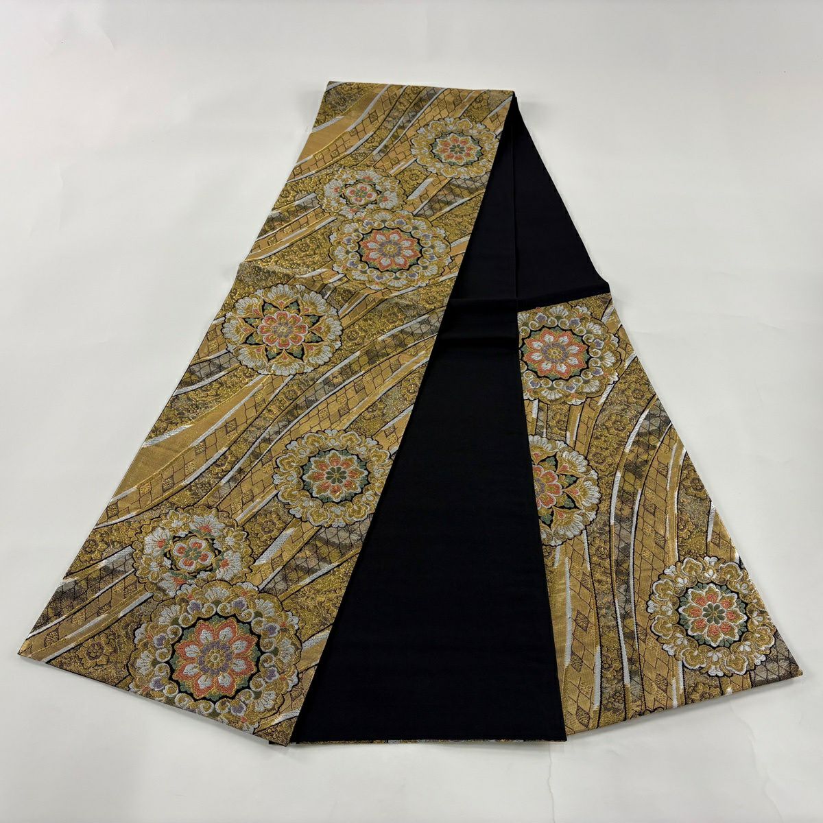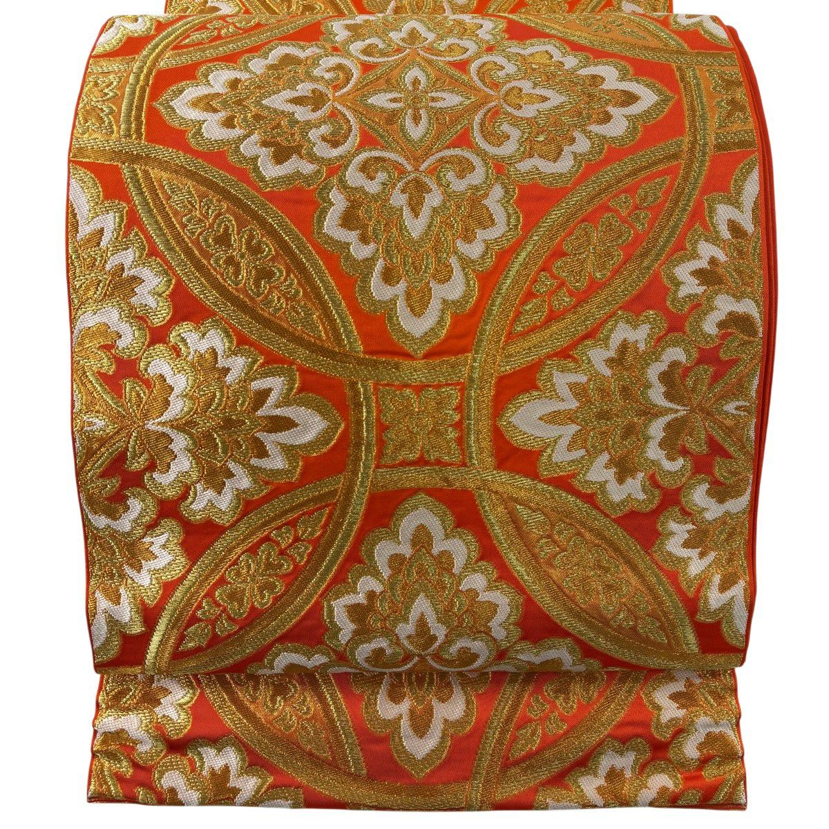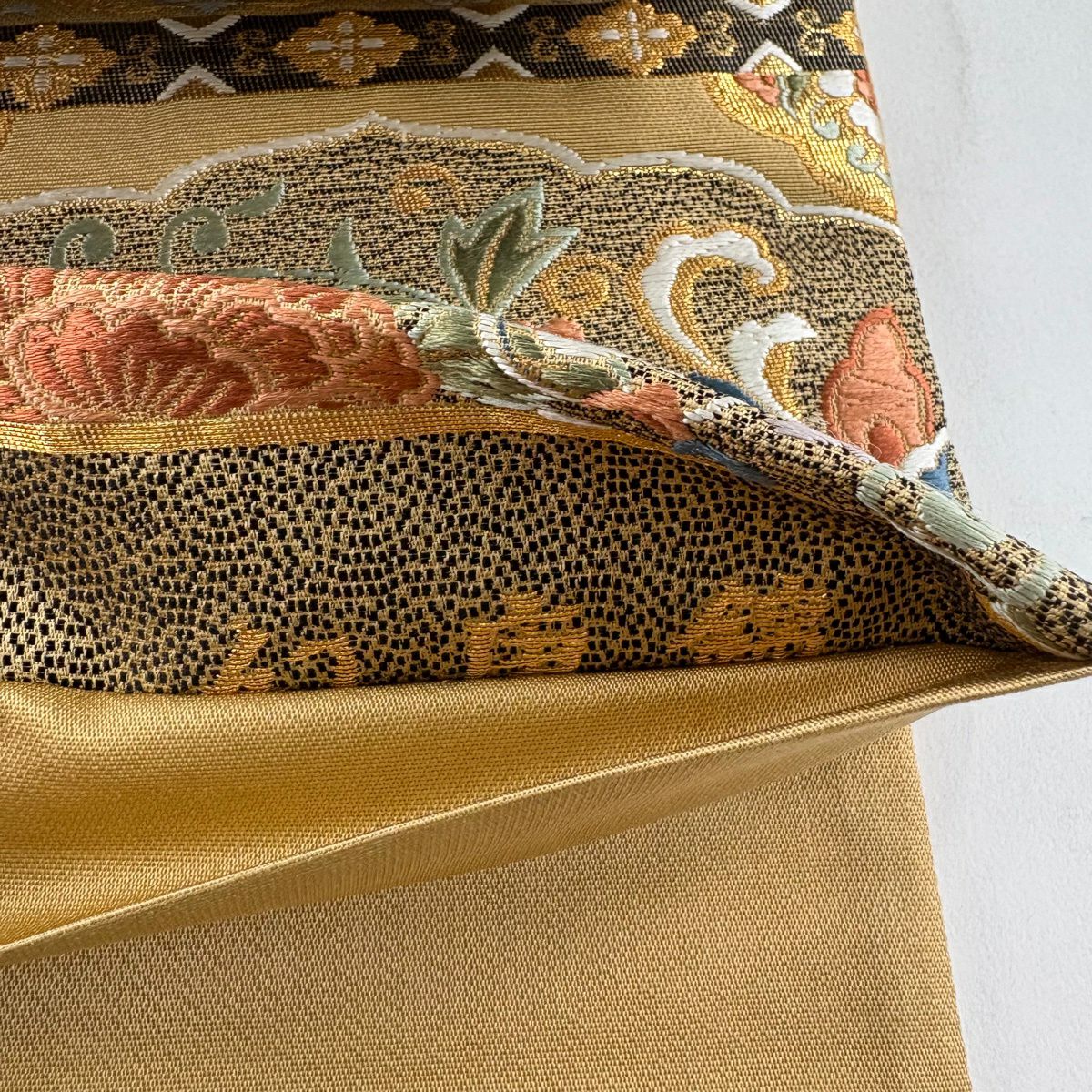 【美品】 袋帯 秀品 瑞宝華文 夢花選 華文 幾何学 金糸 箔 金色 六通 正絹