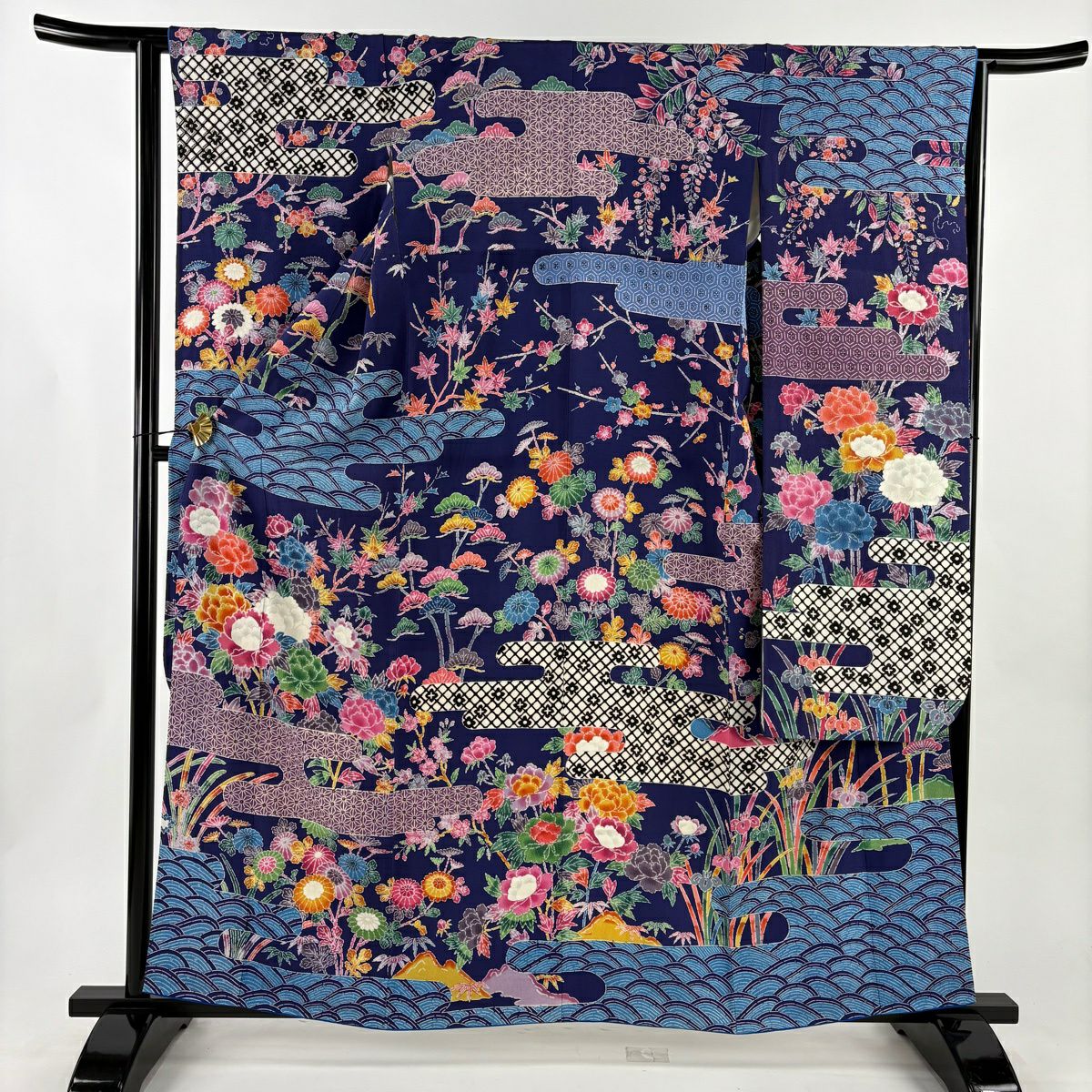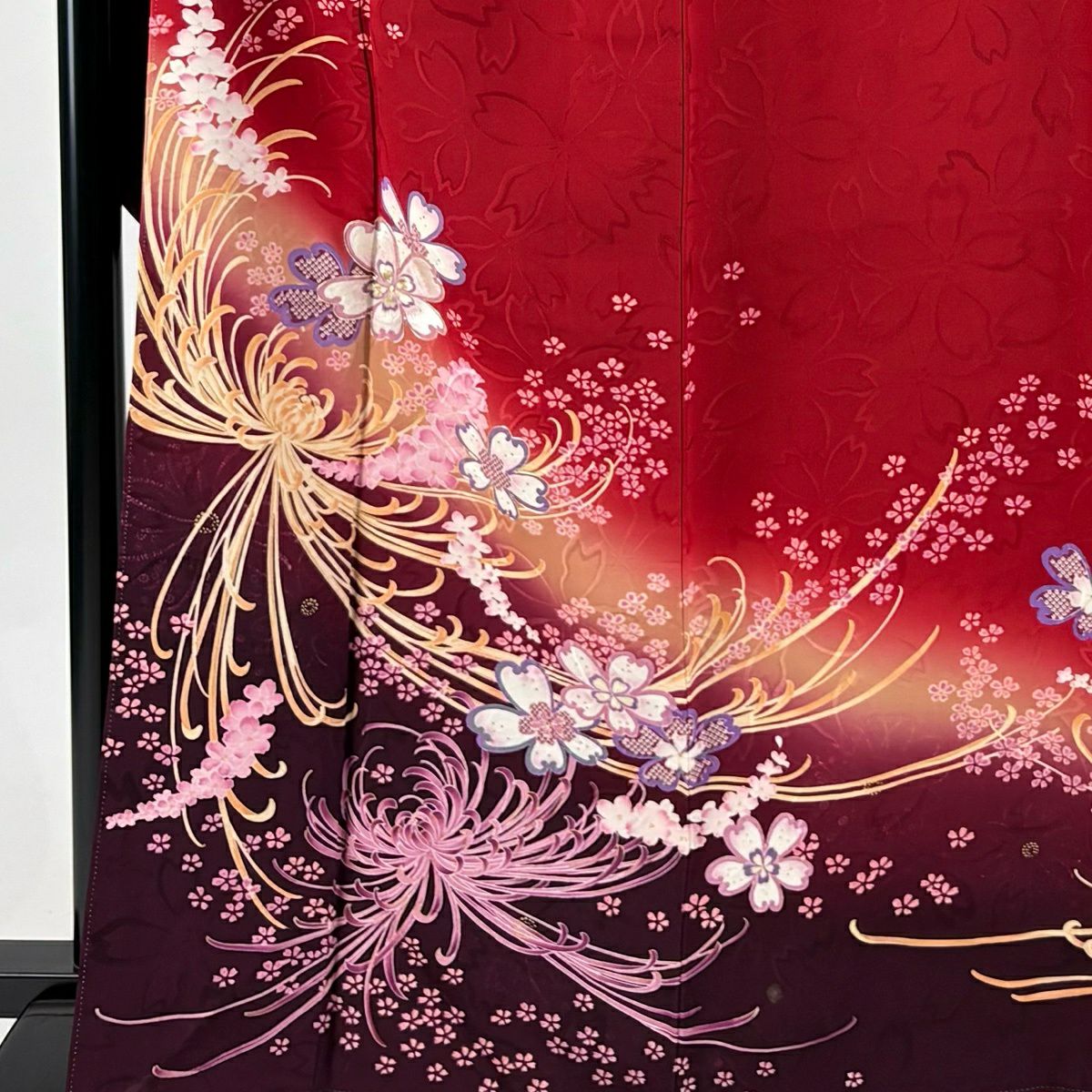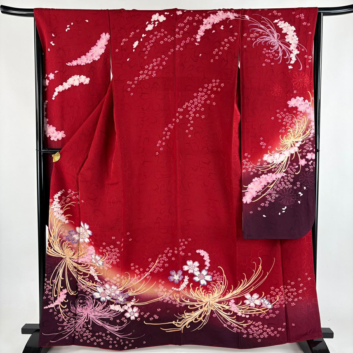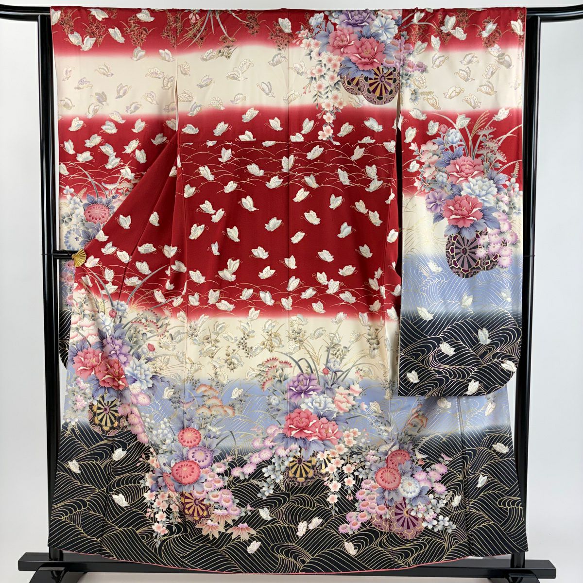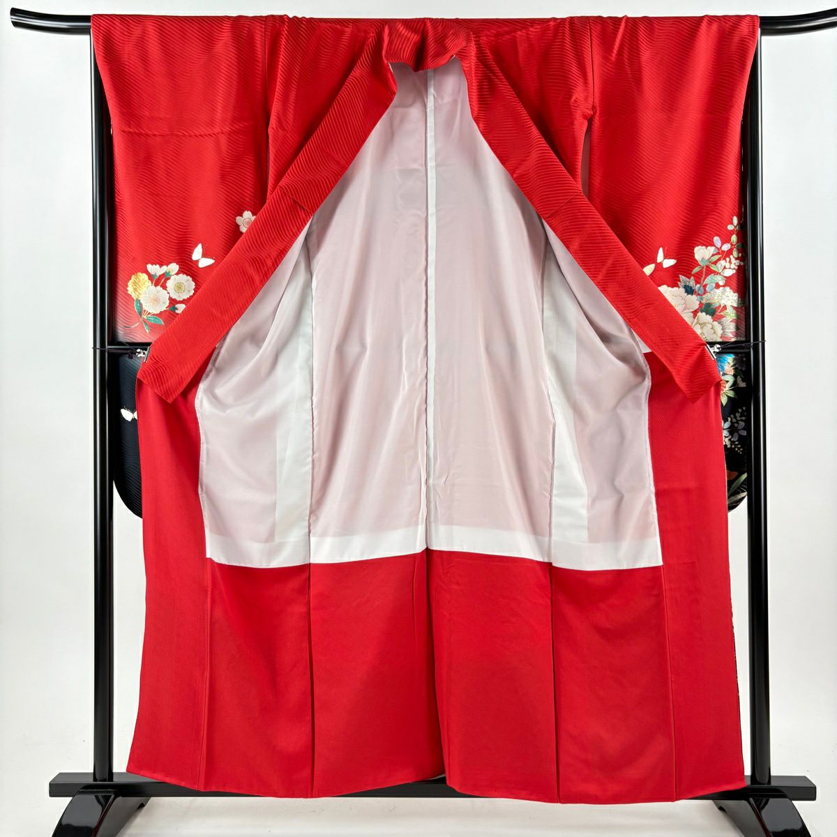 振袖 身丈158cm 裄丈64cm M 袷 花車 波 金糸 金彩 赤 正絹 秀品
