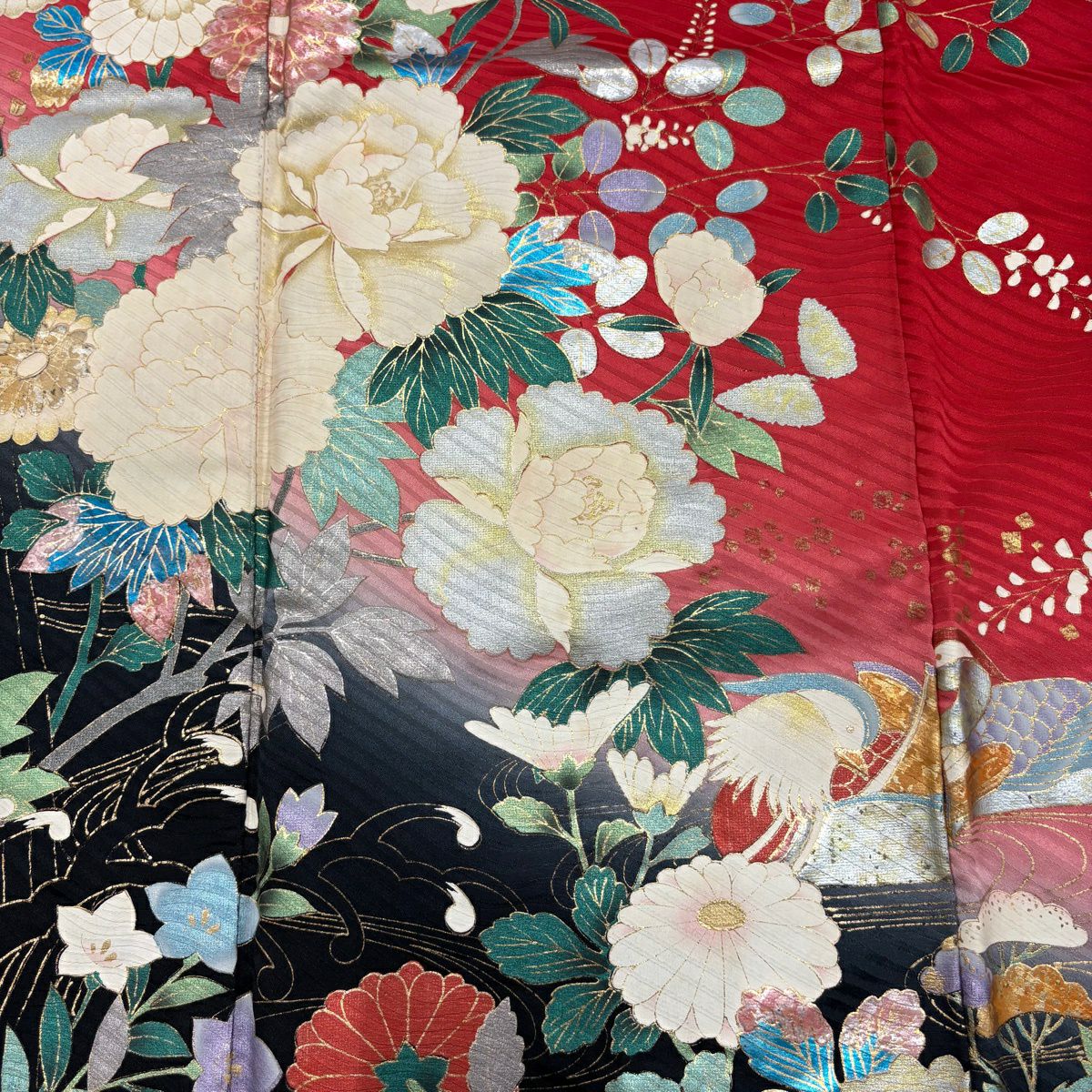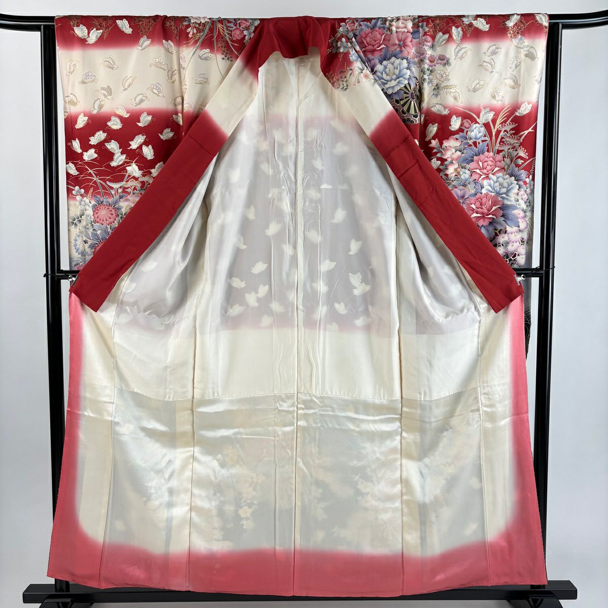 振袖 身丈157cm 裄丈65cm M 袷 鴛鴦 牡丹 金銀彩 赤 正絹 秀品