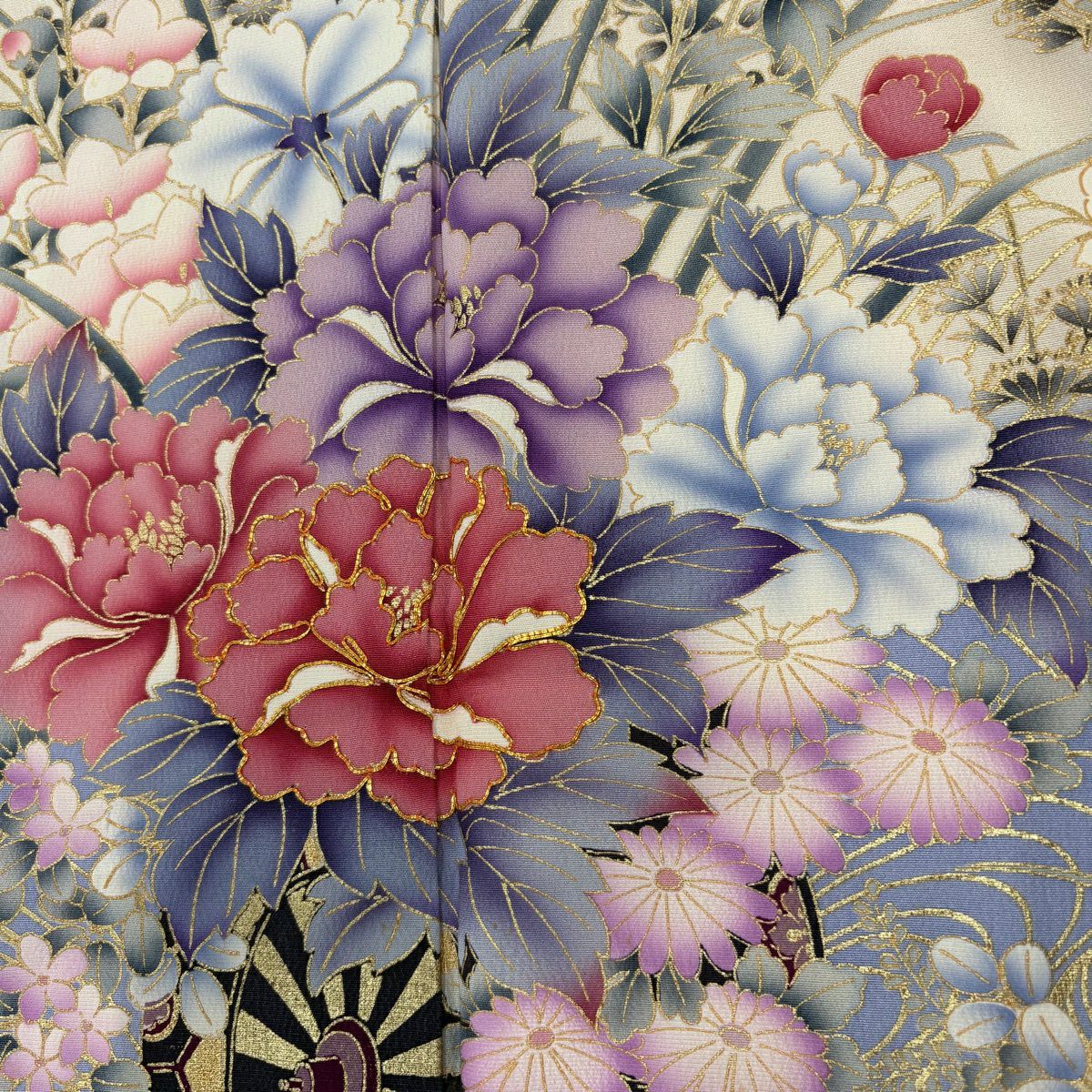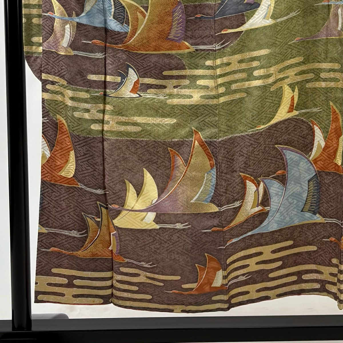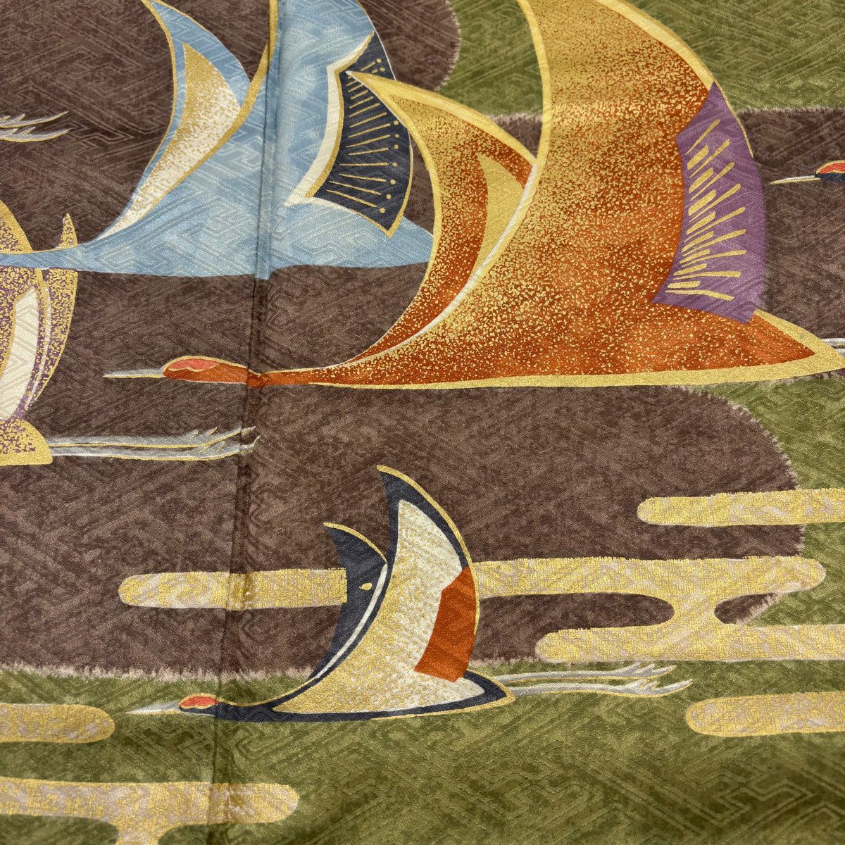 振袖 身丈155cm 裄丈63.5cm S 袷 鶴 ヱ霞 金彩 灰紫 正絹 秀品