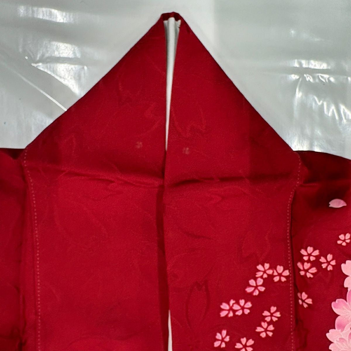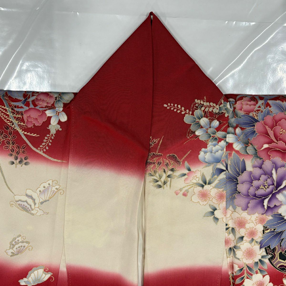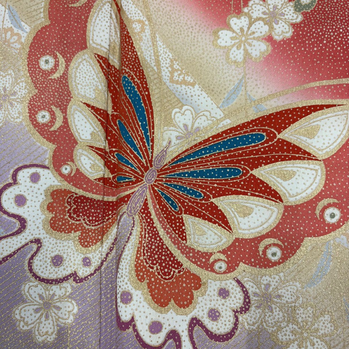 訪問着 身丈163.5cm 裄丈64cm M 袷 蝶 桜 金彩 赤 正絹 秀品