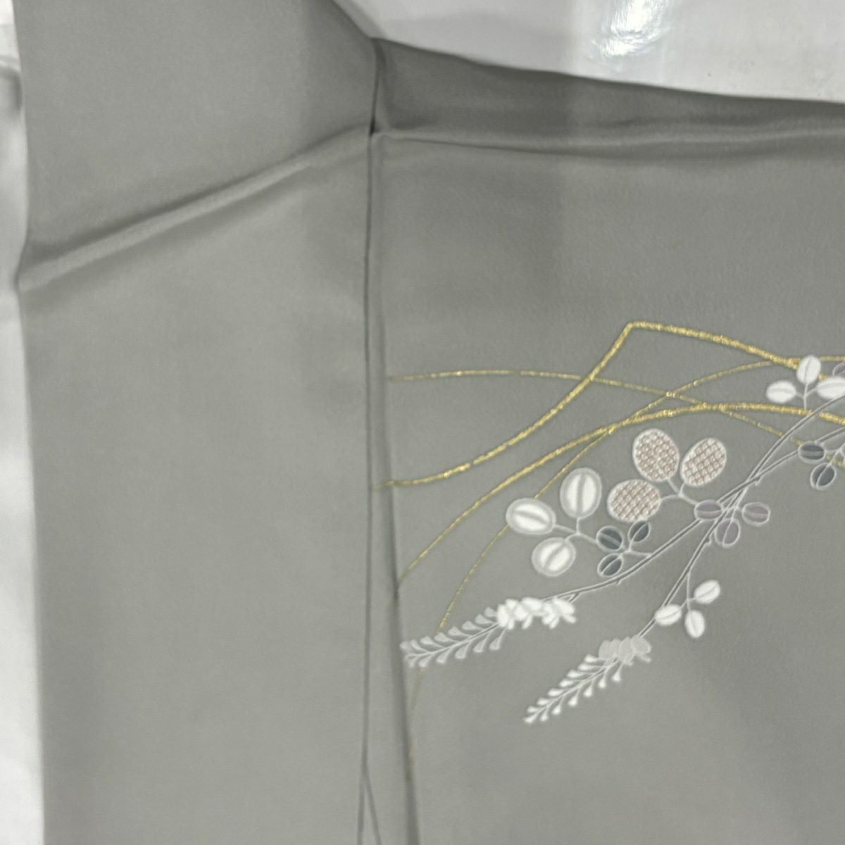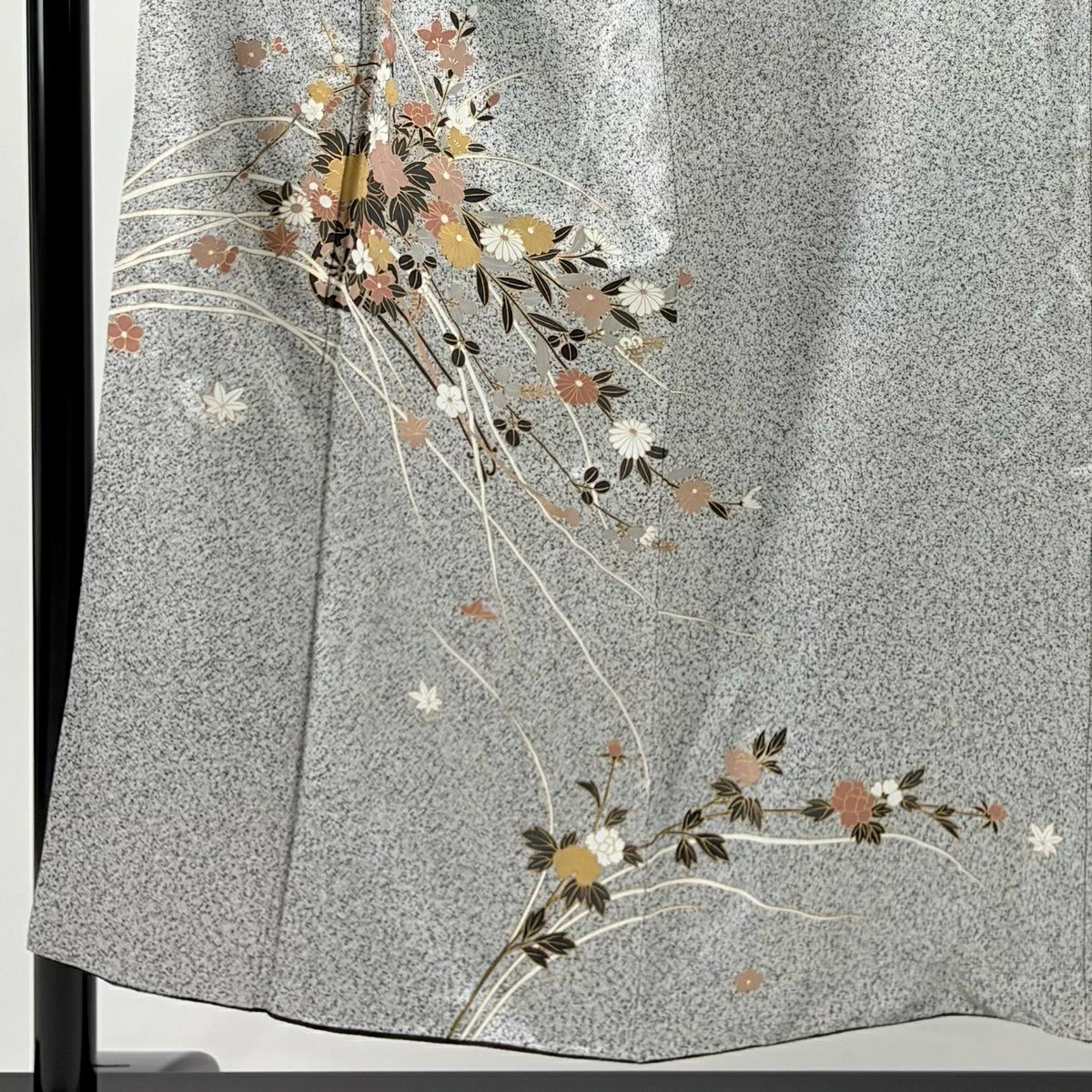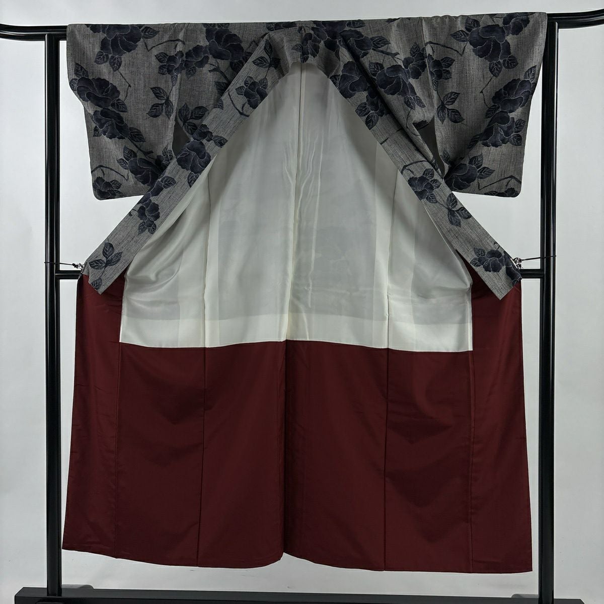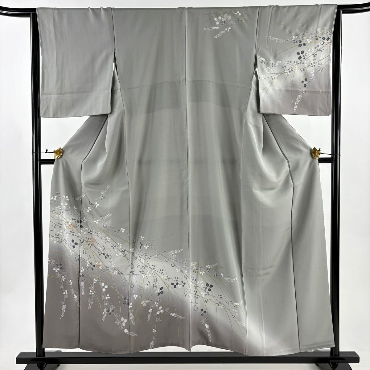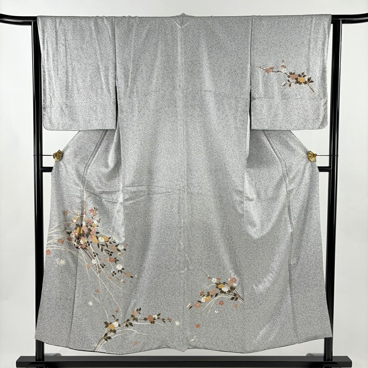 【美品】 紬 身丈158.5cm 裄丈62.5cm S 袷 草花 灰色 正絹 秀品