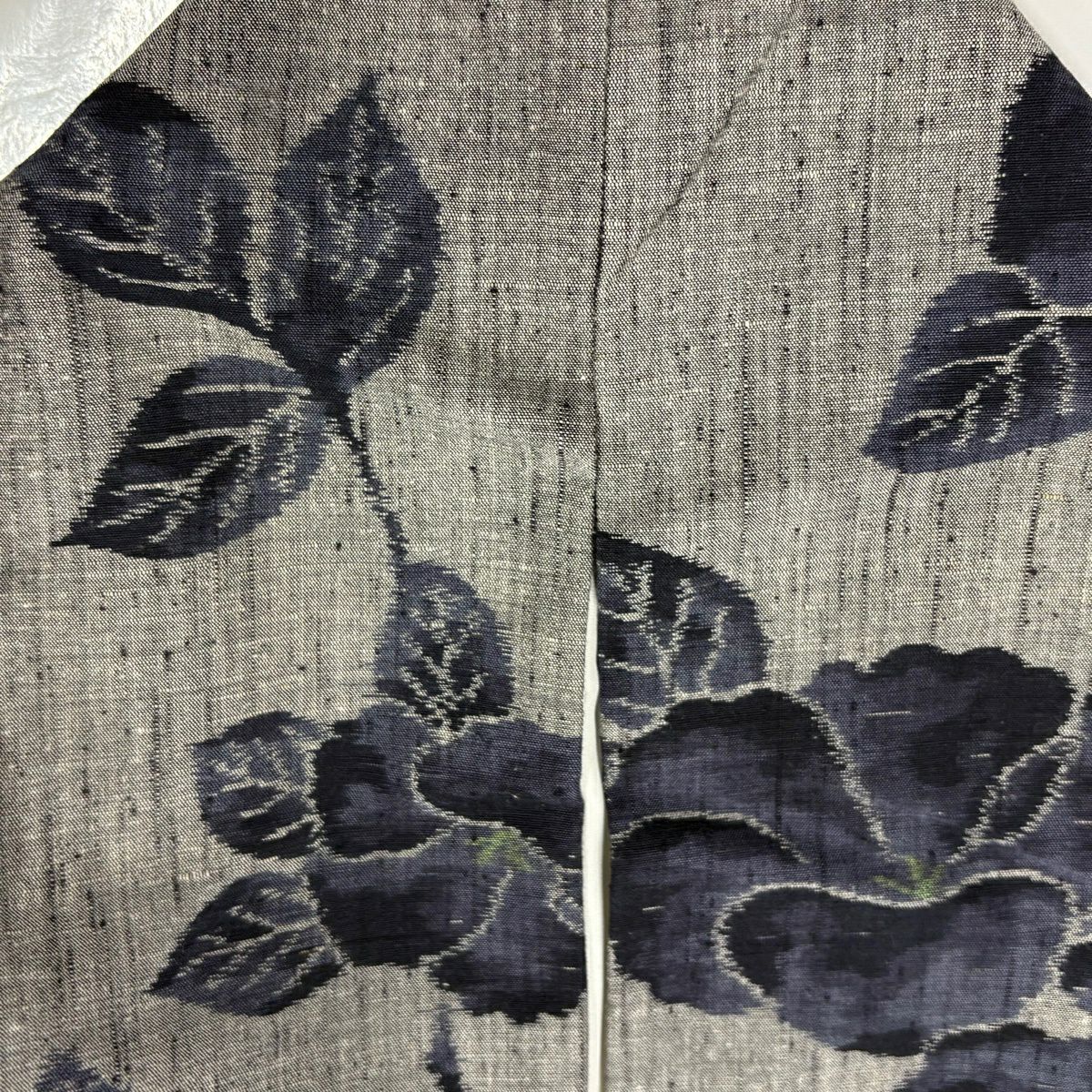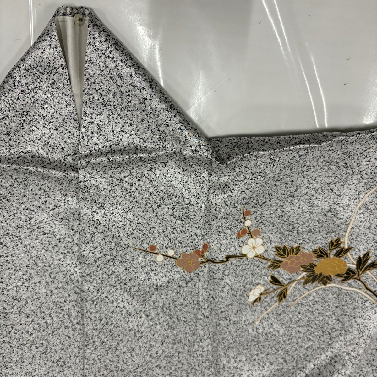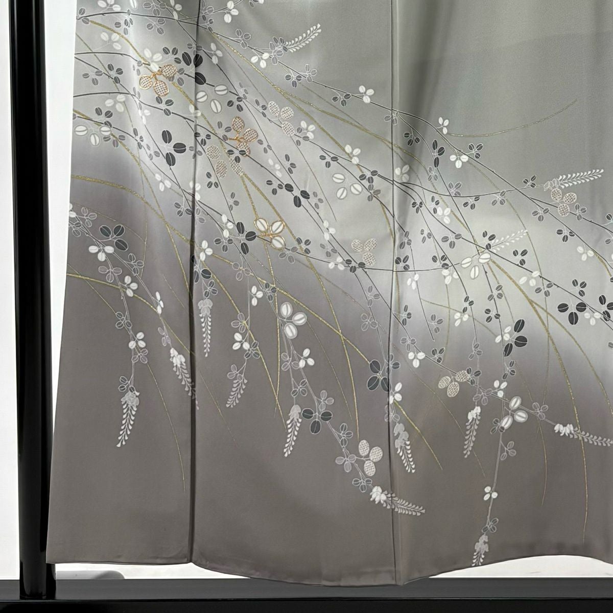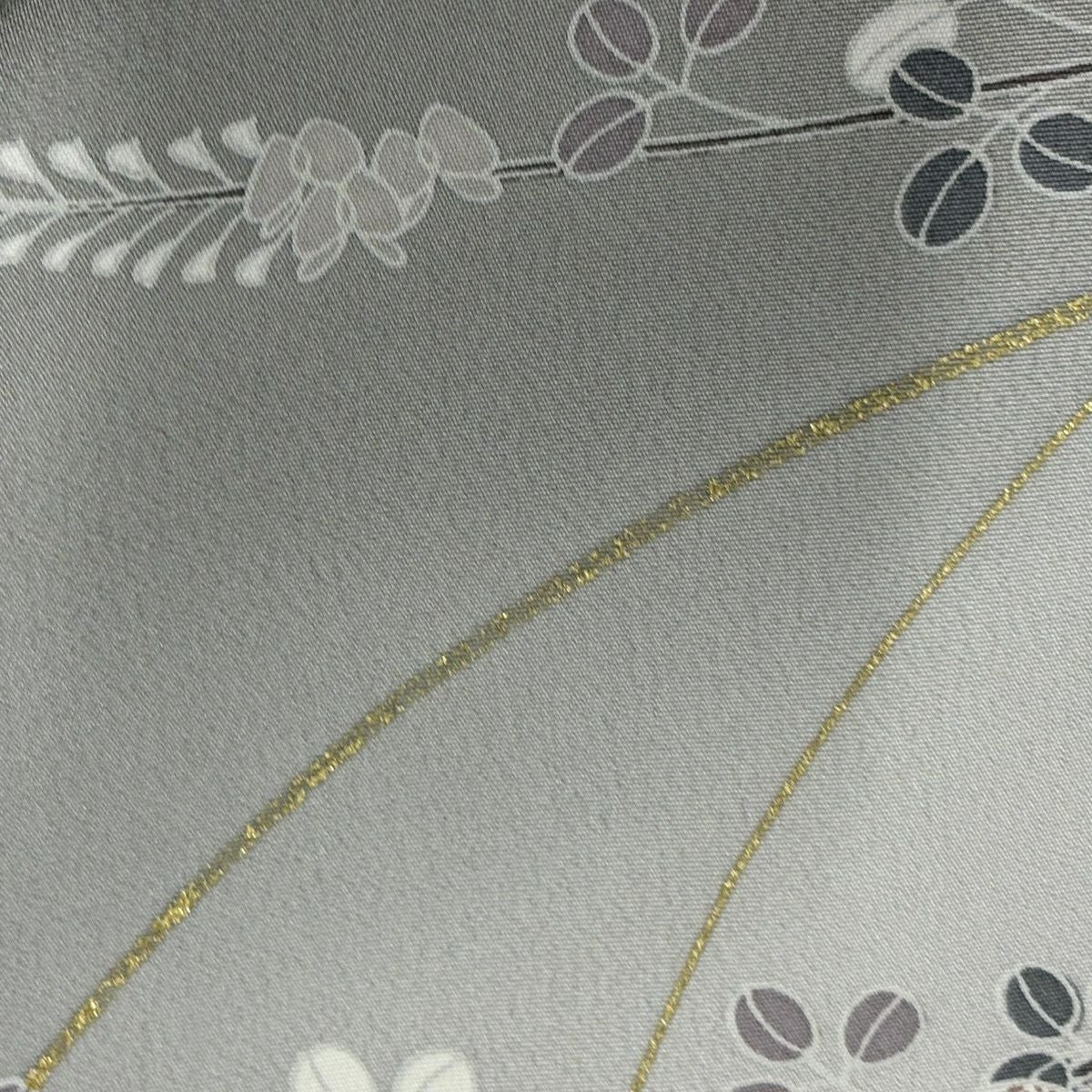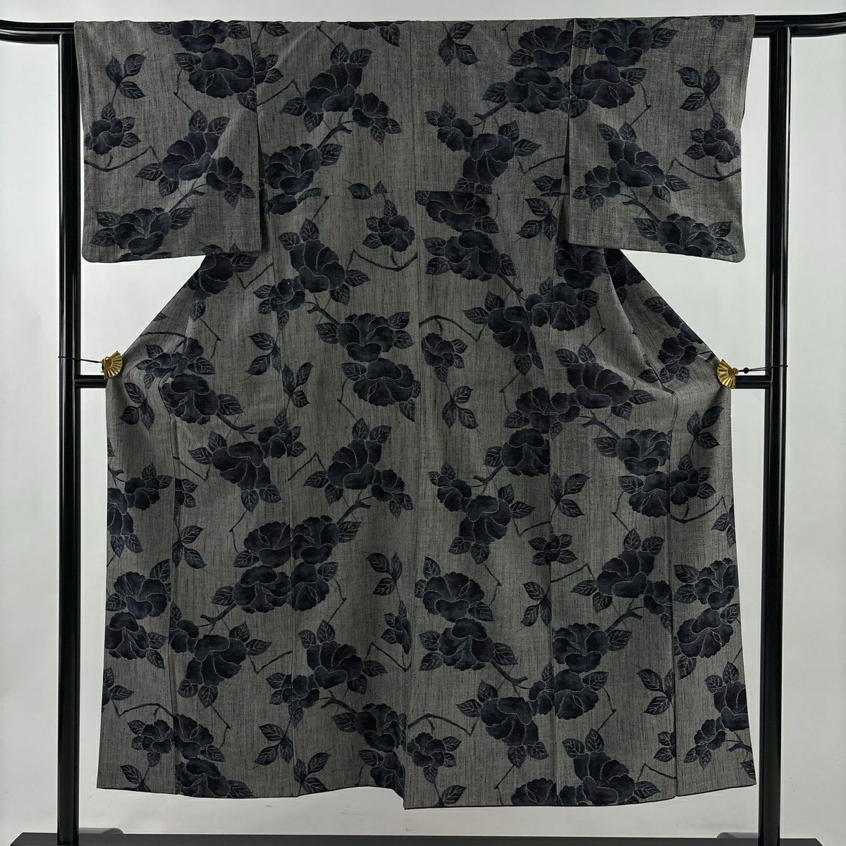 【美品】 紬 身丈158.5cm 裄丈62.5cm S 袷 草花 灰色 正絹 秀品