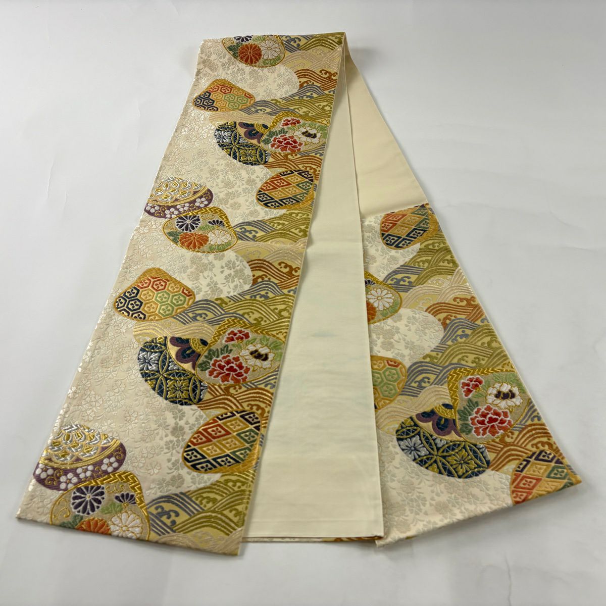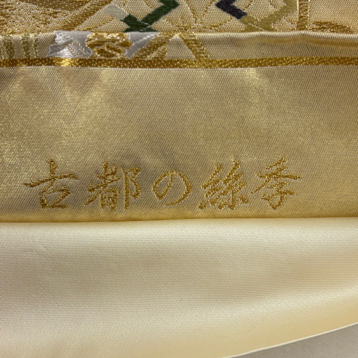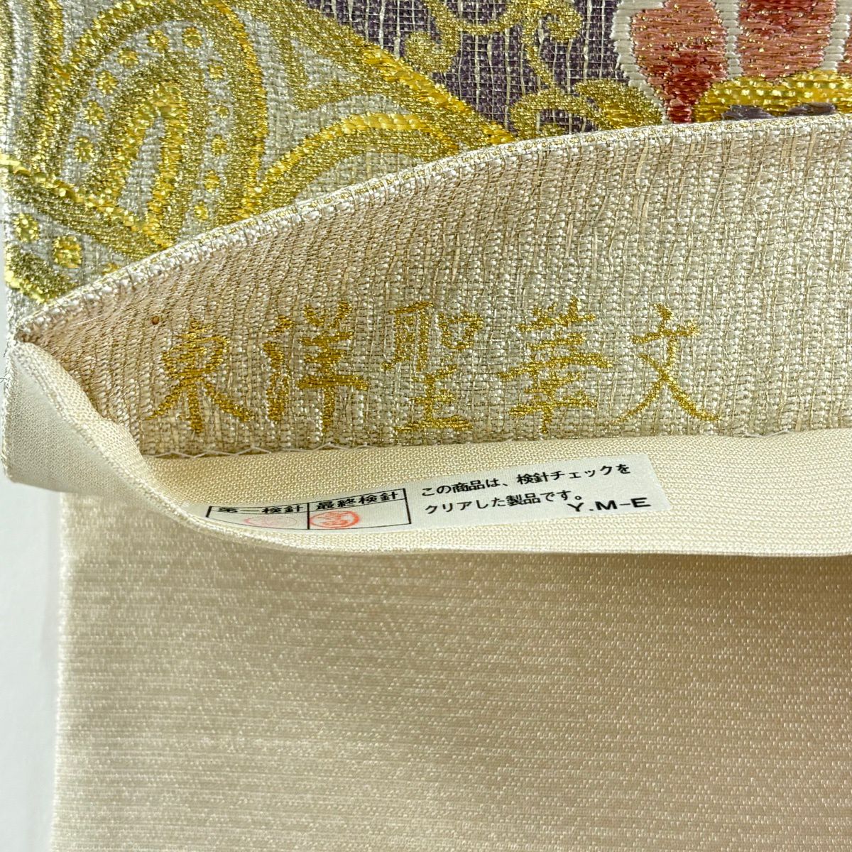 【美品】 袋帯 秀品 落款あり 東洋聖華文 金銀糸 箔 クリーム 六通 正絹