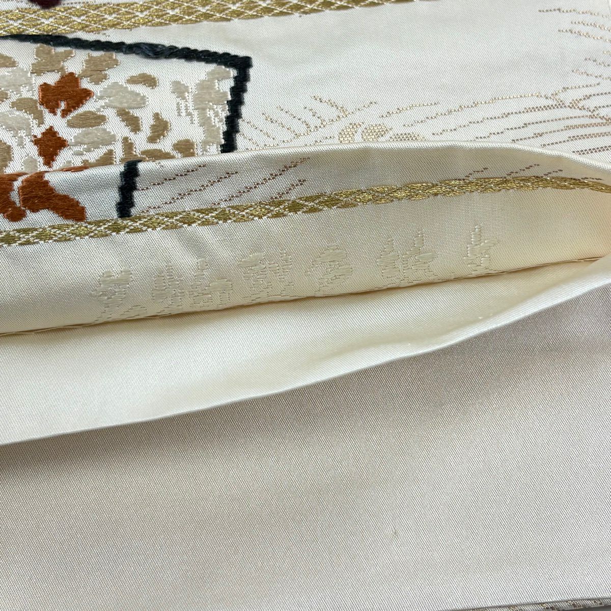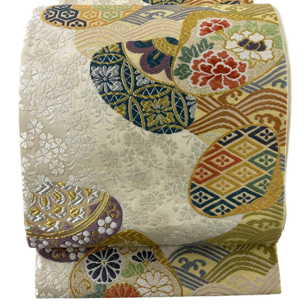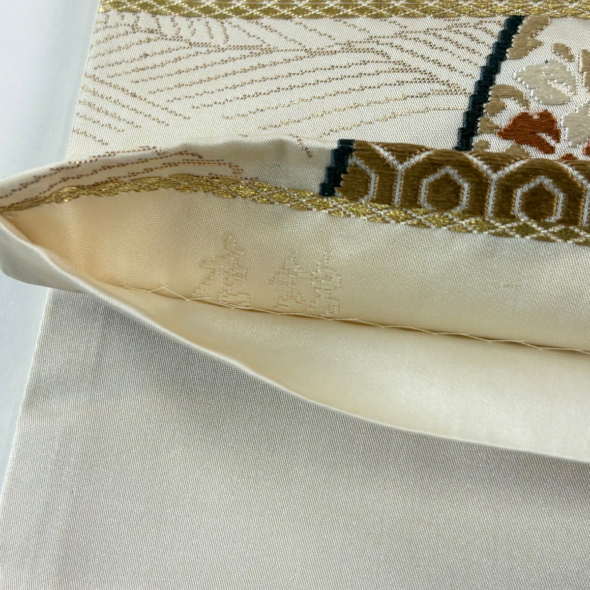 【美品】 袋帯 秀品 落款あり 東洋聖華文 金銀糸 箔 クリーム 六通 正絹