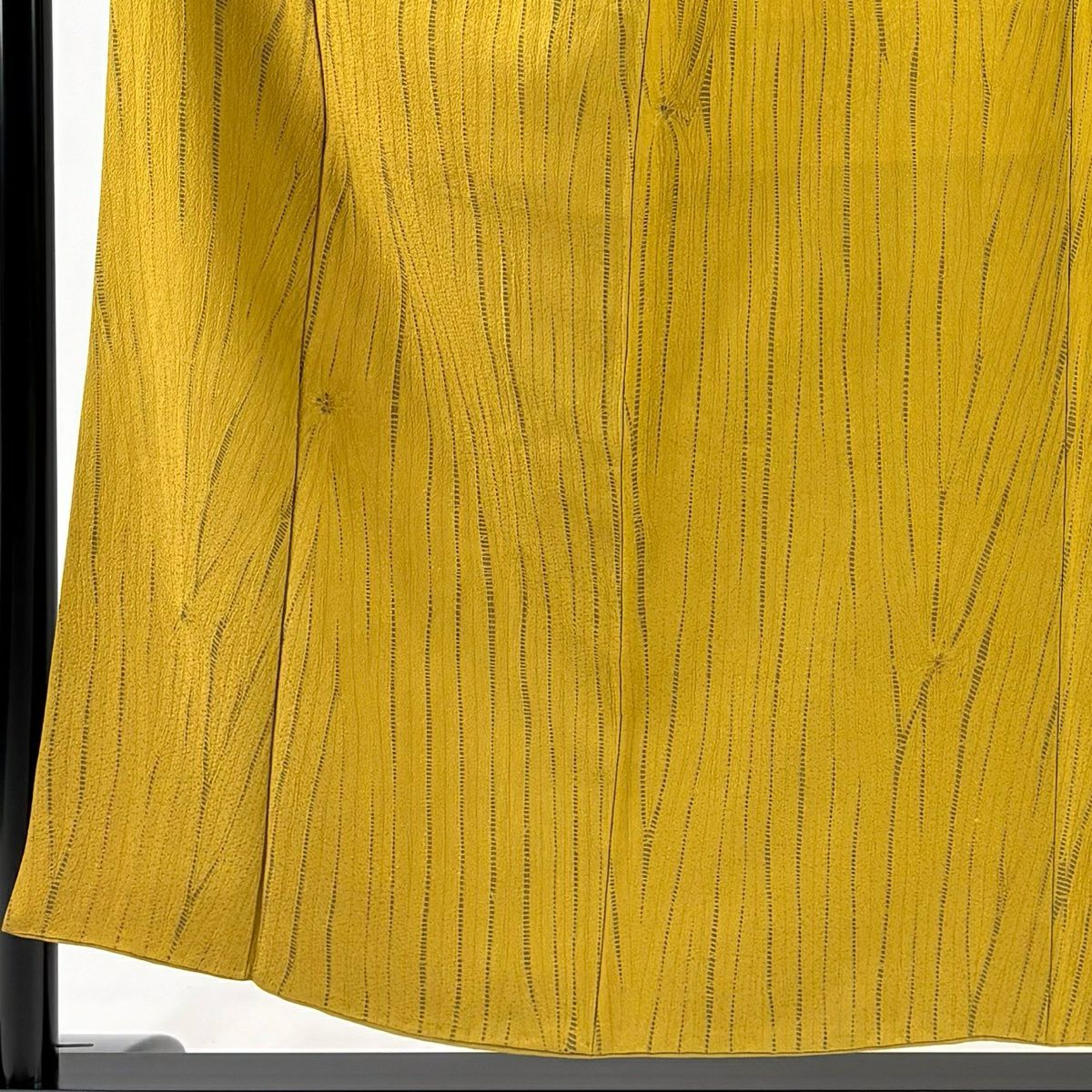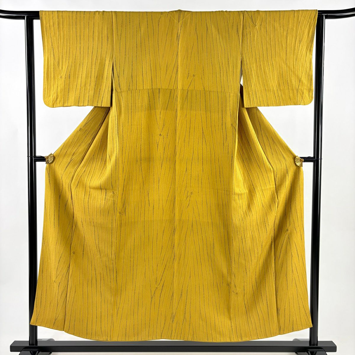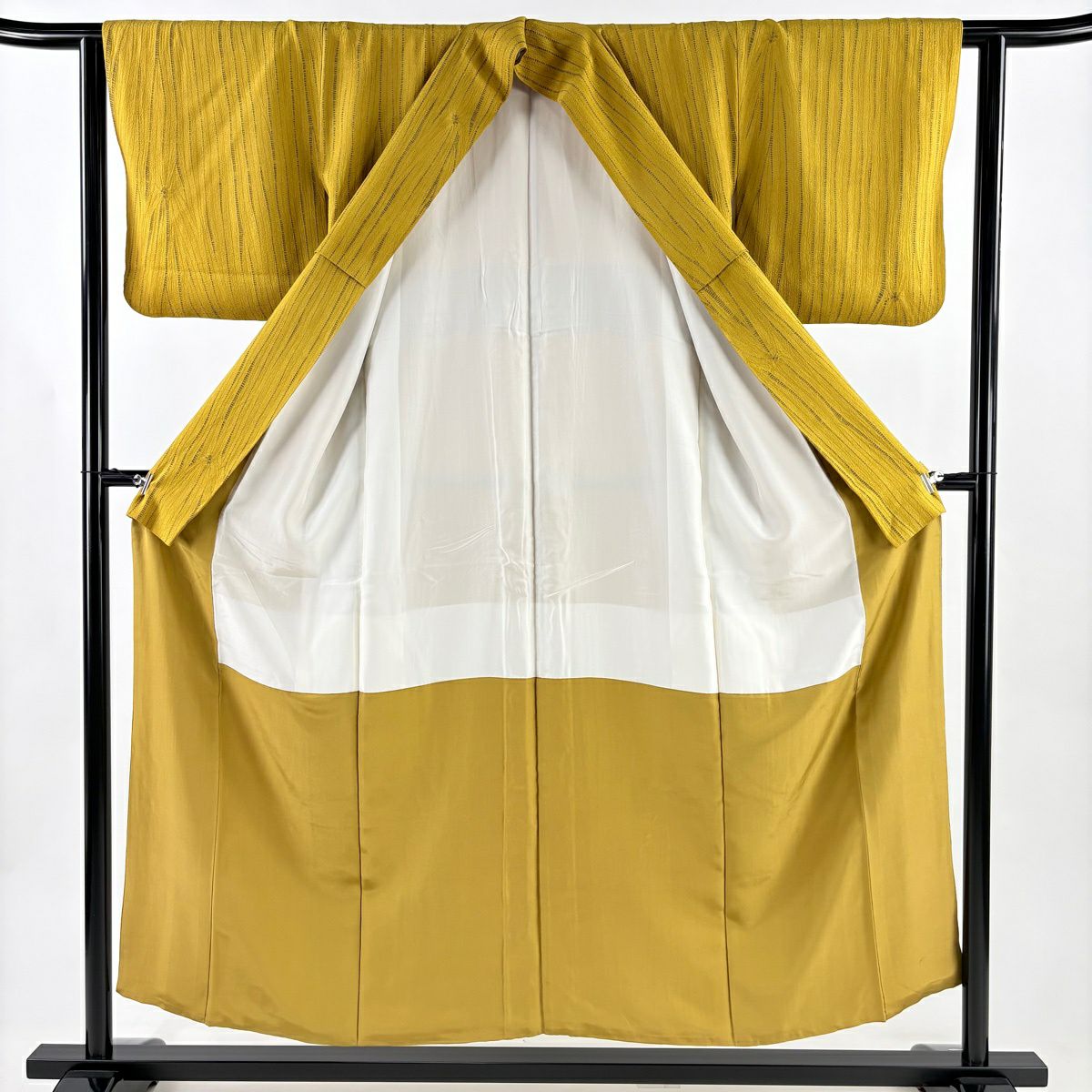 小紋 身丈153.5cm 裄丈61.5cm S 袷 幾何学模様 黄土色 正絹 秀品