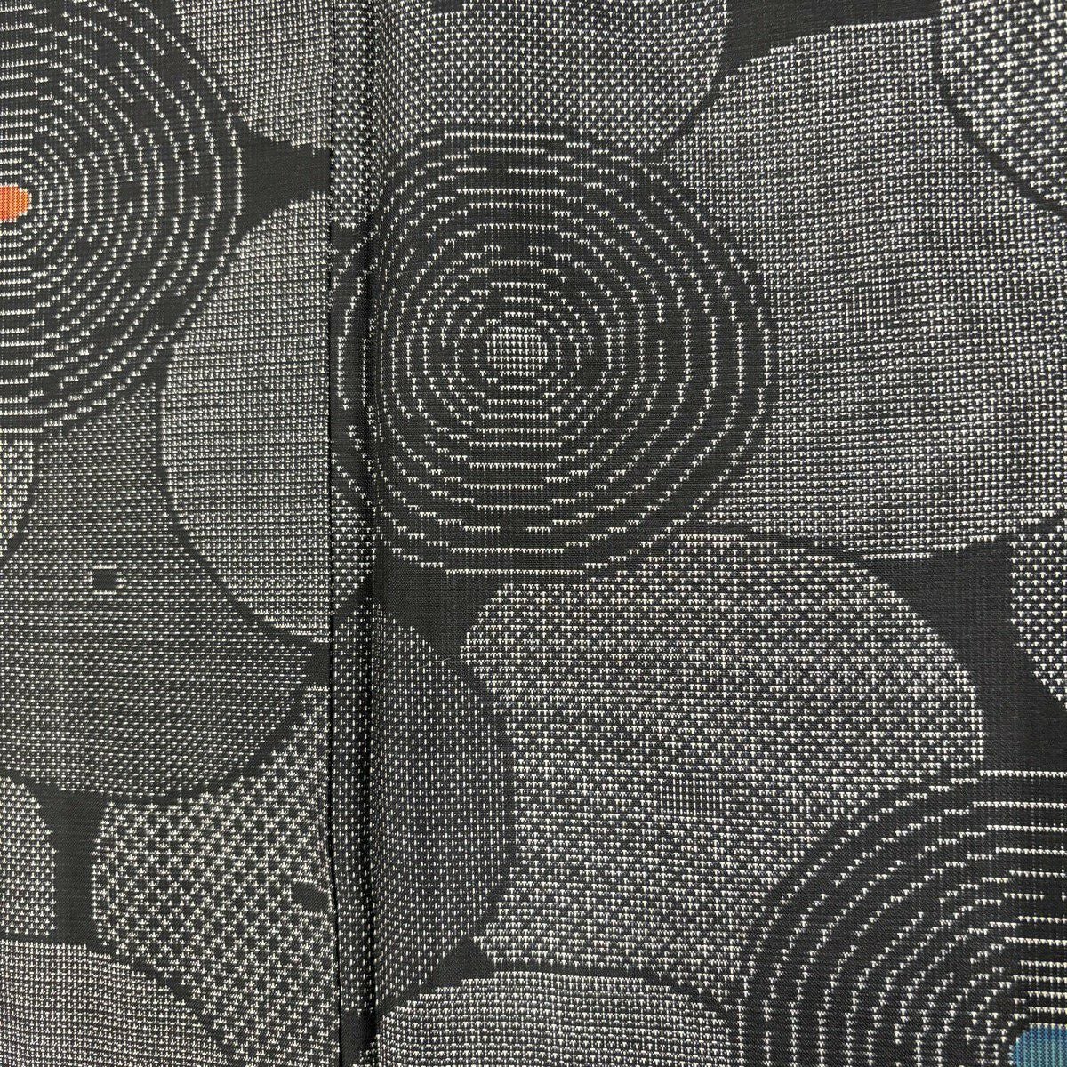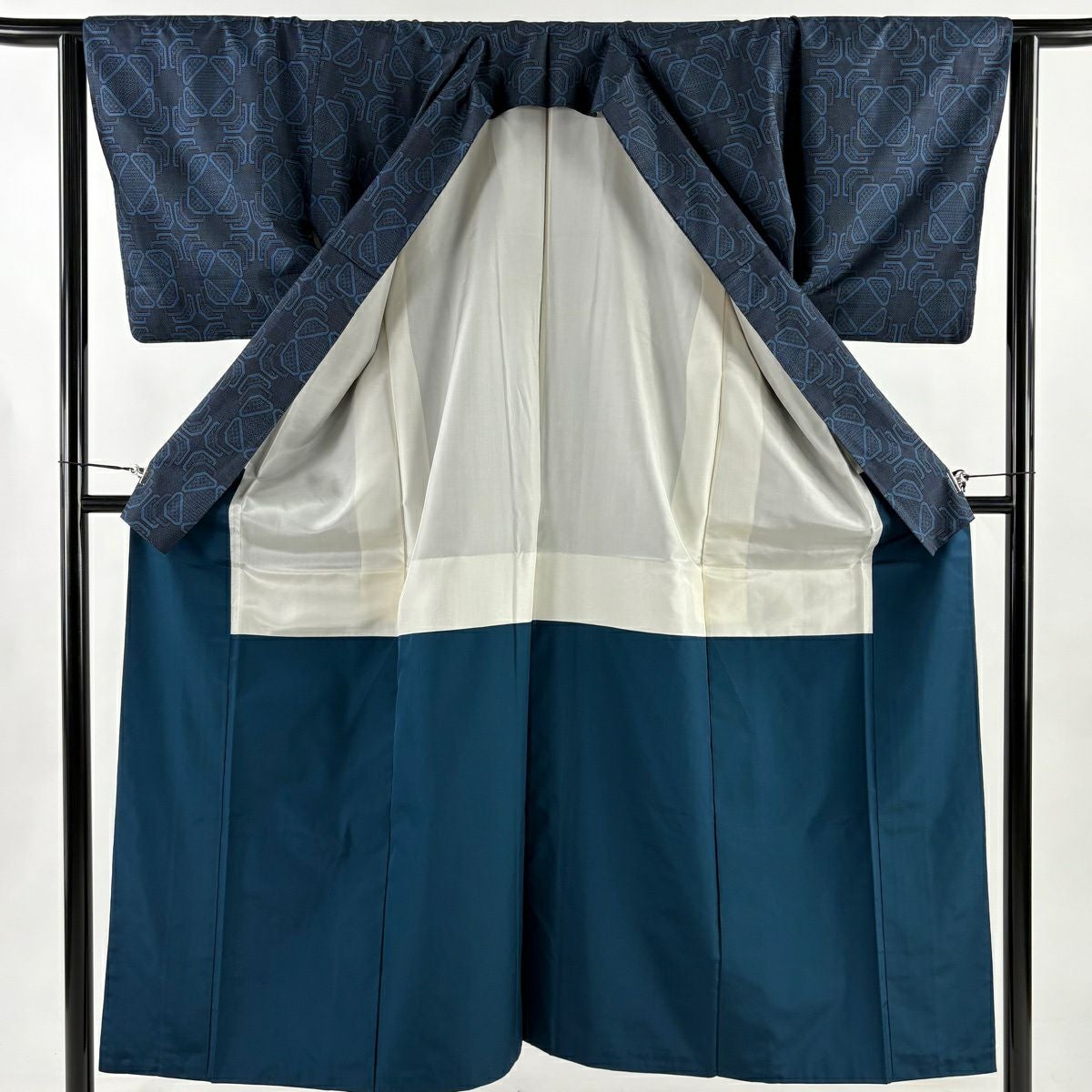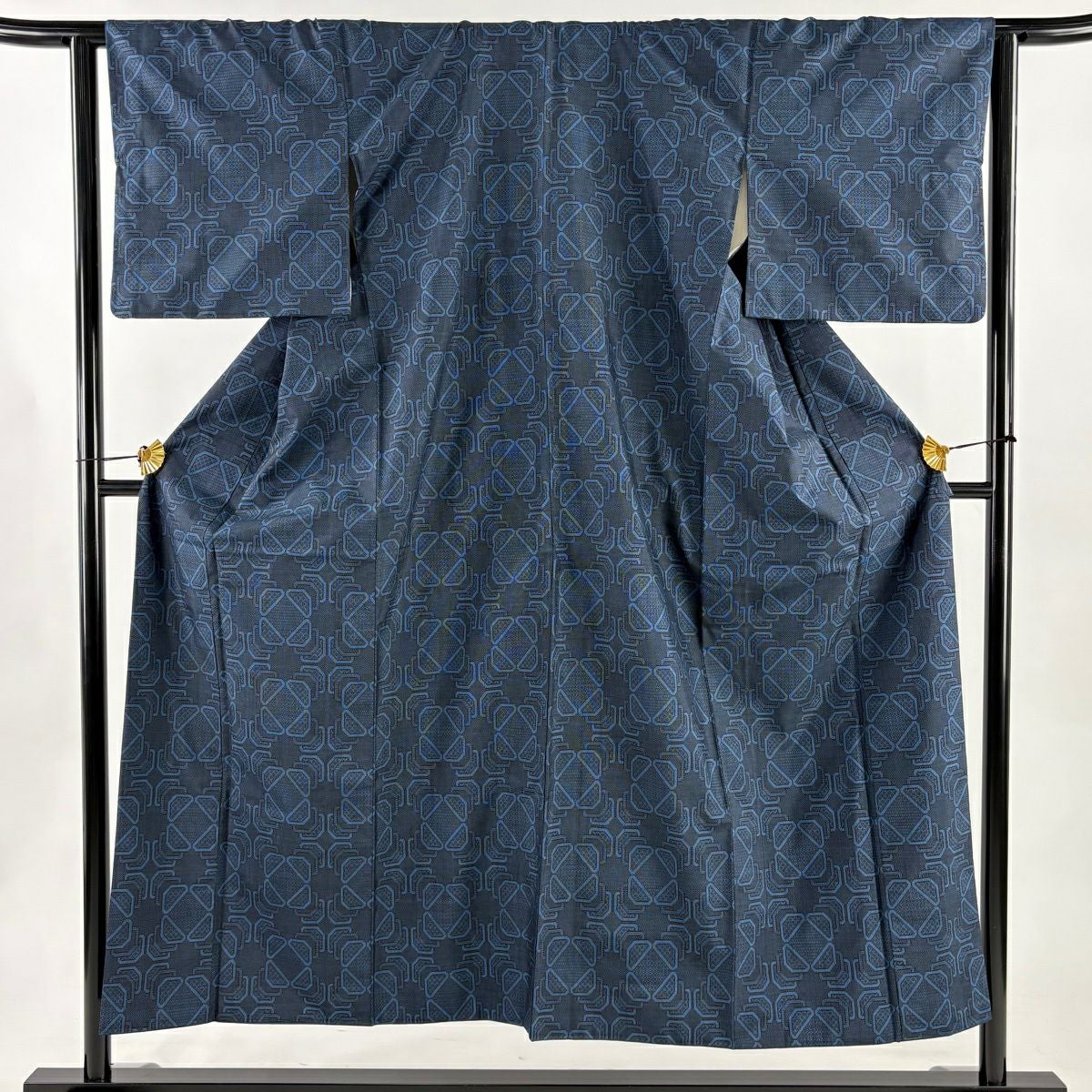 紬 身丈156.5cm 裄丈62cm S 袷 丸文 斜め格子 黒灰 正絹 秀品