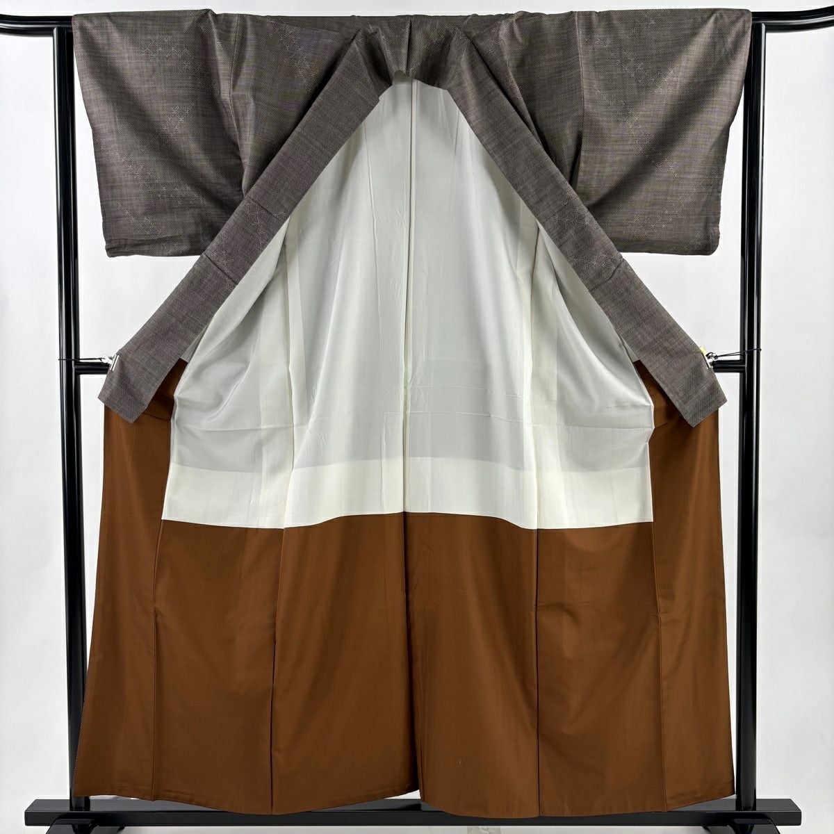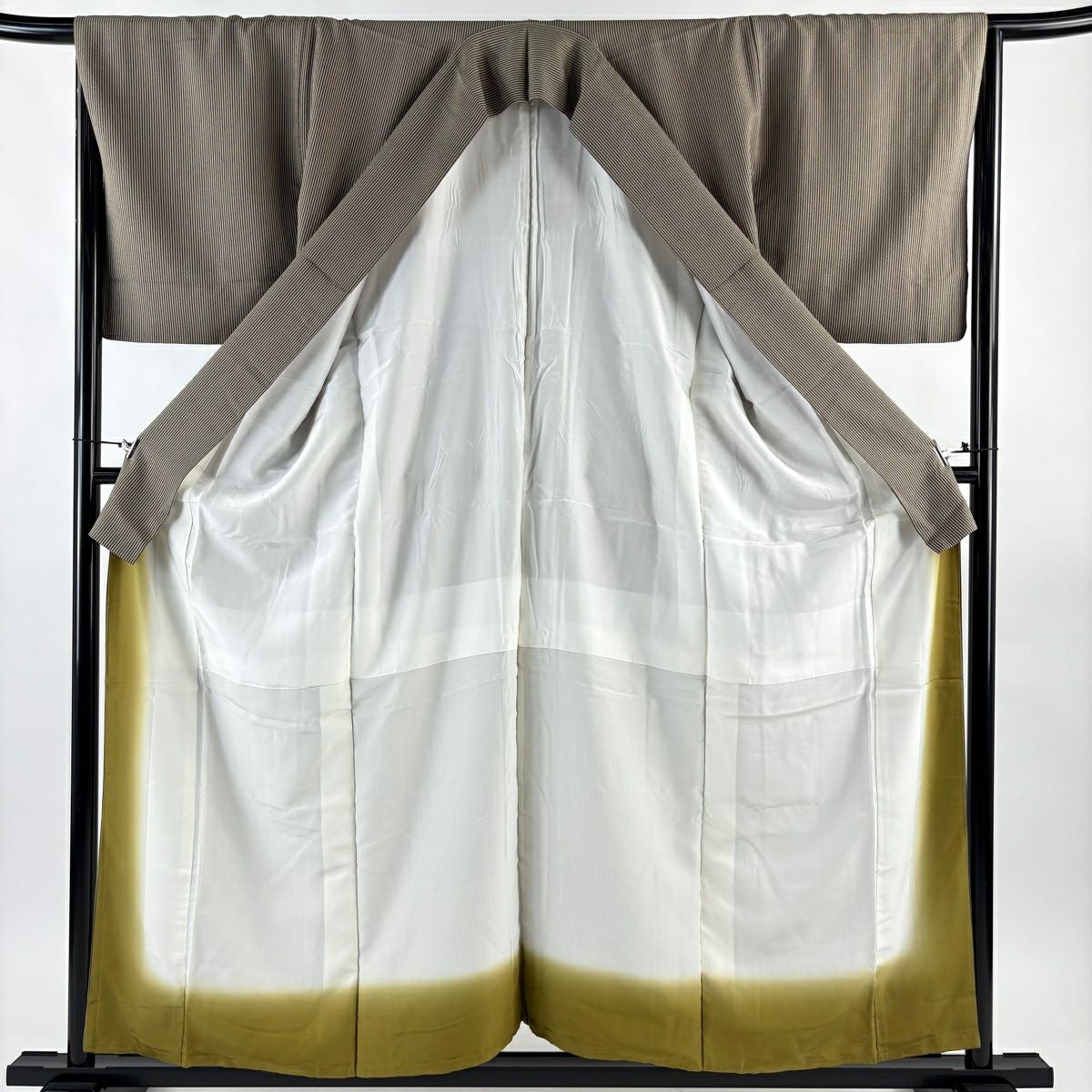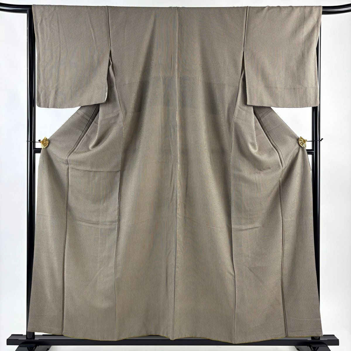【美品】 小紋 身丈156.5cm 裄丈66.5cm M 袷 縦縞 灰茶 正絹 秀品