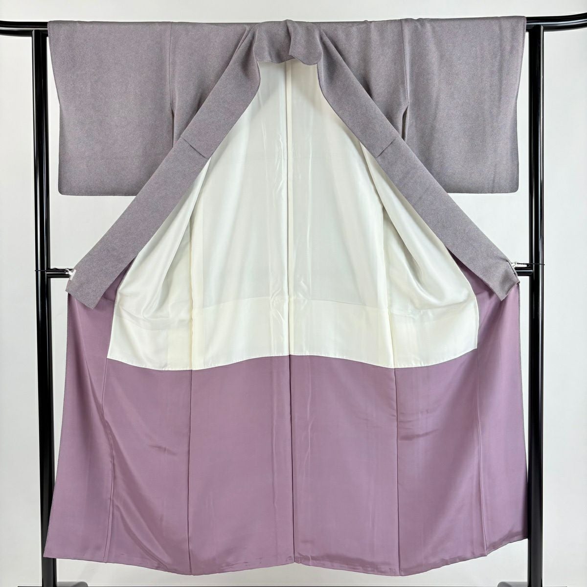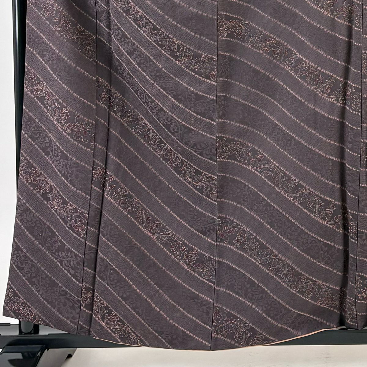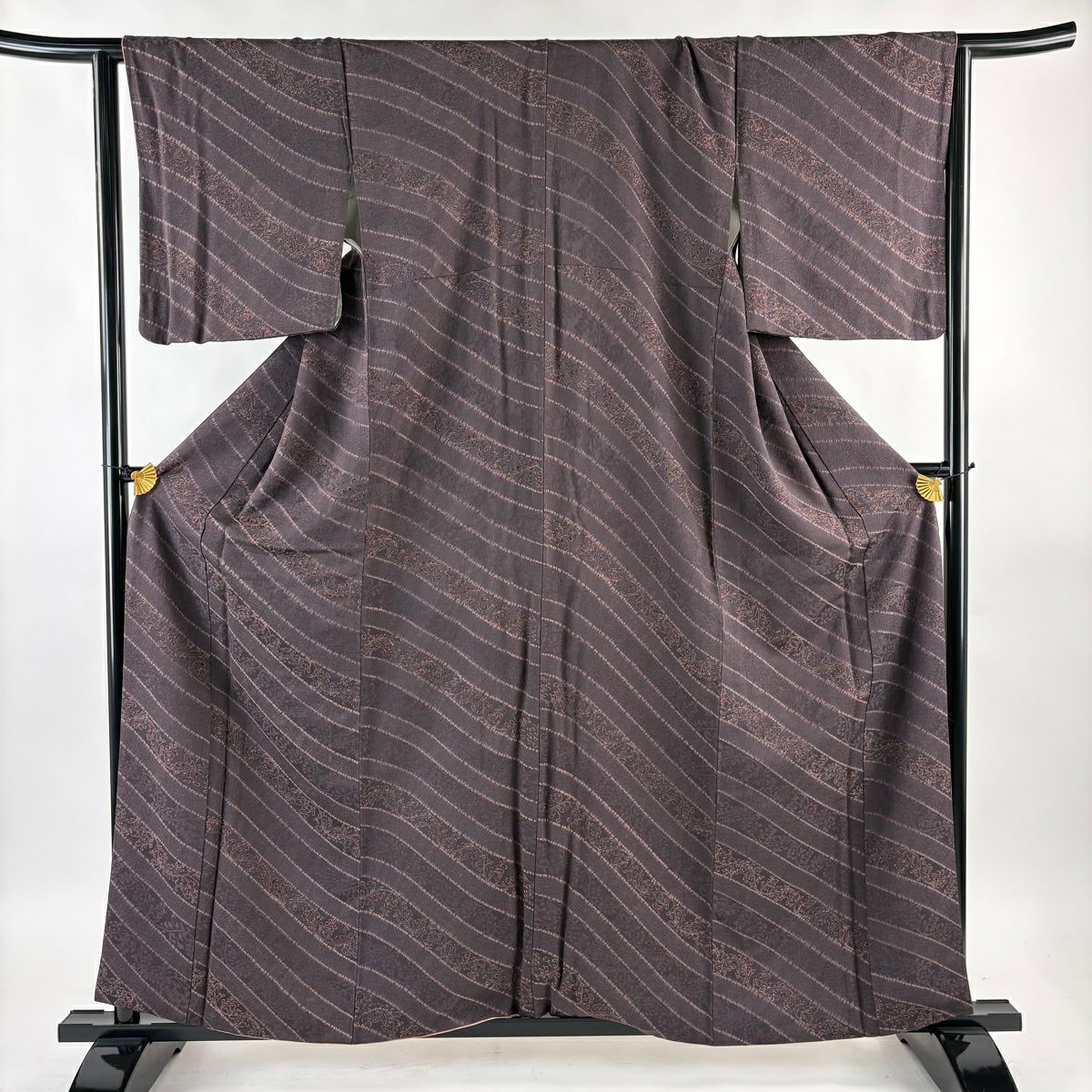 【美品】 小紋 身丈156.5cm 裄丈66.5cm M 袷 縦縞 灰茶 正絹 秀品