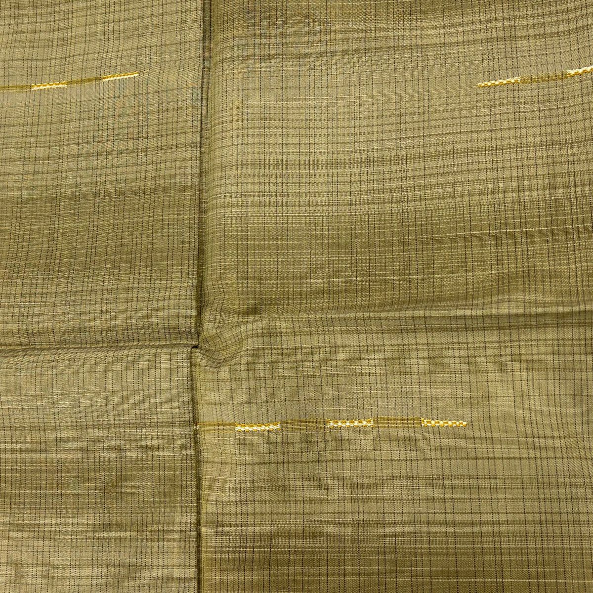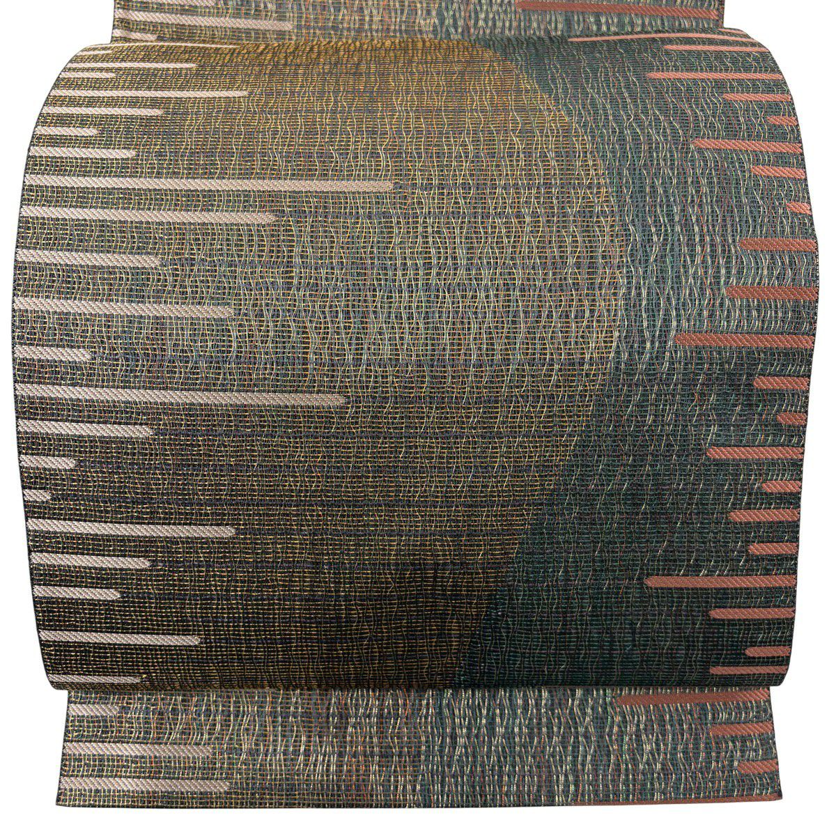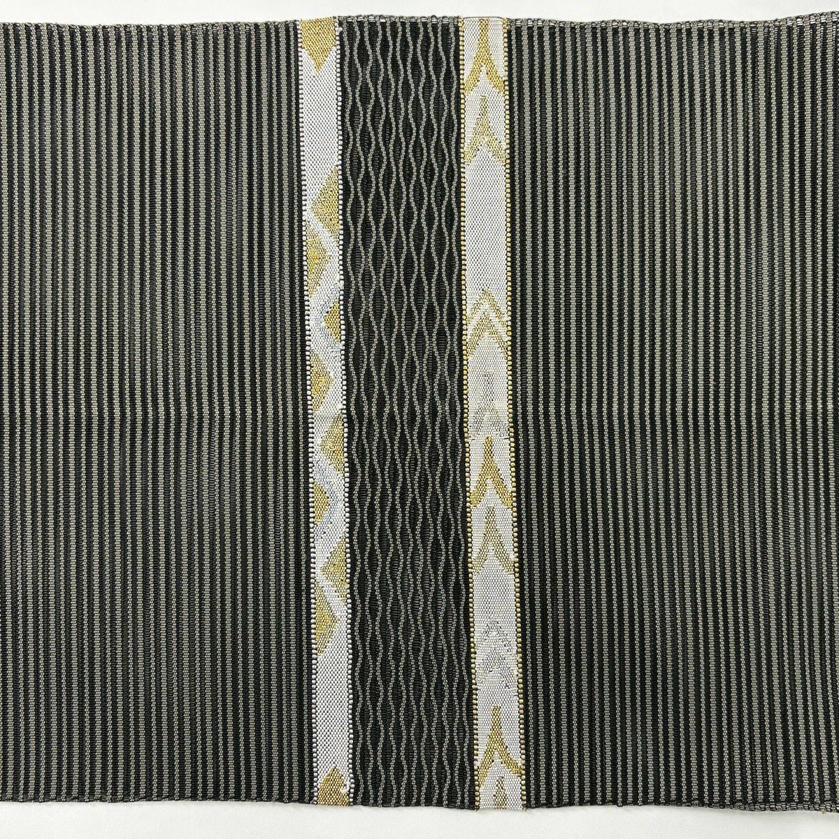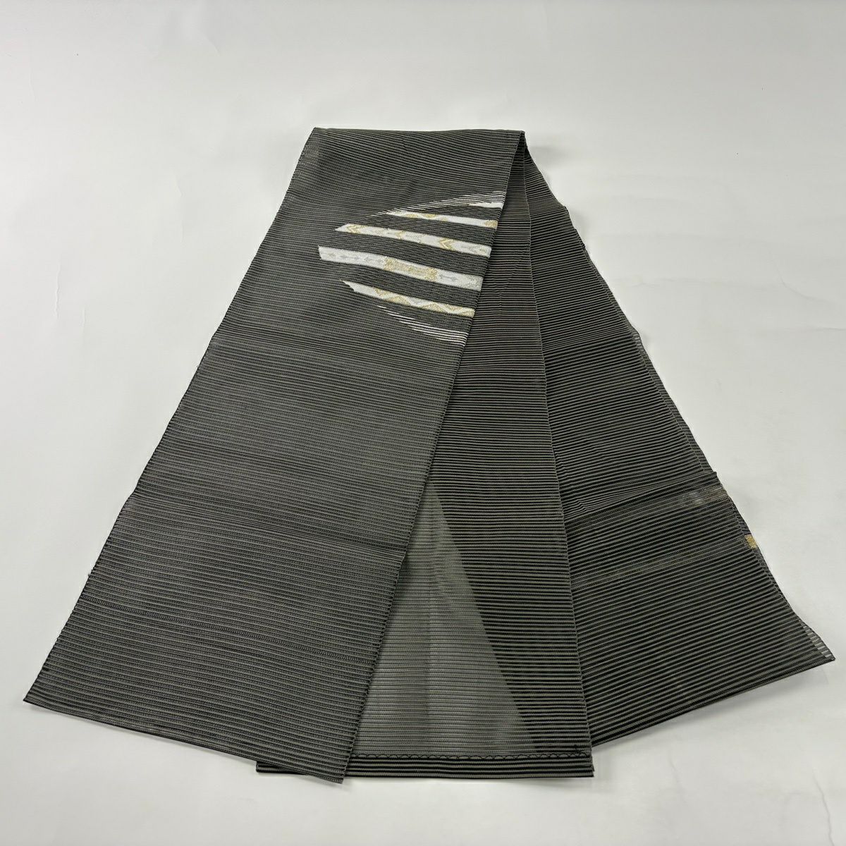 【美品】 名古屋帯 秀品 八寸名古屋帯 松葉仕立て 霞 よろけ縞 金糸 深緑 正絹