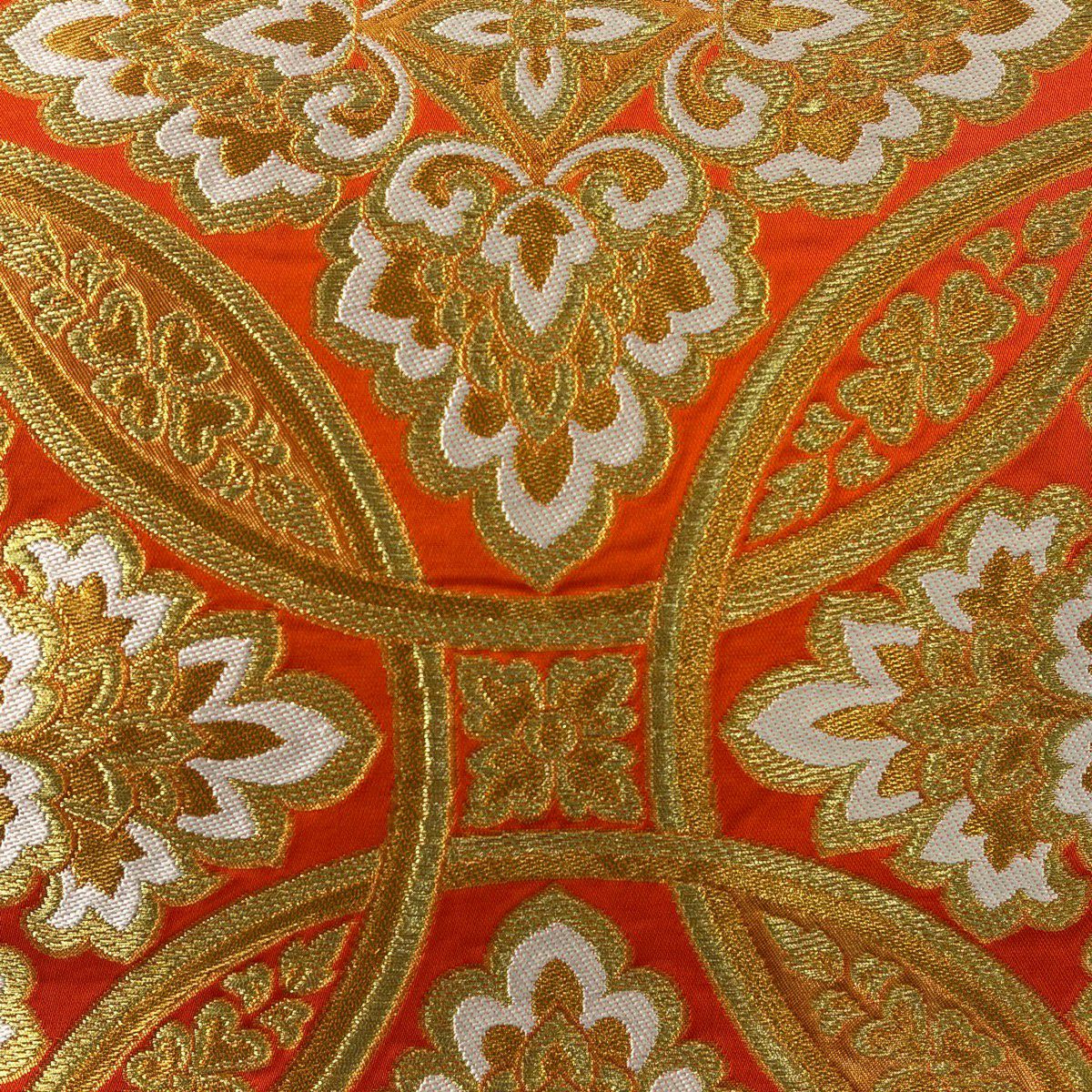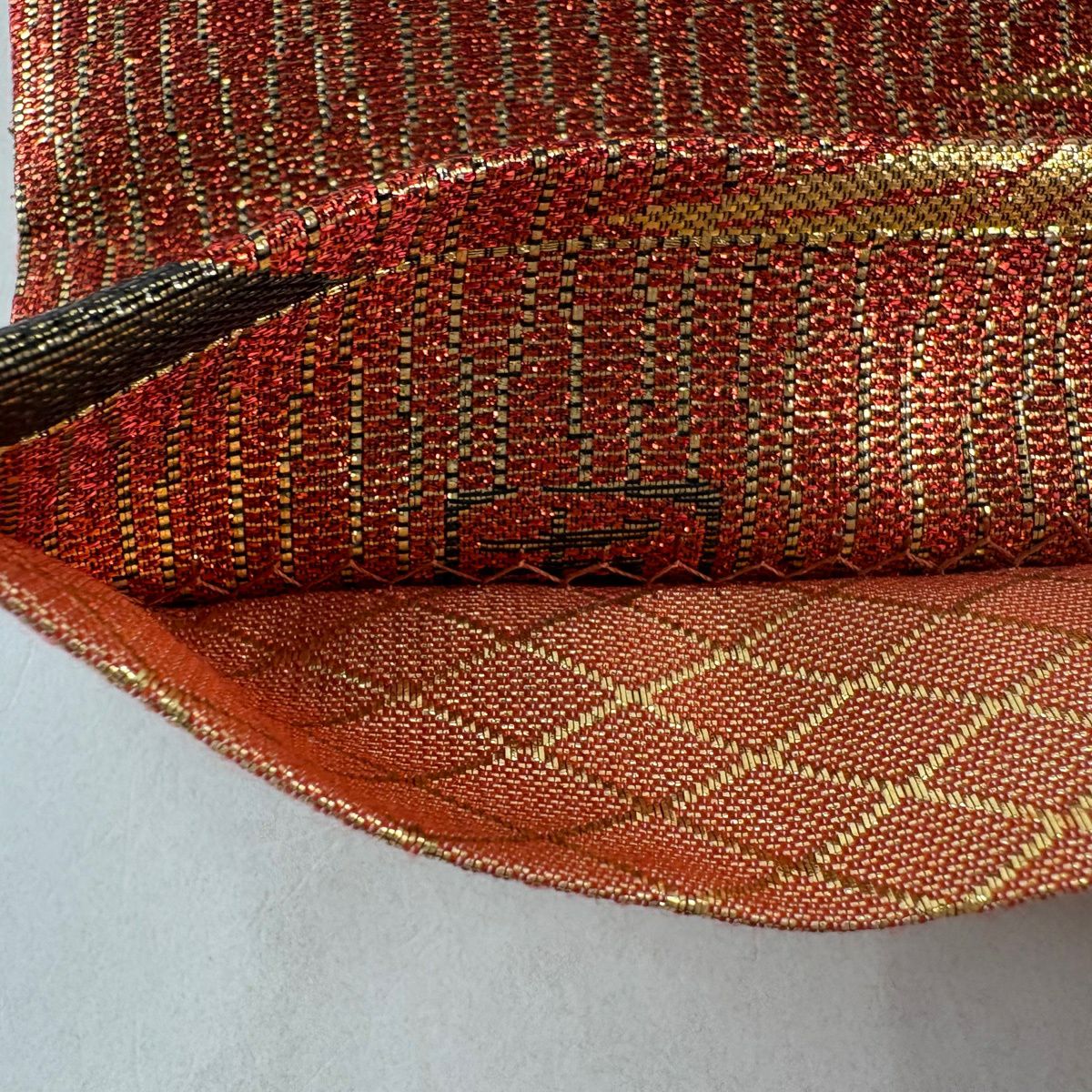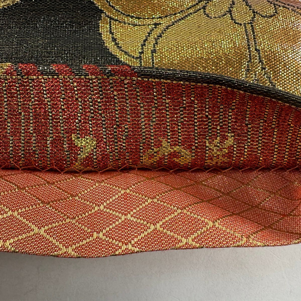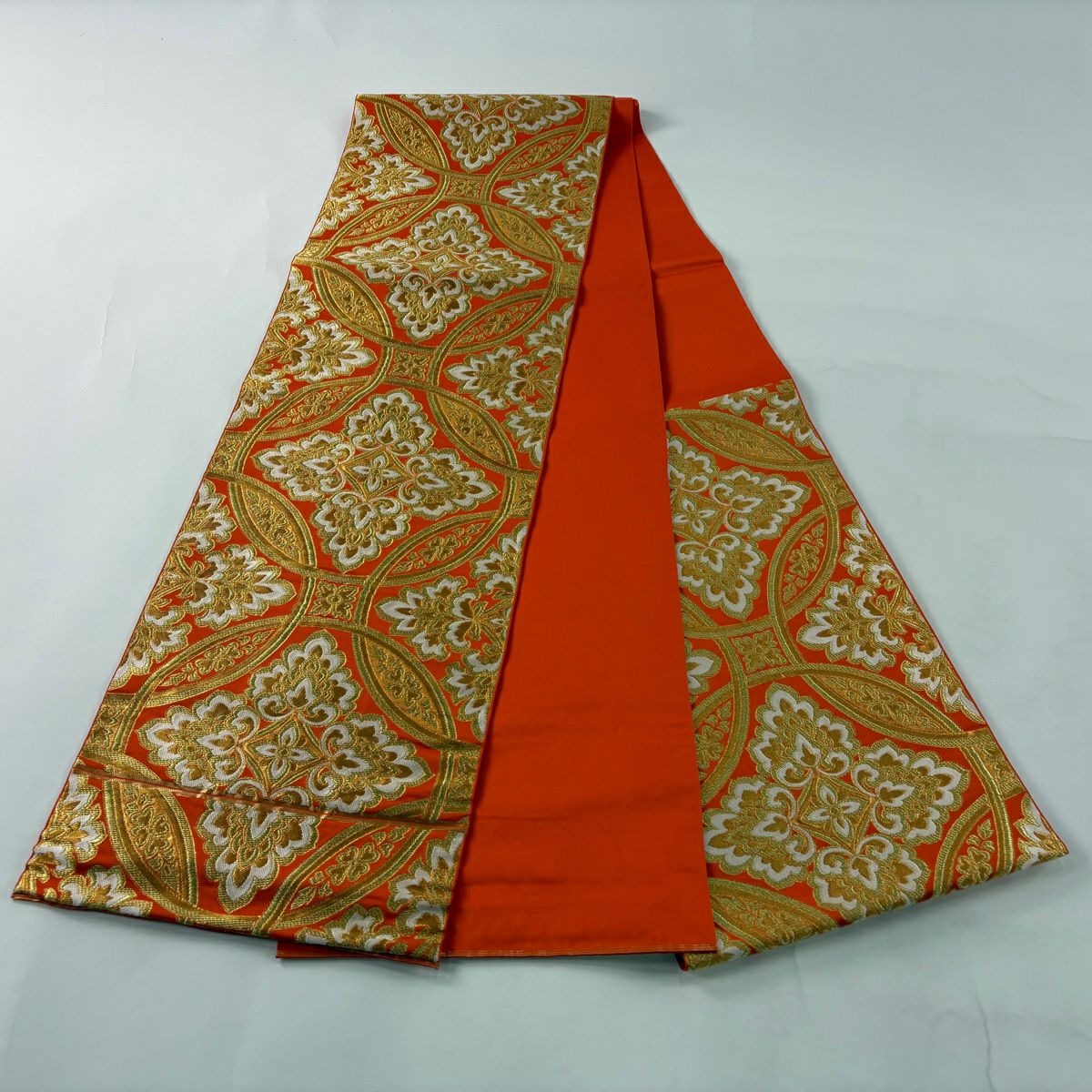 【美品】 袋帯 秀品 落款あり 振袖向き 草花 金銀糸 箔 朱色 六通 正絹
