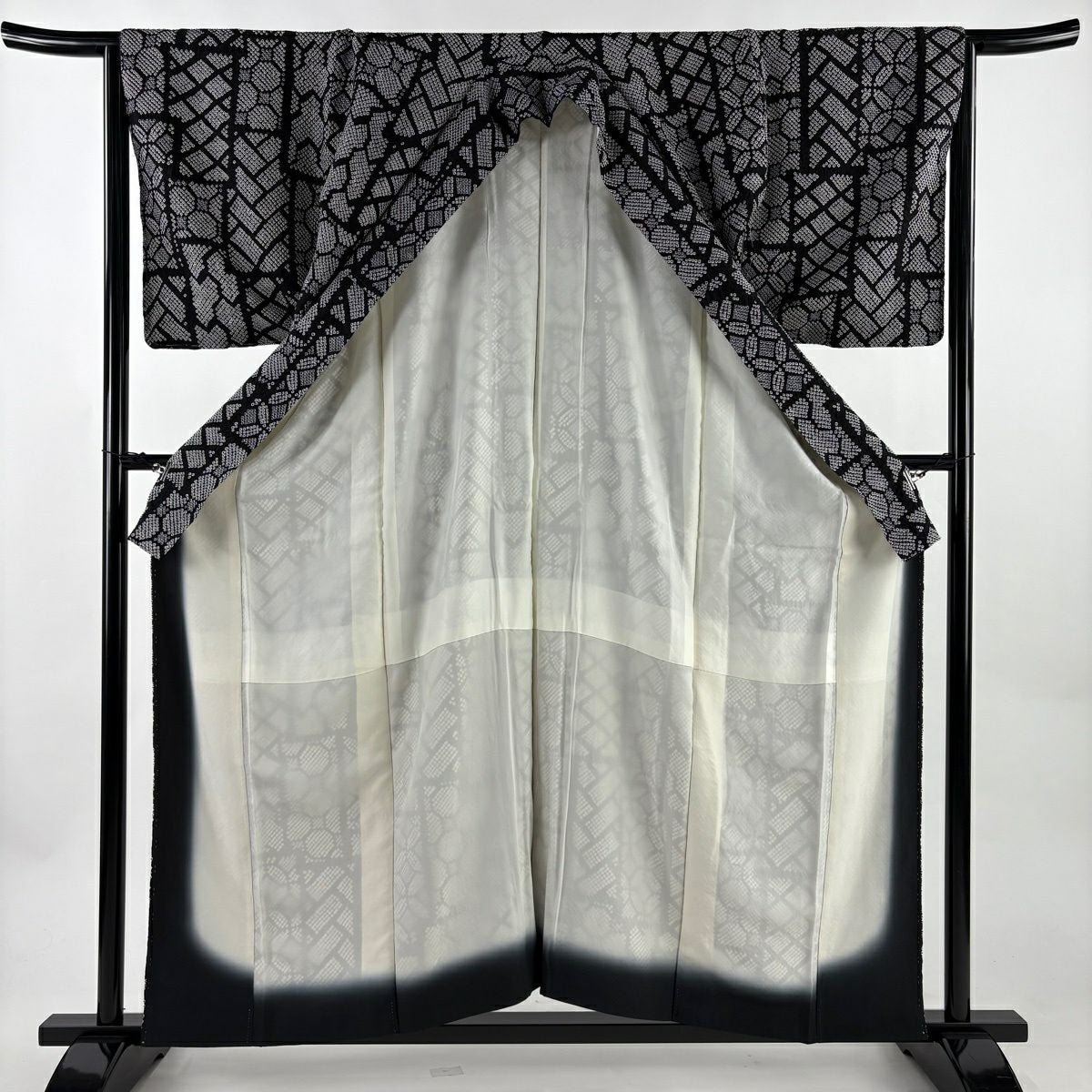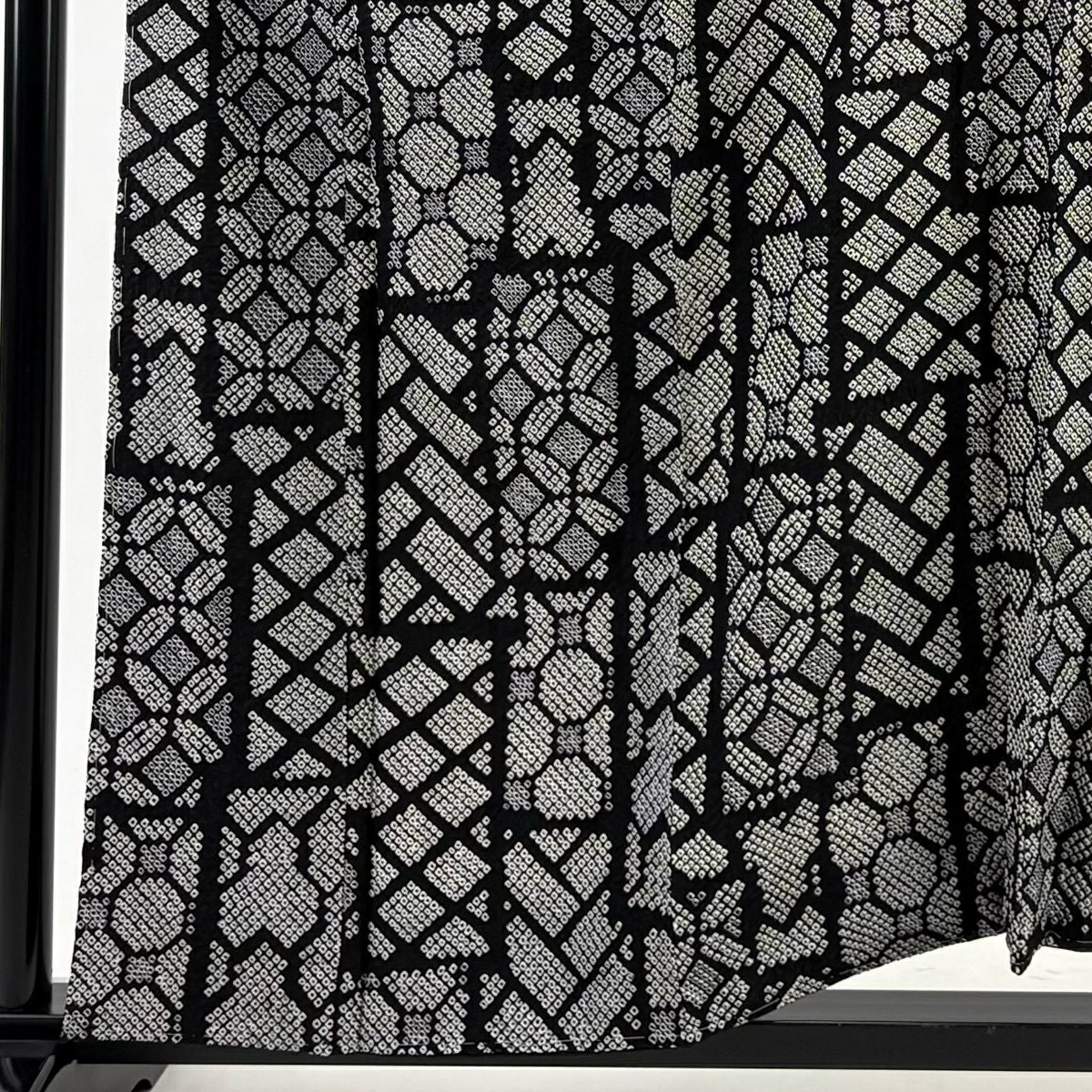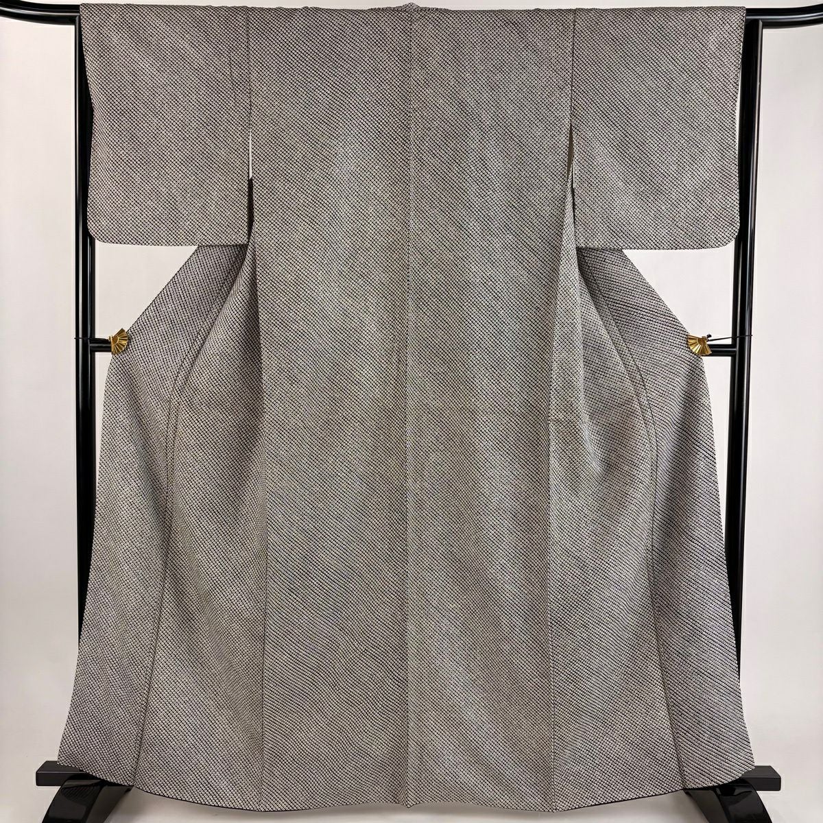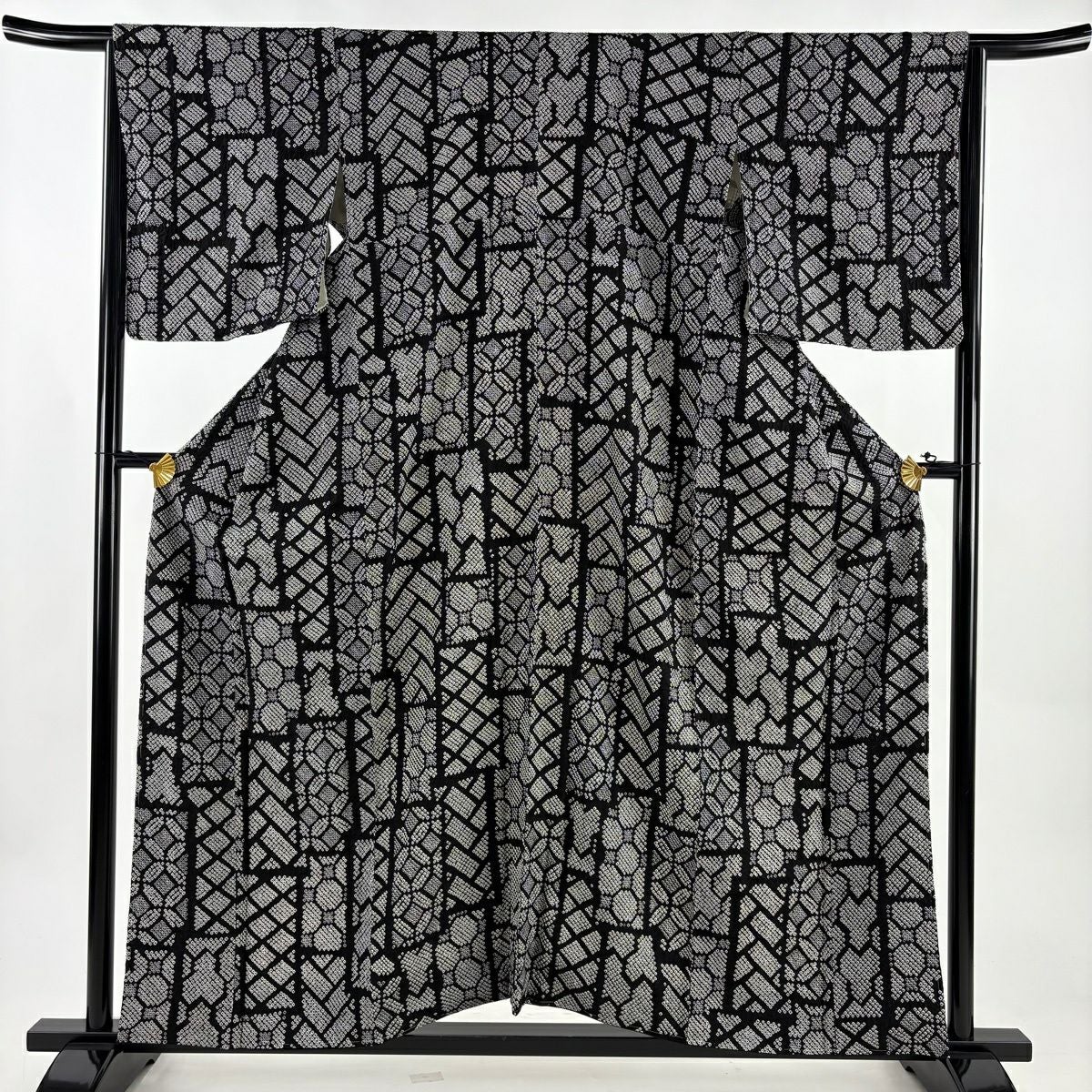 小紋 身丈162.5cm 裄丈64.5cm M 袷 鹿子 総絞り 黒灰 正絹 秀品