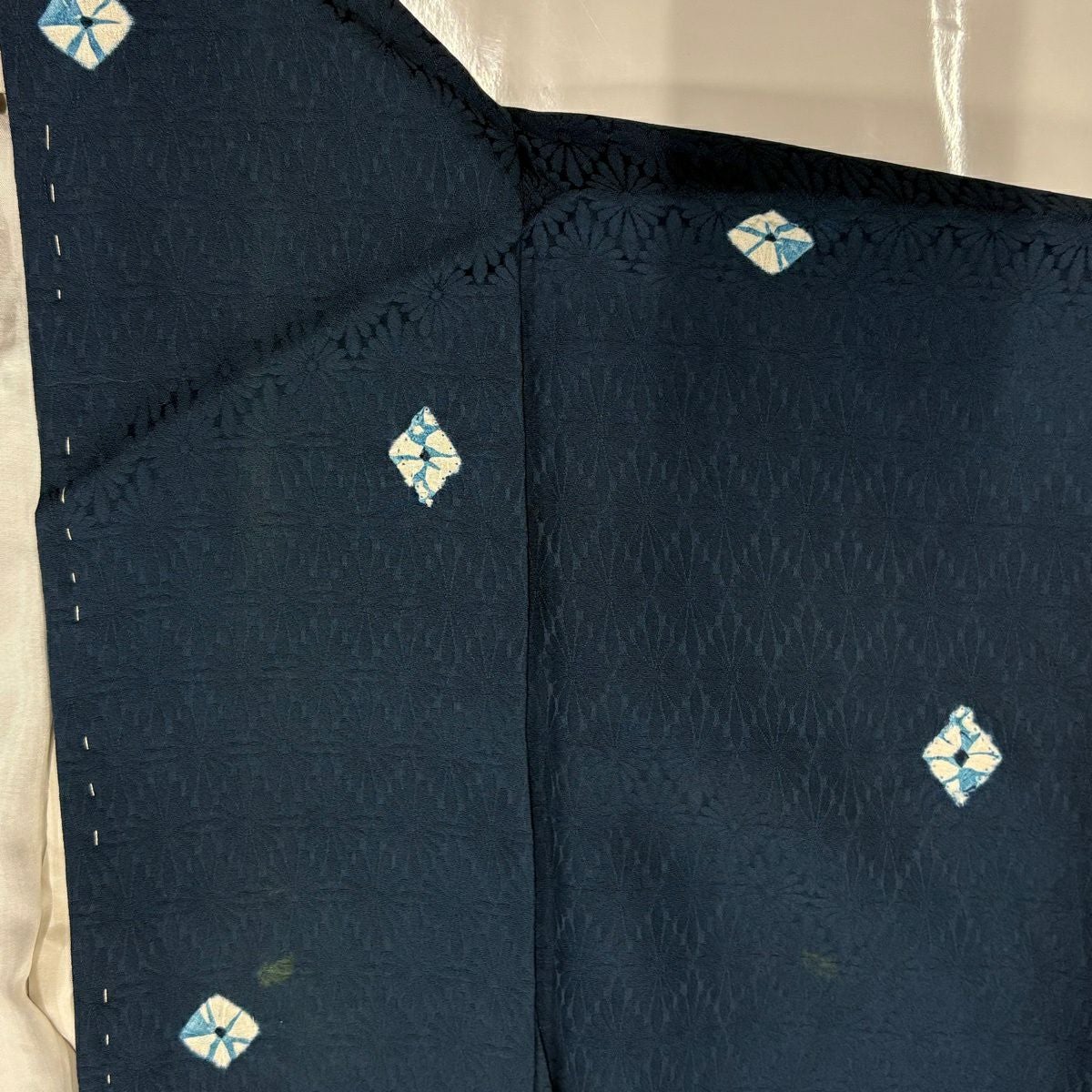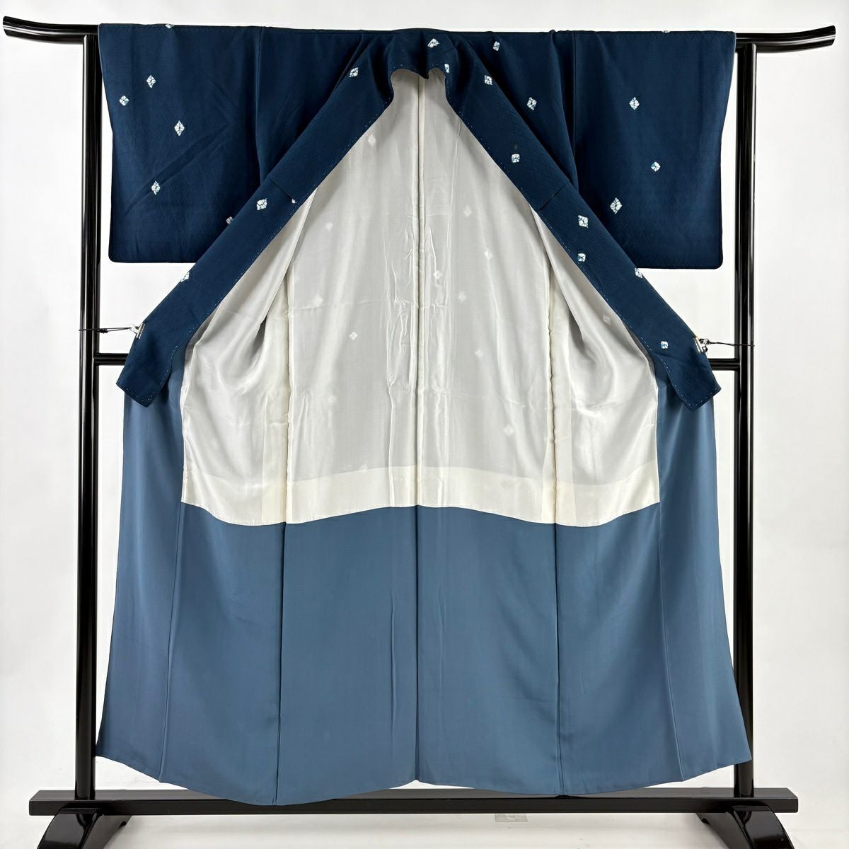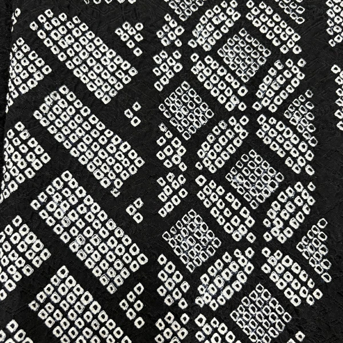 小紋 身丈162.5cm 裄丈64.5cm M 袷 鹿子 総絞り 黒灰 正絹 秀品