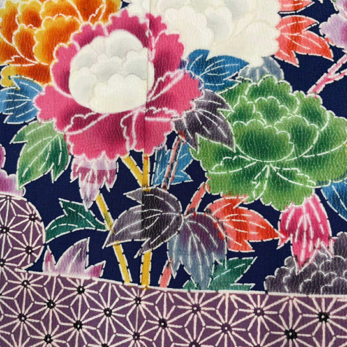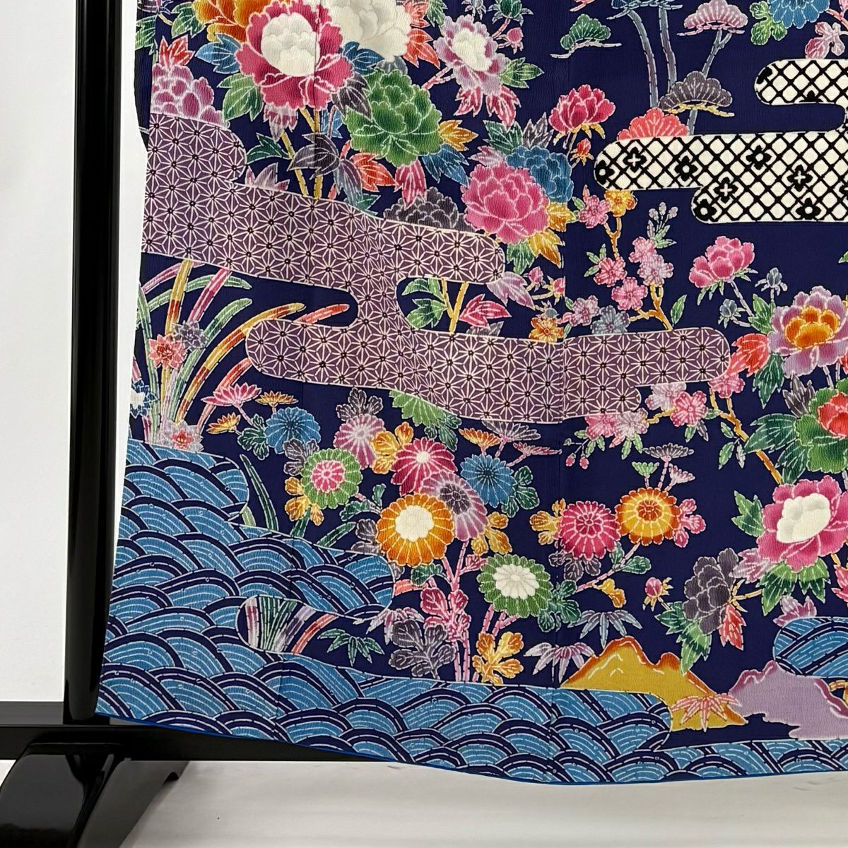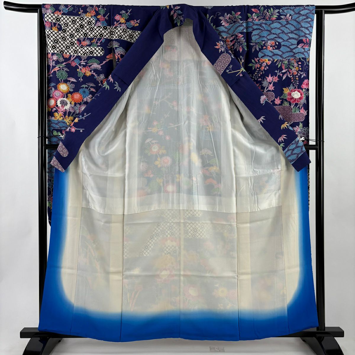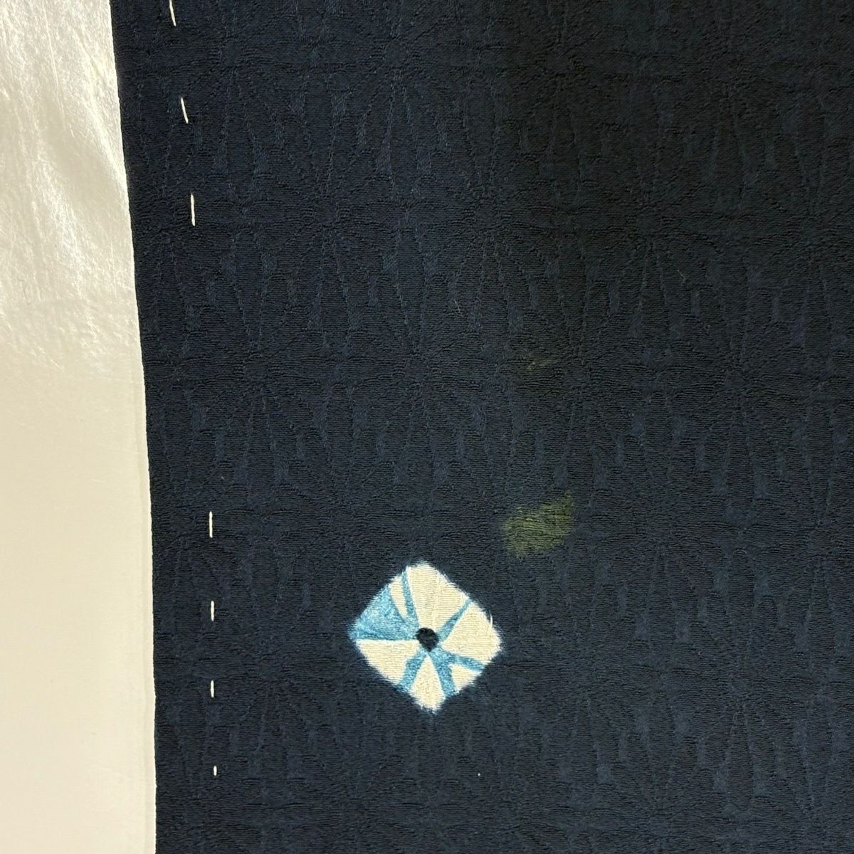 小紋 身丈162.5cm 裄丈64.5cm M 袷 鹿子 総絞り 黒灰 正絹 秀品
