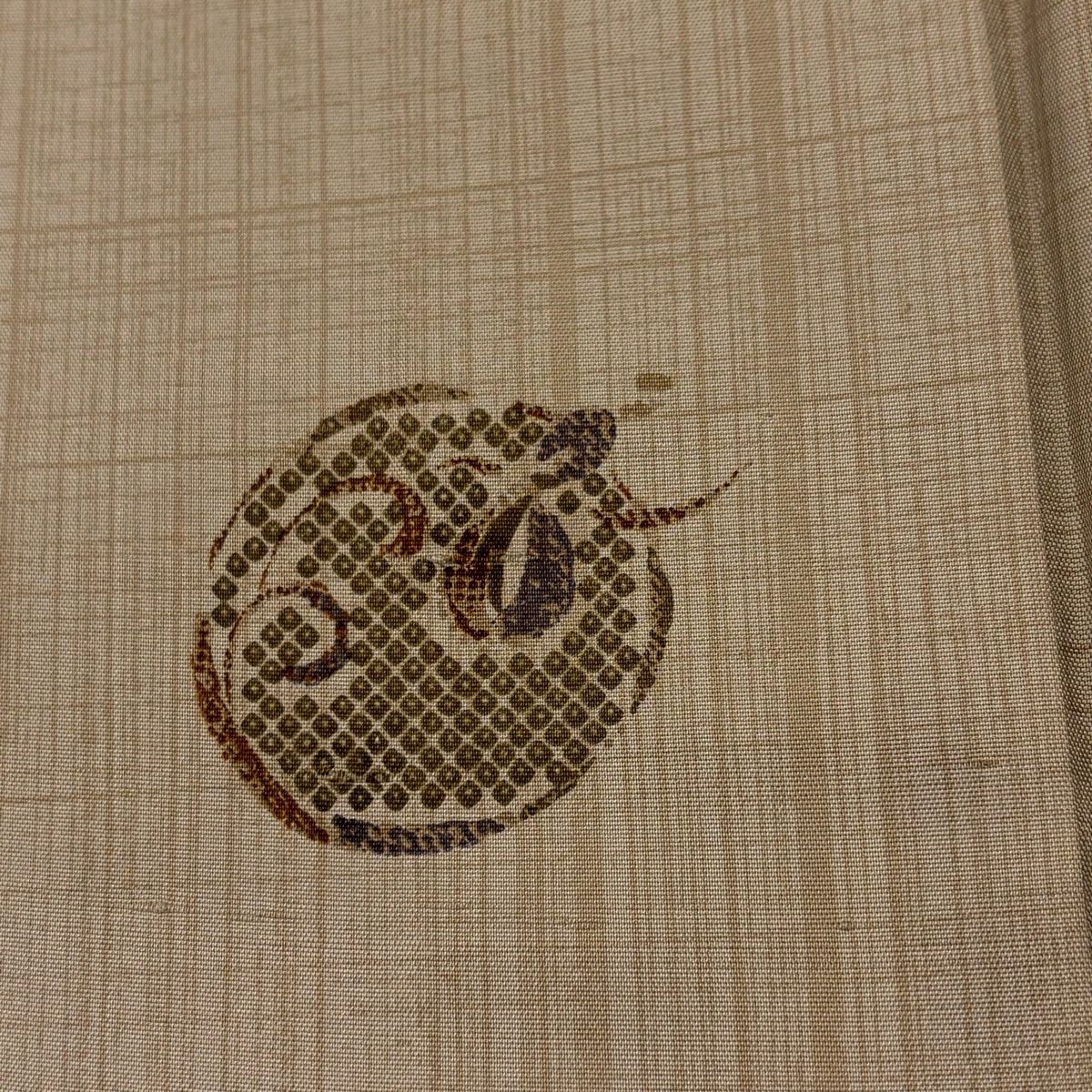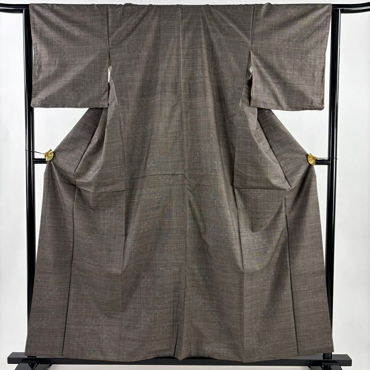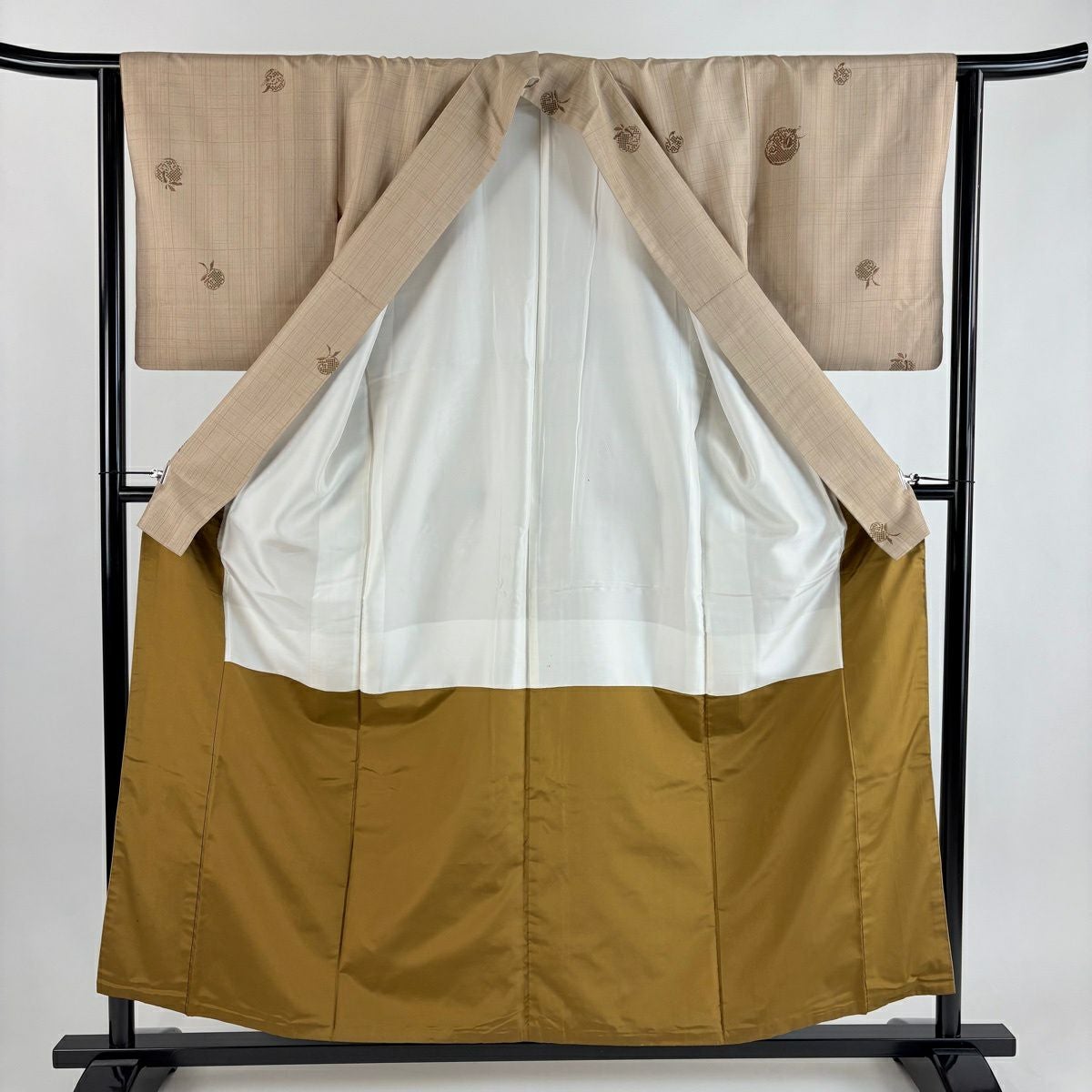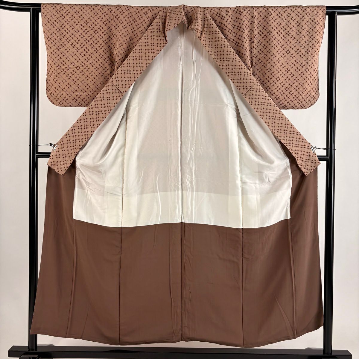 小紋 身丈153.5cm 裄丈62.5cm S 袷 幾何学模様 薄茶色 正絹 秀品