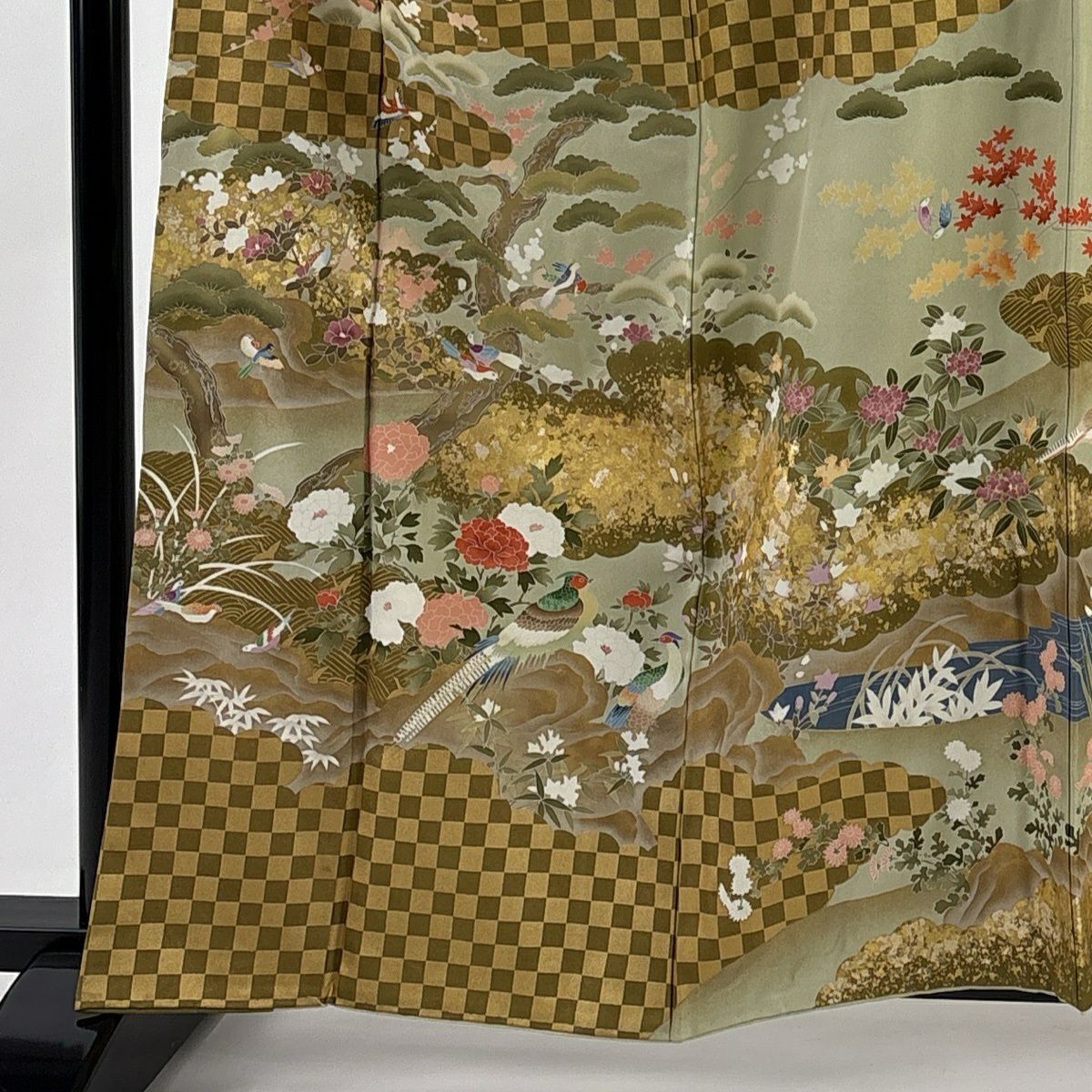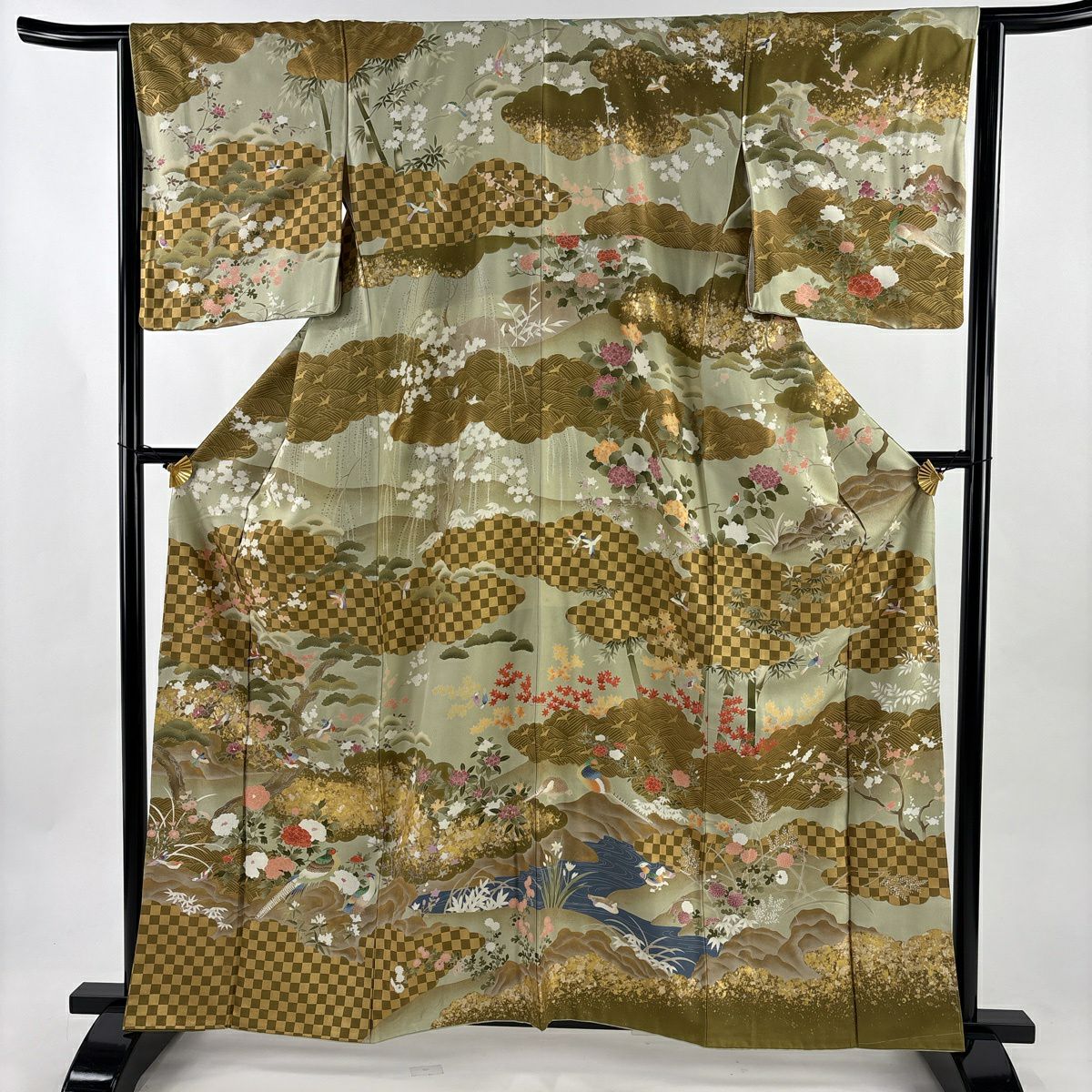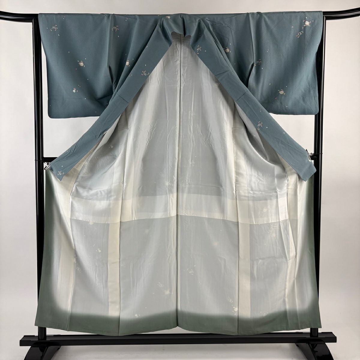 訪問着 身丈160.5cm 裄丈64.5cm M 袷 花鳥 雲文 灰緑 正絹 秀品