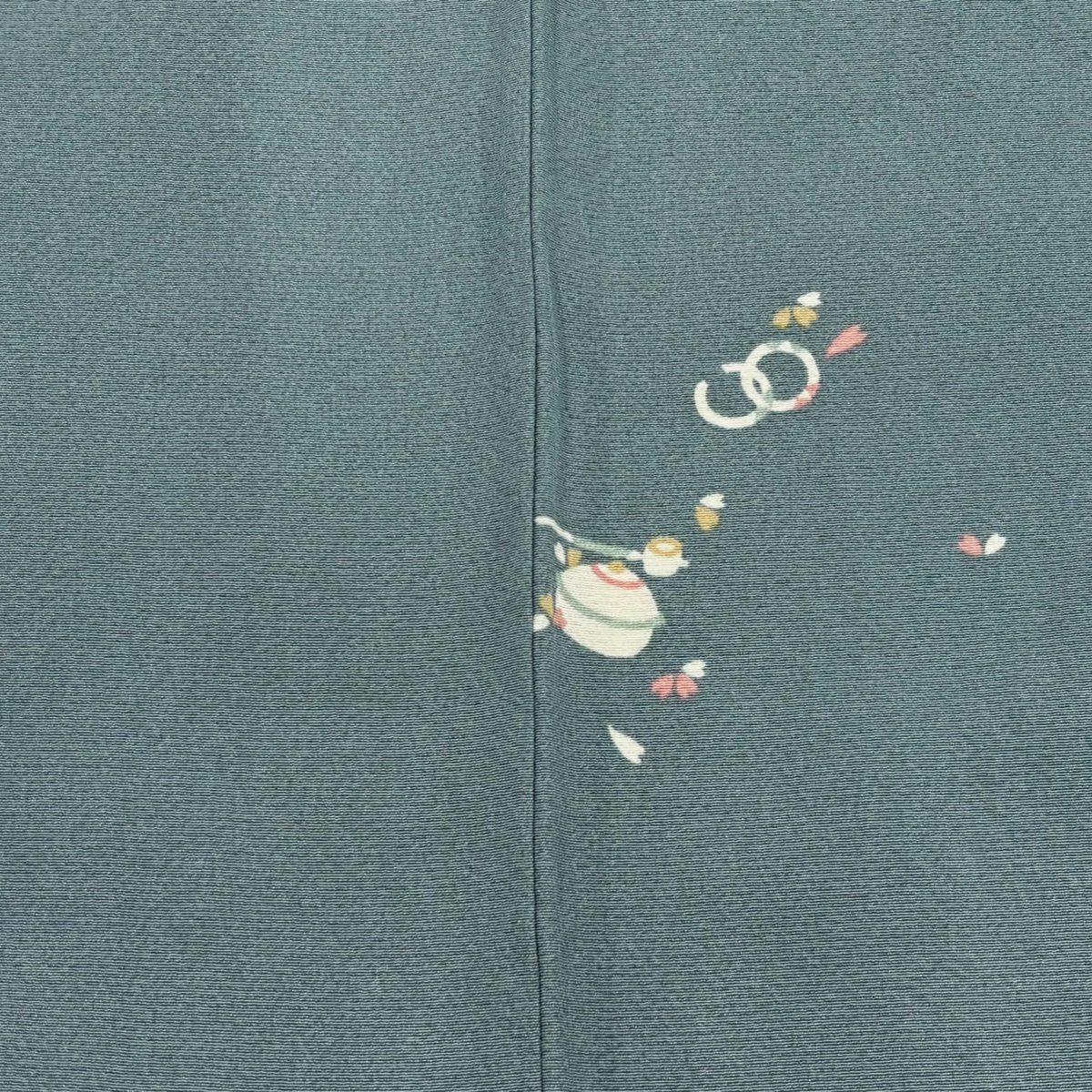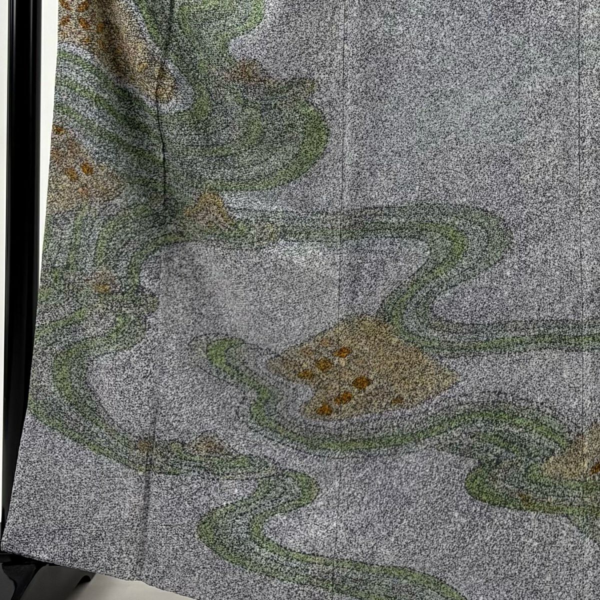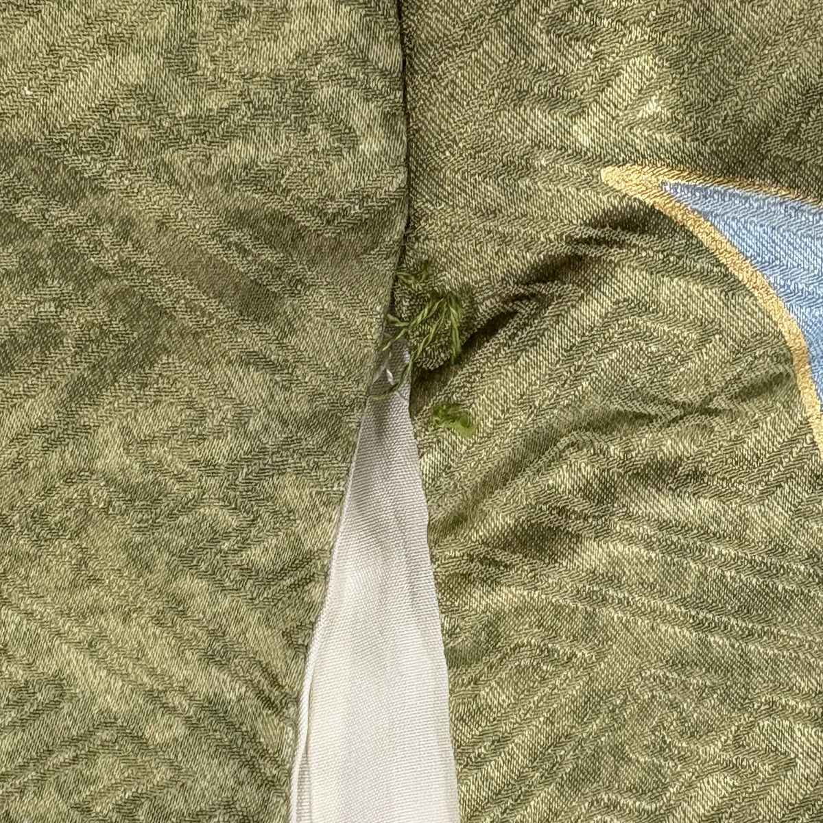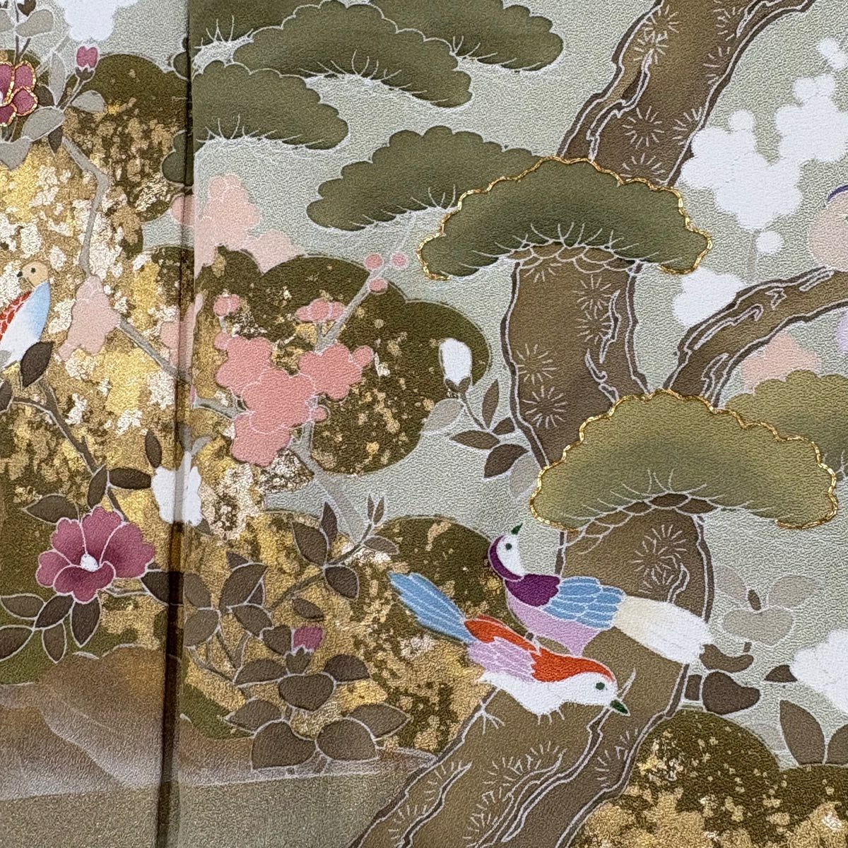 訪問着 身丈160.5cm 裄丈64.5cm M 袷 花鳥 雲文 灰緑 正絹 秀品
