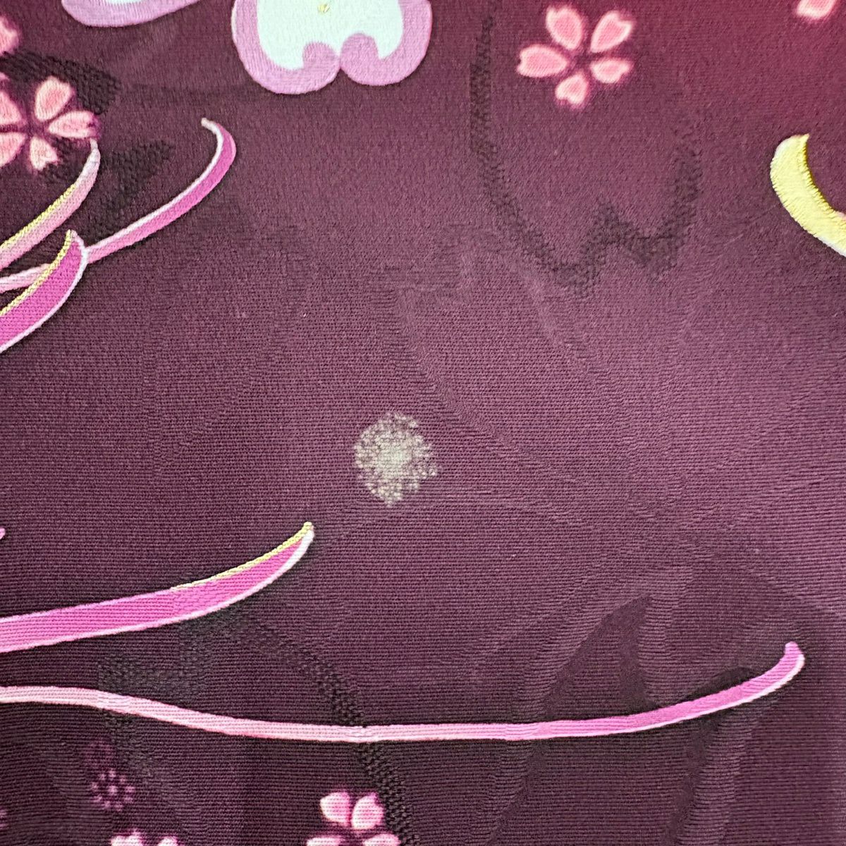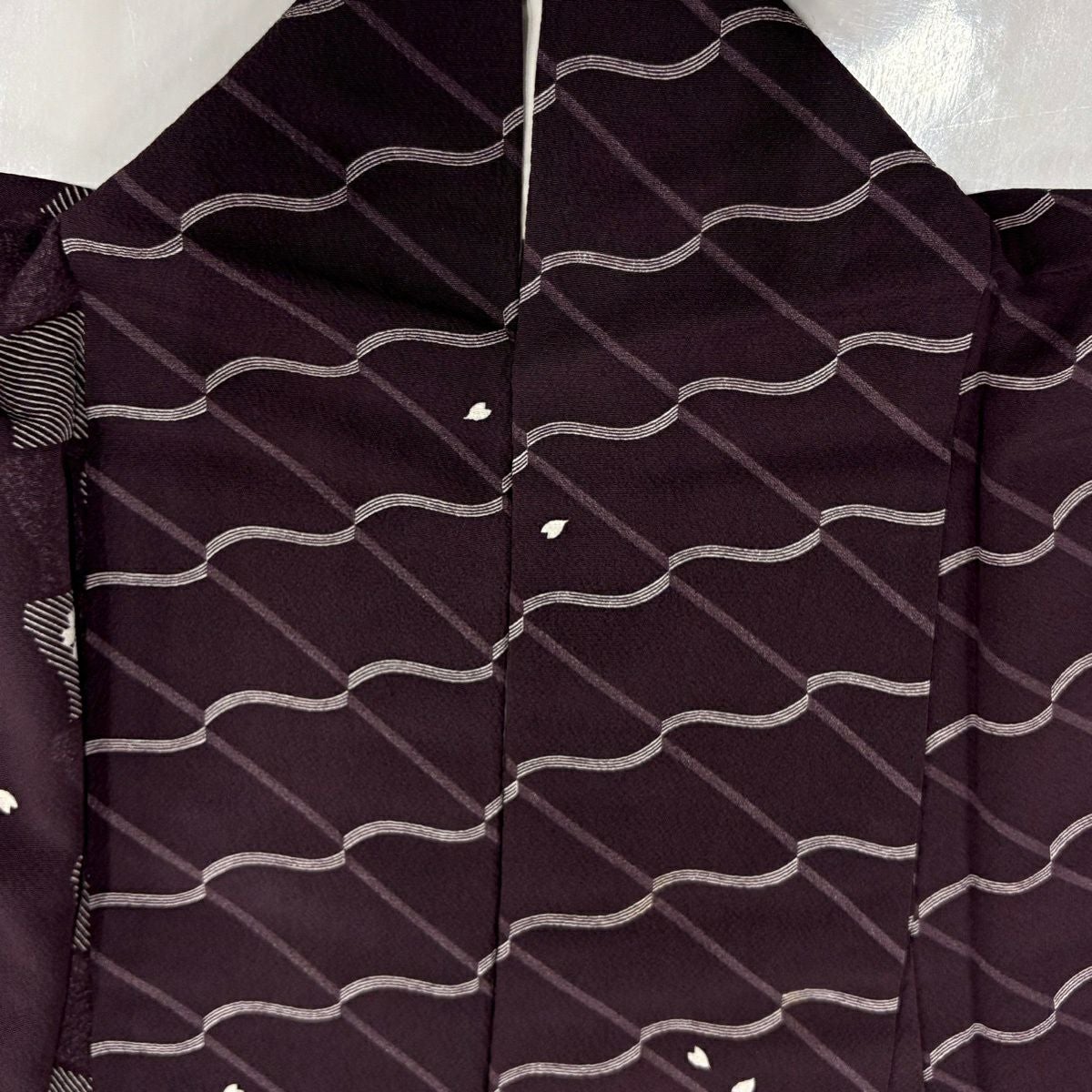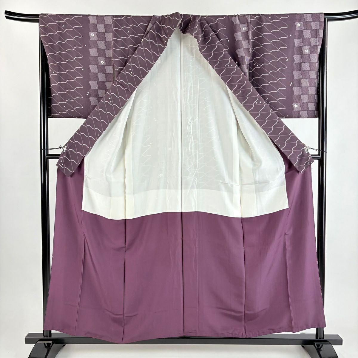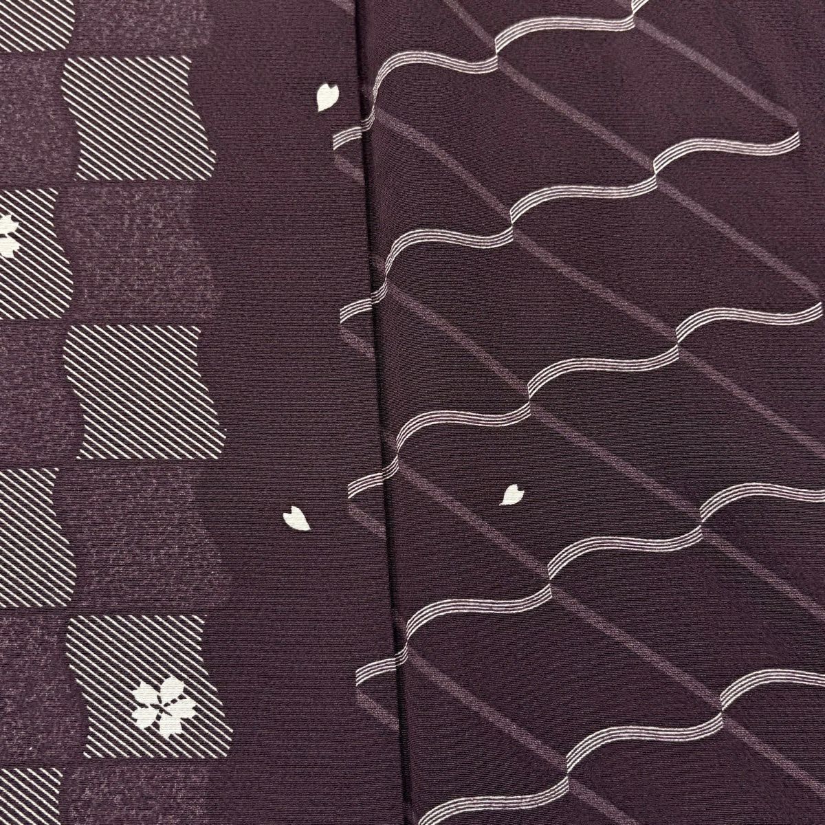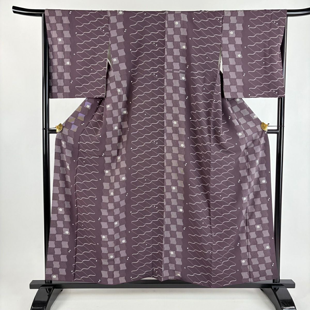 小紋 身丈157cm 裄丈65.5cm M 袷 桜 変わり市松 紫 正絹 秀品