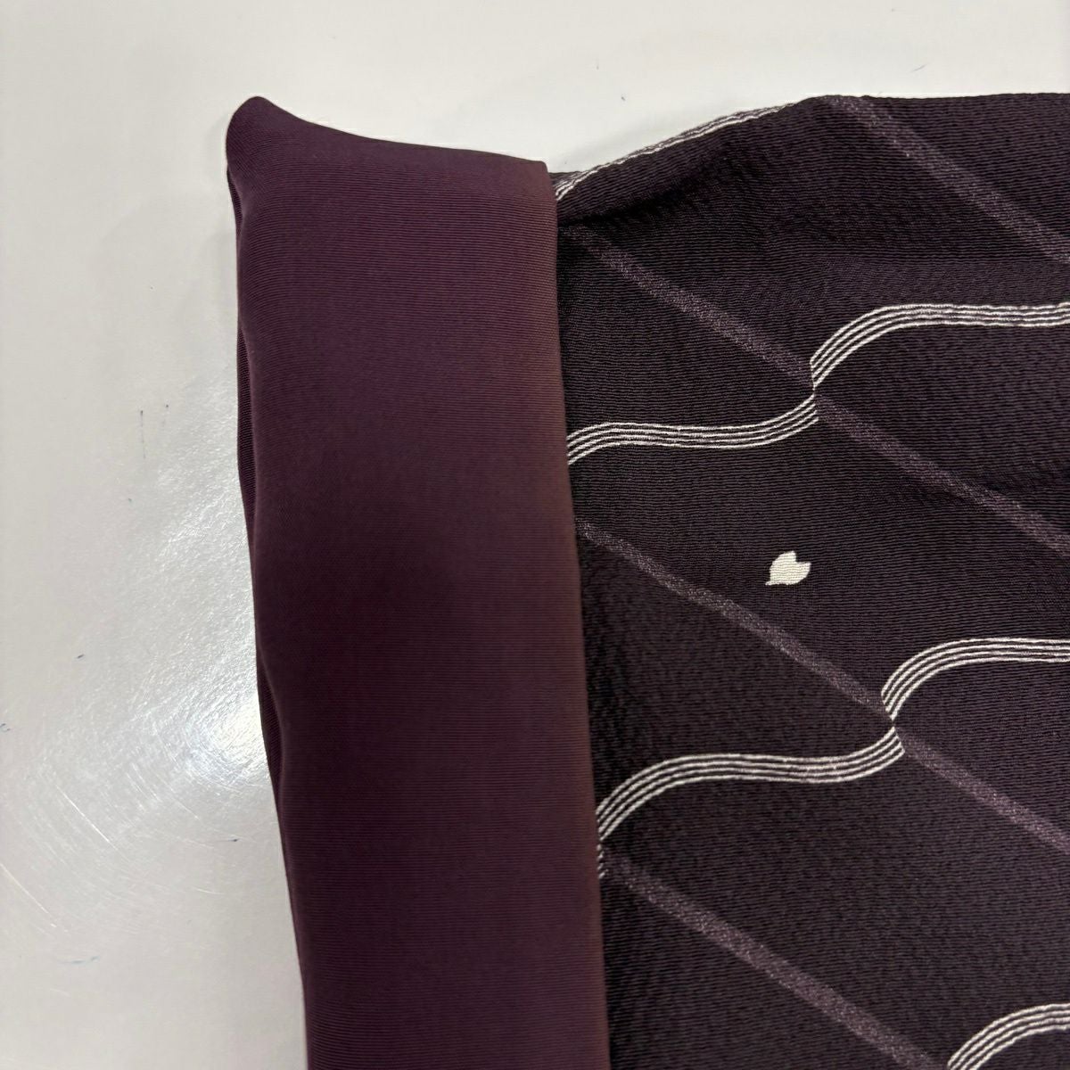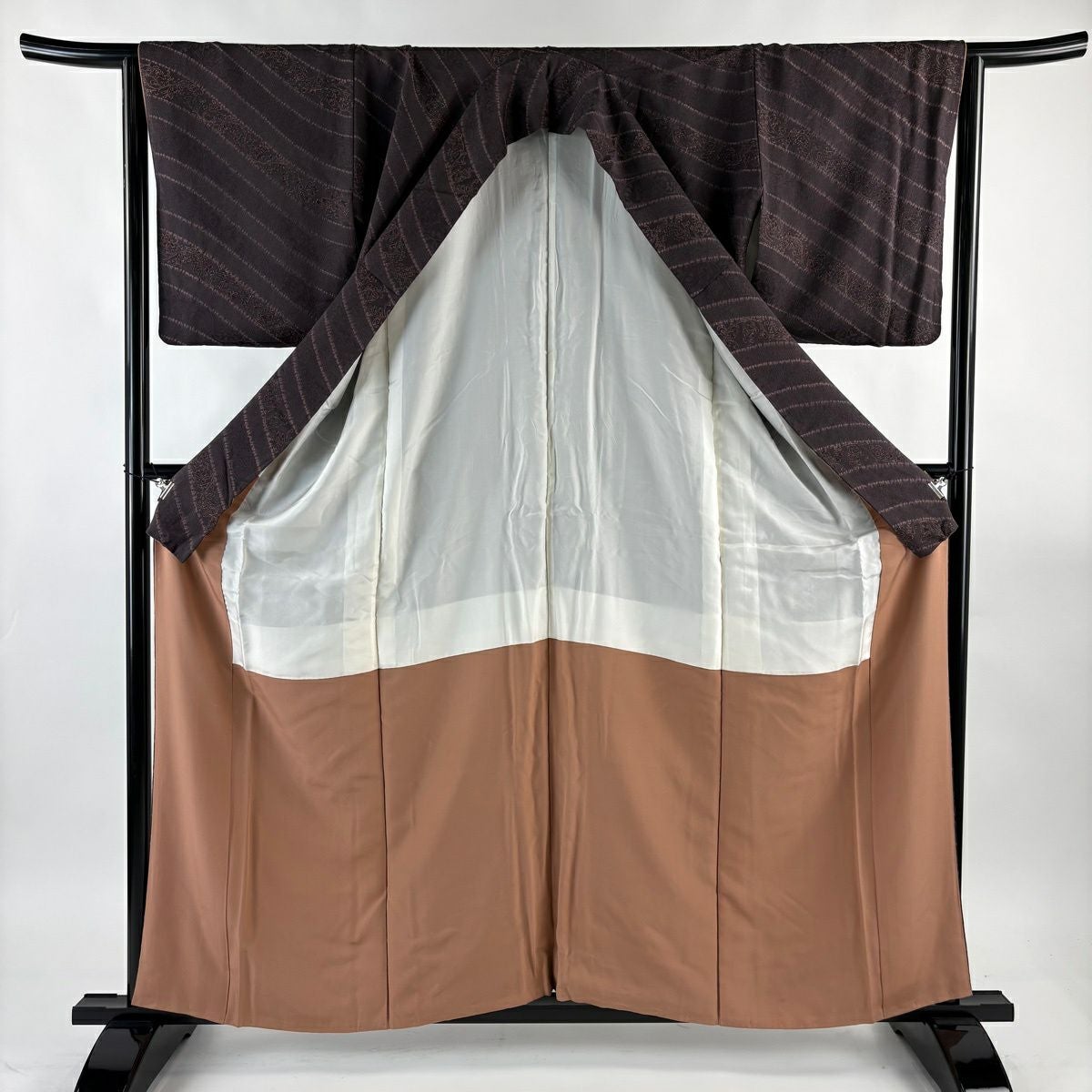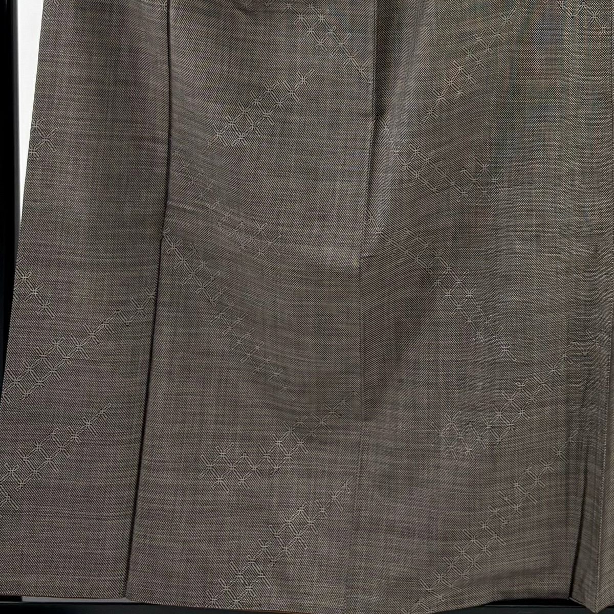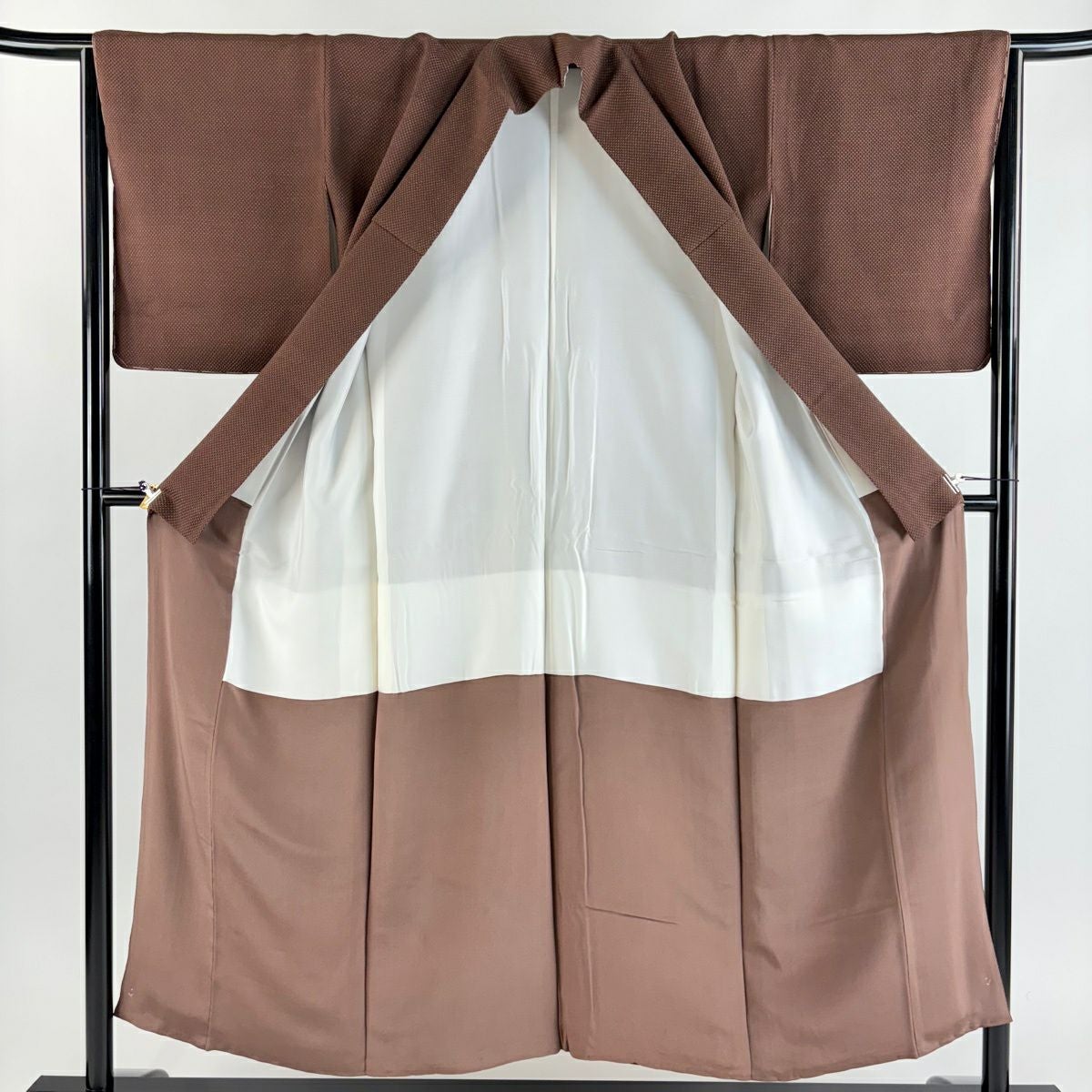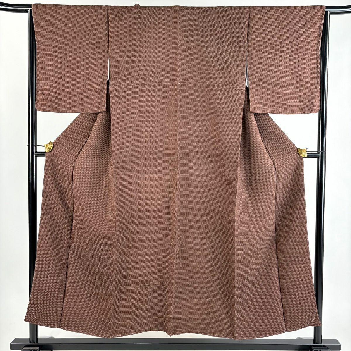 【美品】 紬 身丈158cm 裄丈64cm M 袷 幾何学 焦茶色 正絹 秀品