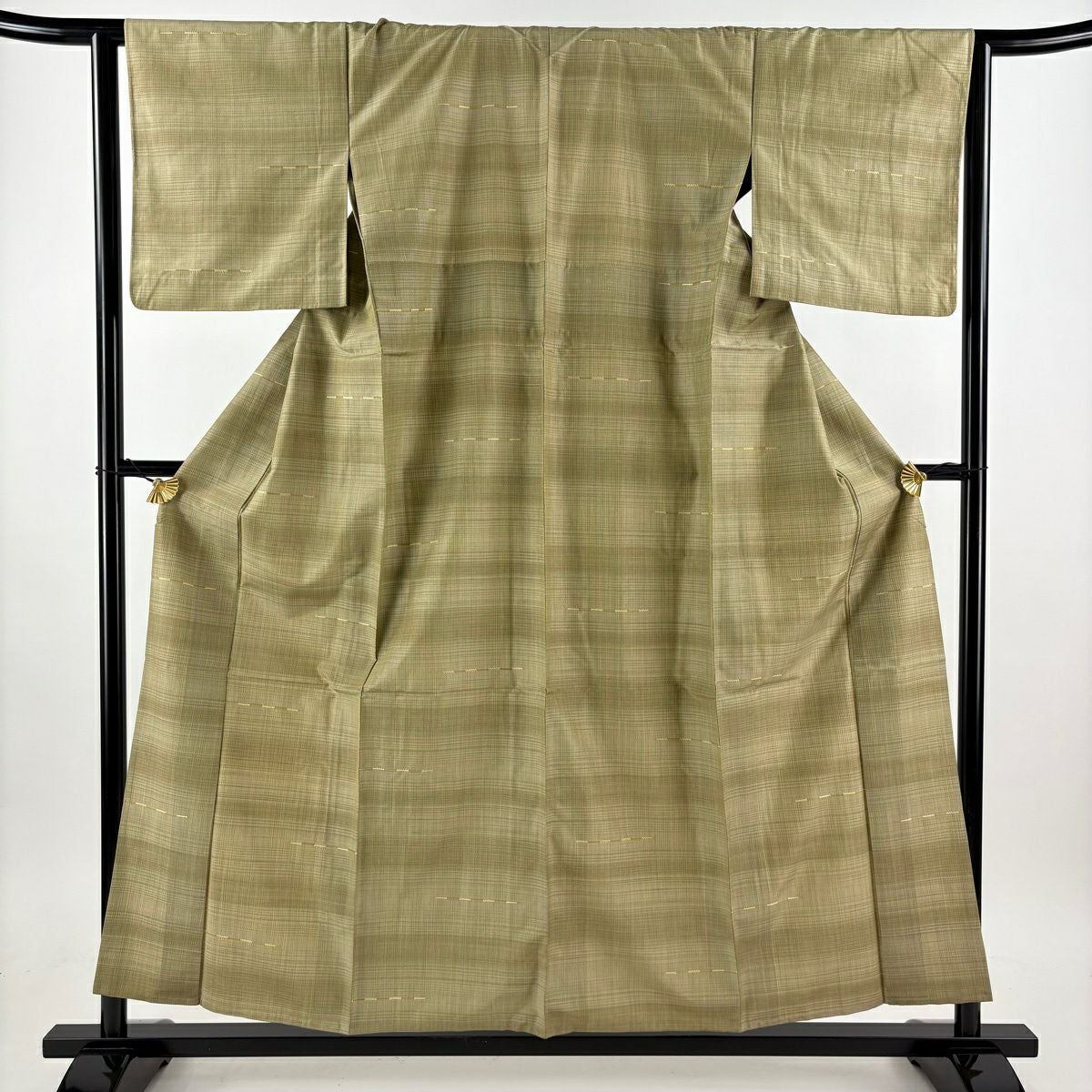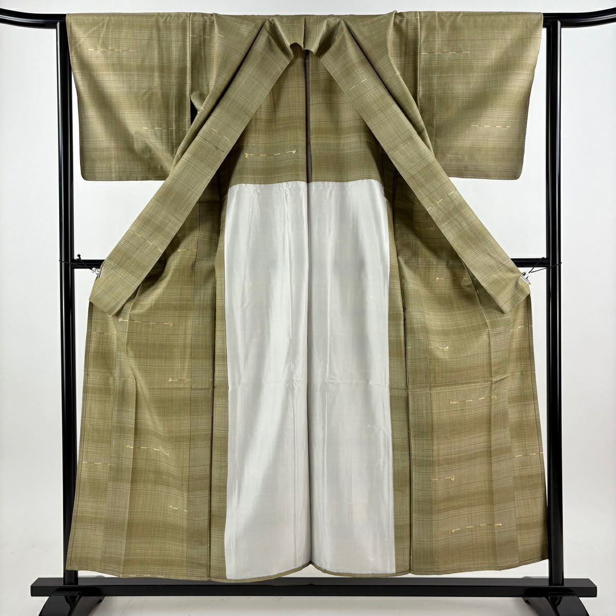 小紋 身丈155cm 裄丈63cm S 袷 紬地 縞 唐草 薄茶色 正絹 秀品