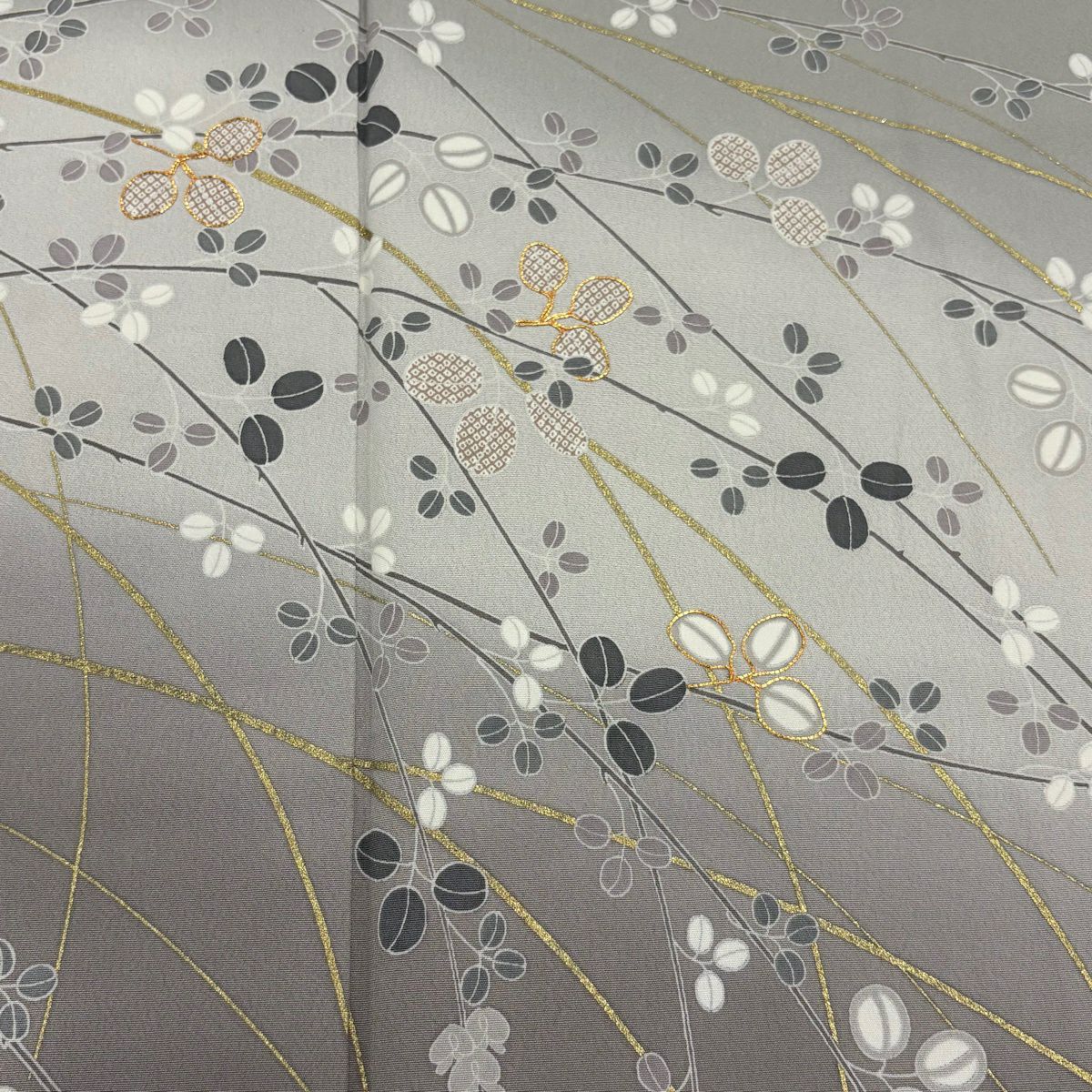 【美品】 紬 身丈150cm 裄丈61.5cm S 袷 枝花 灰色 正絹 秀品